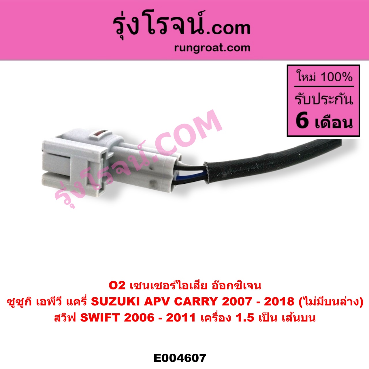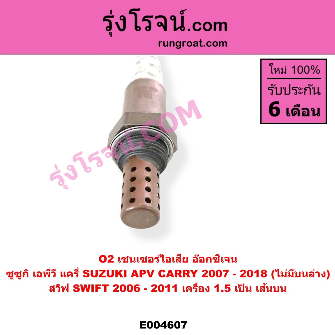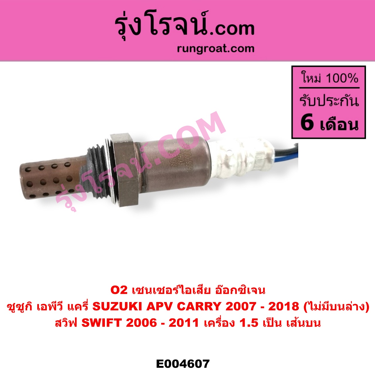 | E004607 | เซนเซอร์ไอเสีย (อ๊อกซิเจน) | SUZUKI (ซูซูกิ) / APV (เอพีวี 05) , SUZUKI (ซูซูกิ) / CARRY (แครี่) , SUZUKI (ซูซูกิ) / SWIFT (สวิฟ 2006 – 2011) (รุ่นแรก เครื่อง 1.5) |