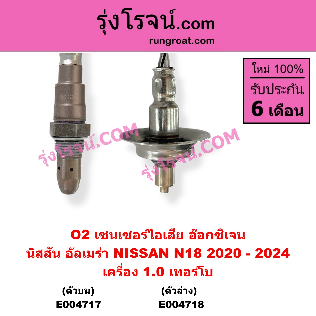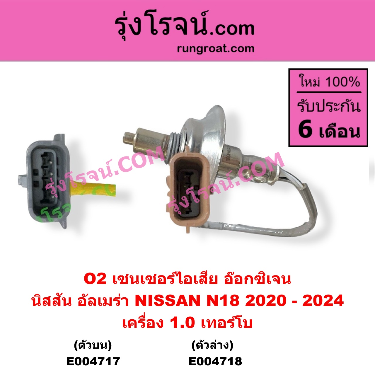 | E004718 | เซนเซอร์ไอเสีย (อ๊อกซิเจน) | NISSAN (นิสสัน) / ALMERA (อัลเมร่า N18 2020 – 2024) (เครื่อง 1.0 เทอร์โบ) | ตัวล่าง | ไต้หวัน (ใหม่) |