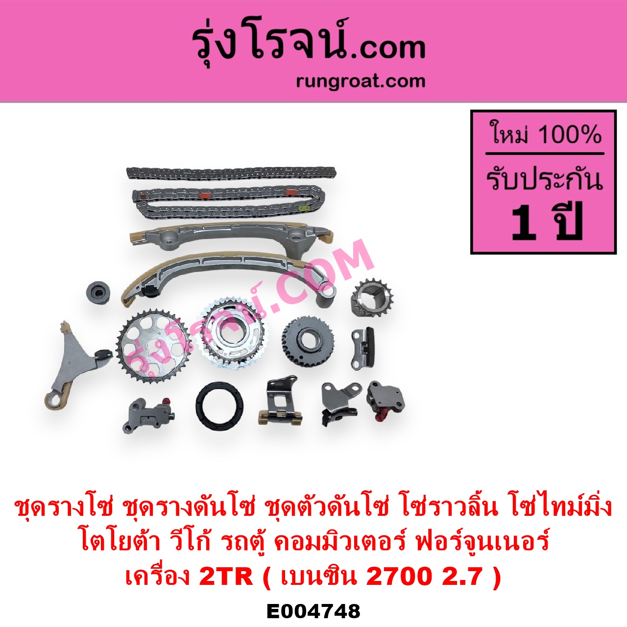 | E004748 | ชุดรางโซ่ (ชุดรางดันโซ่, ชุดตัวดันโซ่, โซ่ราวลิ้น, โซ่ไทม์มิ่ง) | TOYOTA (โตโยต้า) / COMMUTER (รถตู้ คอมมิวเตอร์ คอมมูเตอร์ 2005 – 2019) , TOYOTA (โตโยต้า) / FORTUNER (ฟอร์จูนเนอร์ 05/08/12) (รุ่นแรก) , TOYOTA (โตโยต้า) / VIGO (วีโก้ 2004 – 2015) |