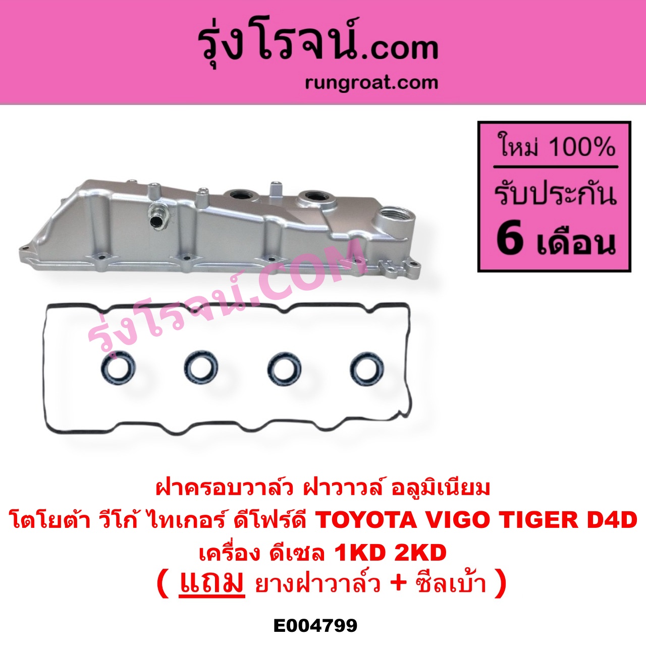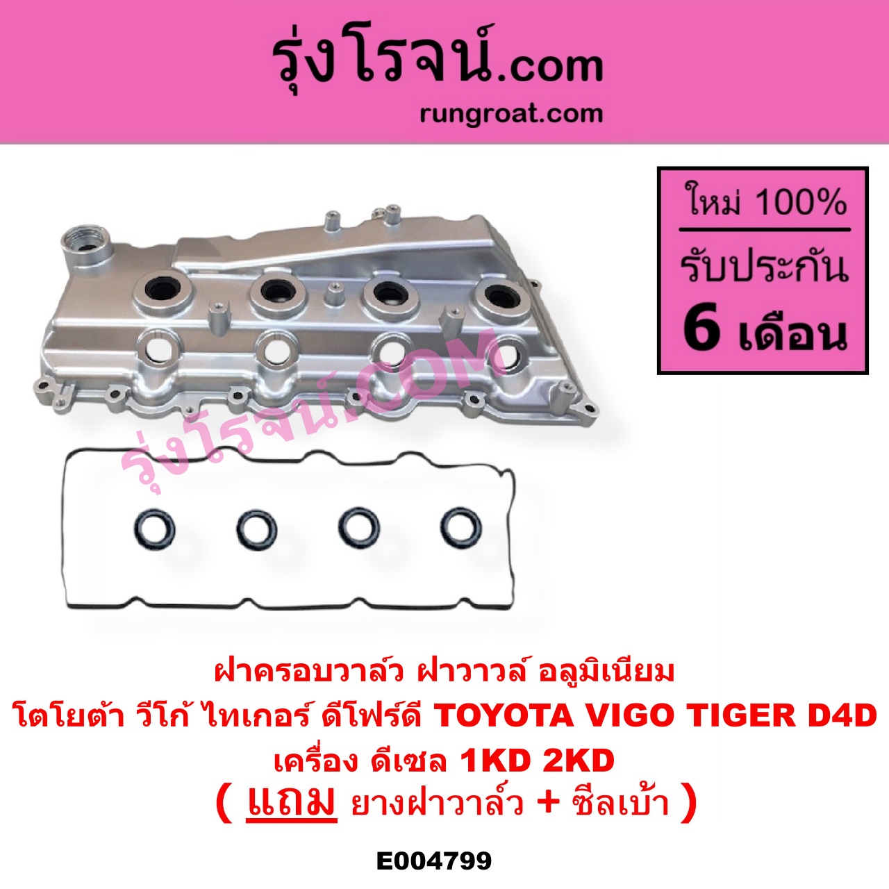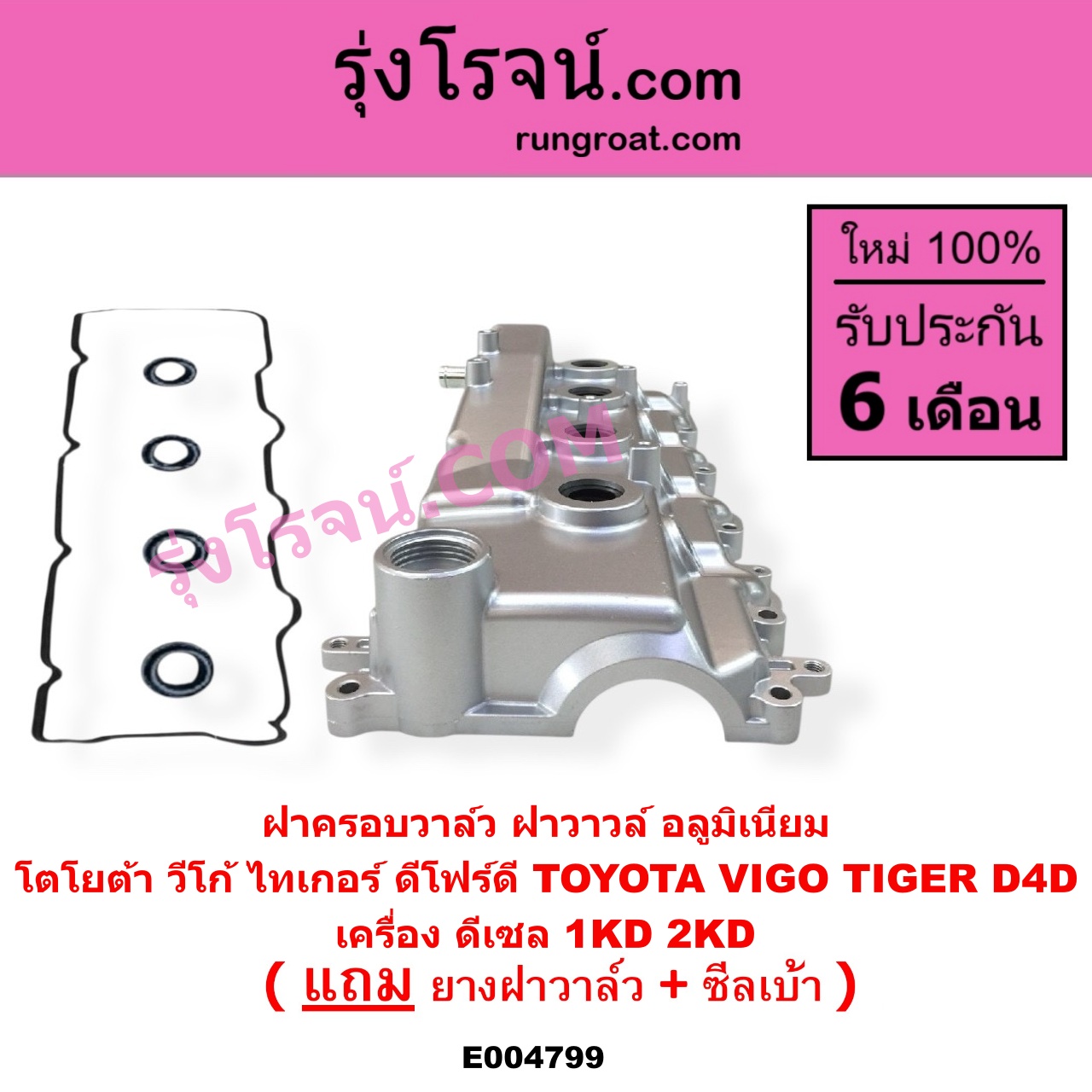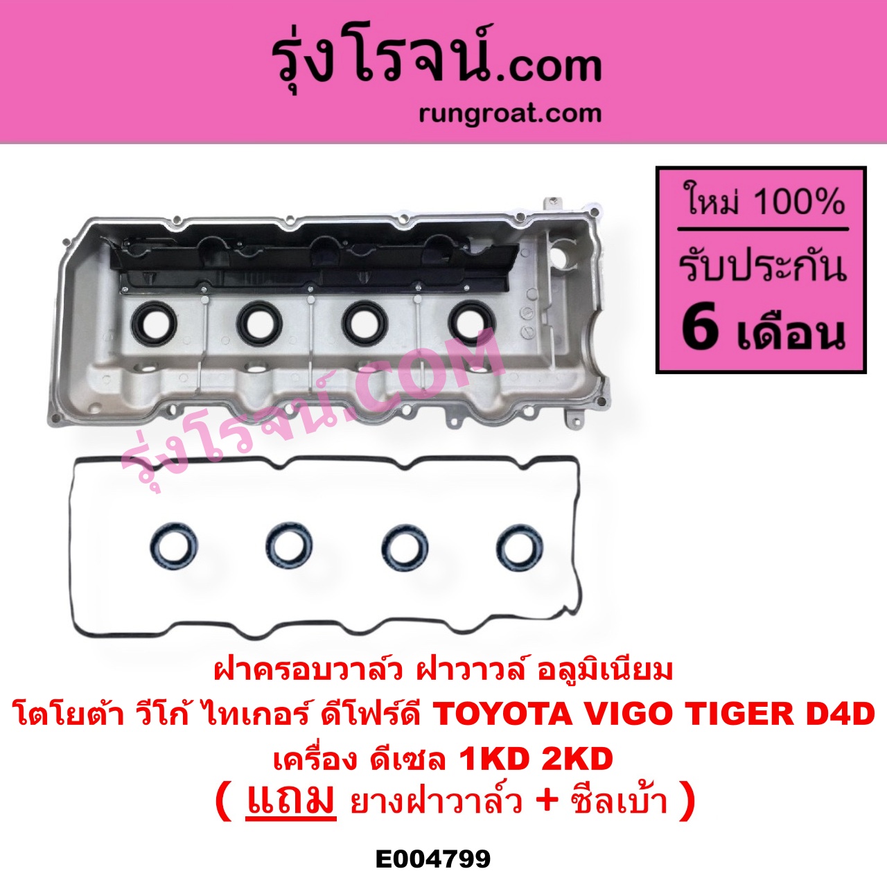 | E004799 | ฝาครอบวาล์ว (ฝาวาวล์) | TOYOTA (โตโยต้า) / COMMUTER (รถตู้ คอมมิวเตอร์ คอมมูเตอร์ 2005 – 2019) , TOYOTA (โตโยต้า) / FORTUNER (ฟอร์จูนเนอร์ 2005 – 2014) (รุ่นแรก) , TOYOTA (โตโยต้า) / INNOVA (อินโนวา 2004 – 2015) , TOYOTA (โตโยต้า) / SPORTRIDER (สปอร์ตไรเดอร์) , TOYOTA (โตโยต้า) / TIGER/TIGER D4D (ไทเกอร์ / ไทเกอร์ ดีโฟร์ดี) , TOYOTA (โตโยต้า) / VENTURY (เวนจูรี่) , TOYOTA (โตโยต้า) / VIGO (วีโก้ 2004 – 2015) |