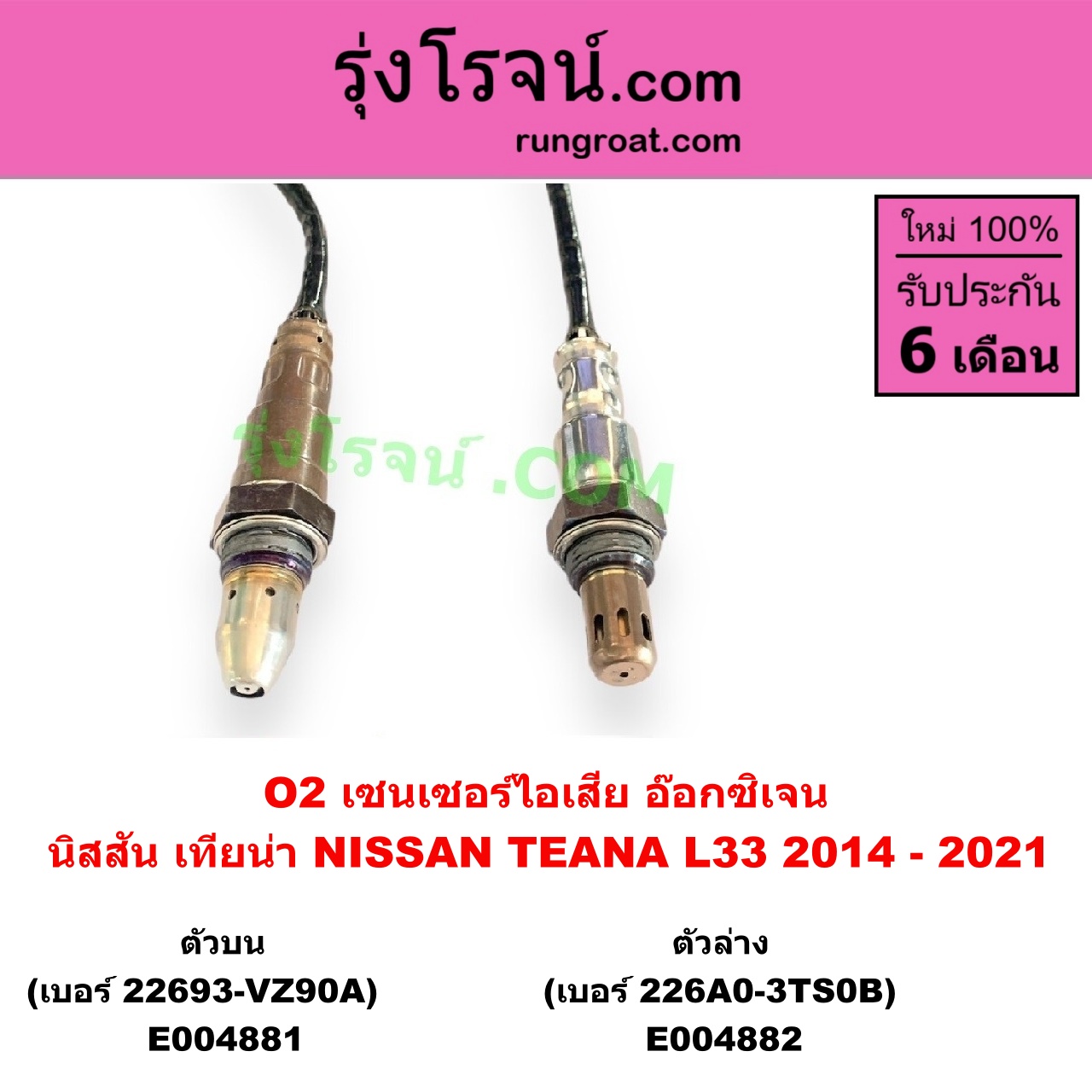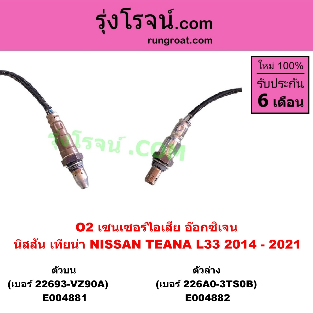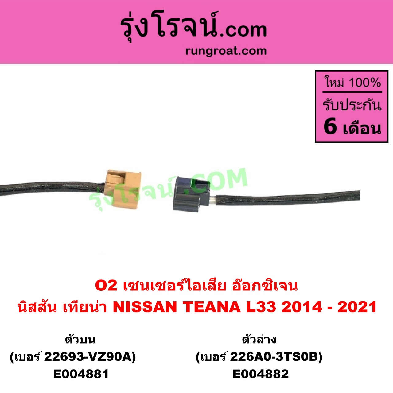 | E004881 | เซนเซอร์ไอเสีย (อ๊อกซิเจน) | NISSAN (นิสสัน) / TEANA (เทียน่า L33) (2014 – 2021) | เส้นบน (เบอร์ 22693-VZ90A) | ไต้หวัน (ใหม่) |