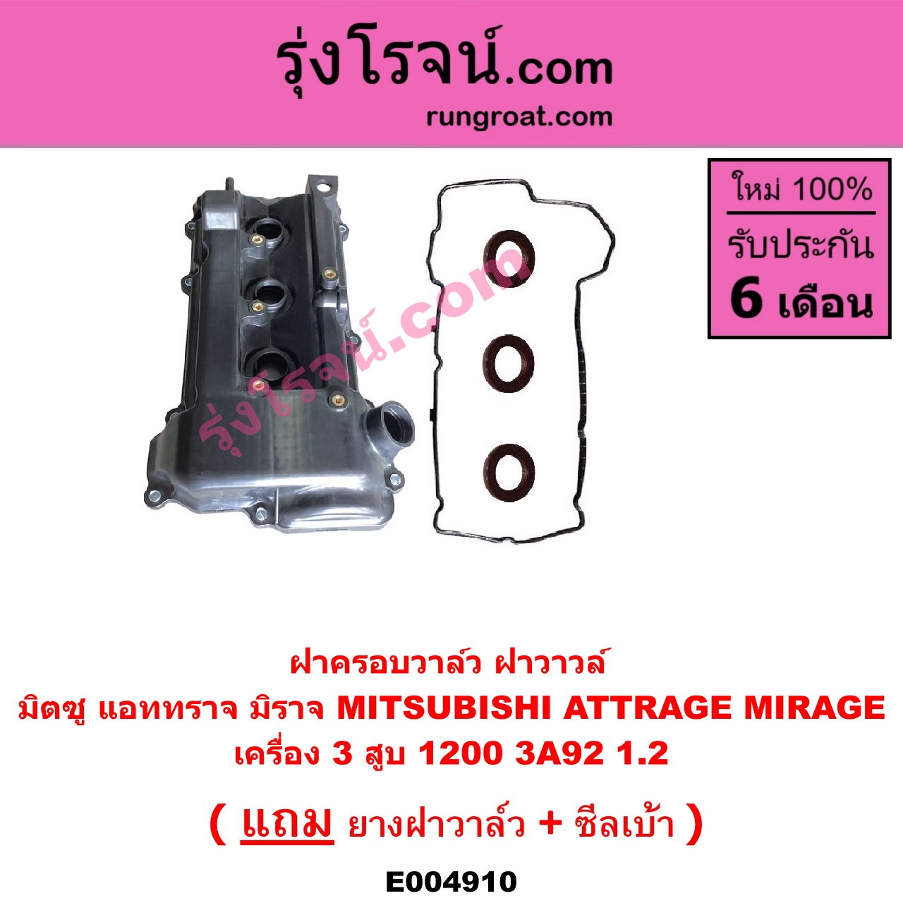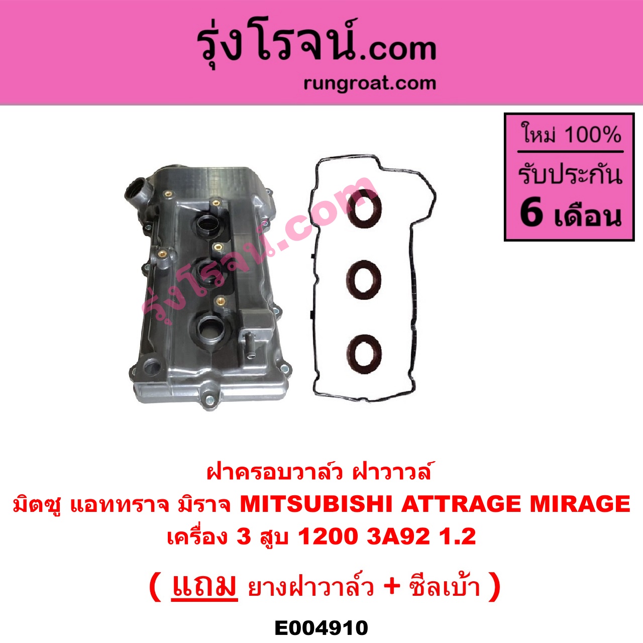 | E004910 | ฝาครอบวาล์ว (ฝาวาวล์) | MITSUBISHI (มิตซู) / ATTRAGE (แอททราจ 2014 – 2023) , MITSUBISHI (มิตซู) / MIRAGE (มิราจ 2012 – 2023) |