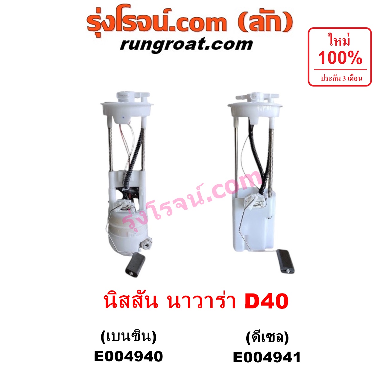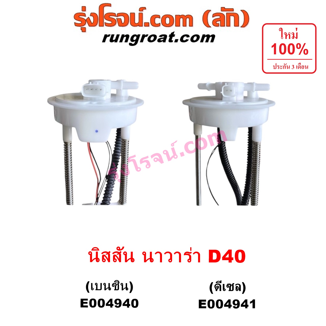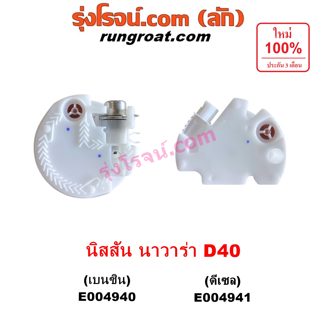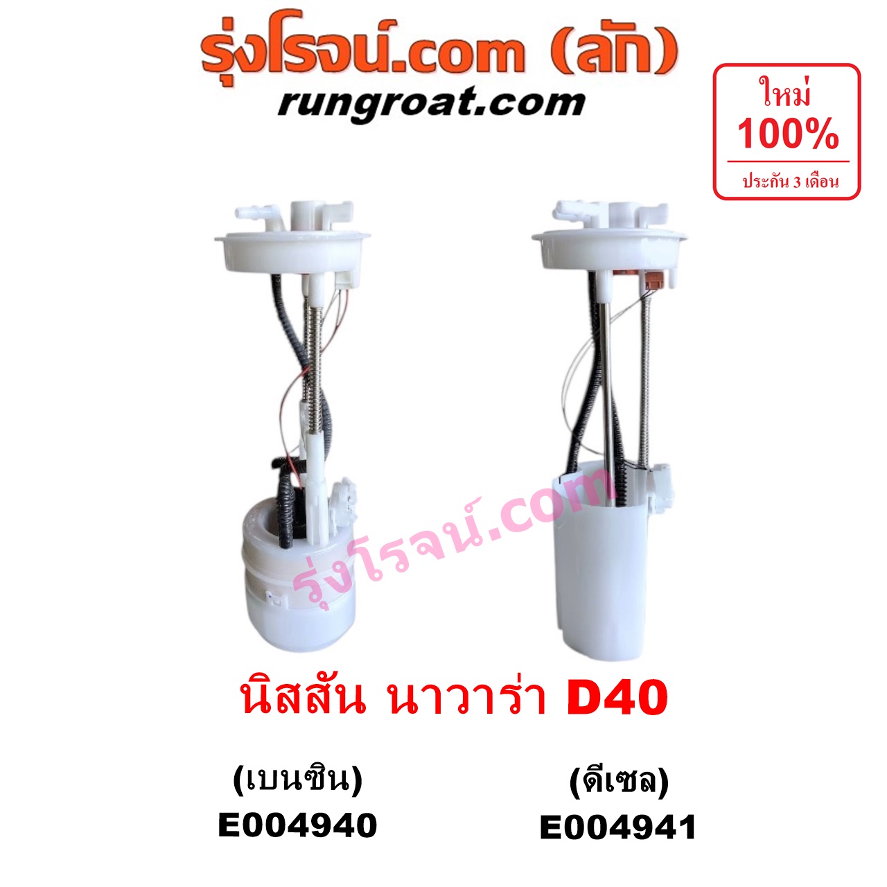 | E004940 | ปั๊มติ๊ก (ปั๊มติ๊กในถังน้ำมัน, ปั้มติ๊กนอกถัง) | NISSAN (นิสสัน) / NAVARA (นาวาร่า D40 2007 – 2013) (รุ่นแรก D40) | เครื่อง เบนซิน (+ โครงลูกลอย + มอเตอร์ครบชุด) | ไต้หวัน (ใหม่) |