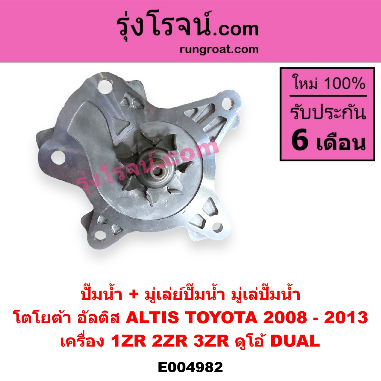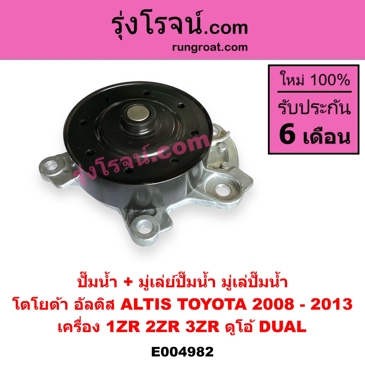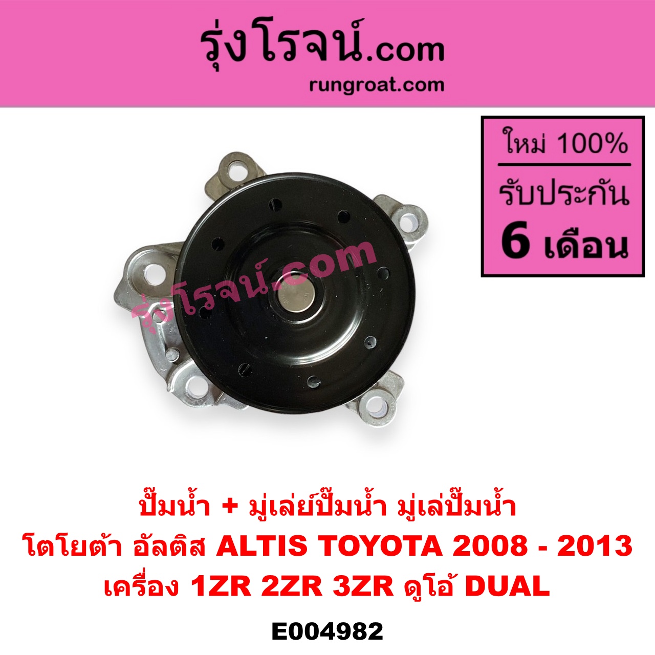 | E004982 | ปั๊มน้ำ + มู่เล่ย์ปั๊มน้ำ (มู่เล่ปั๊มน้ำ) | TOYOTA (โตโยต้า) / ALTIS (อัลติส 2008 – 2013) (รุ่น 2, ดูโอ้, DUAL VVTI) | เครื่อง 1ZR, 2ZR, 3ZR (ดูโอ้, DUAL) | ไต้หวัน (ใหม่) |