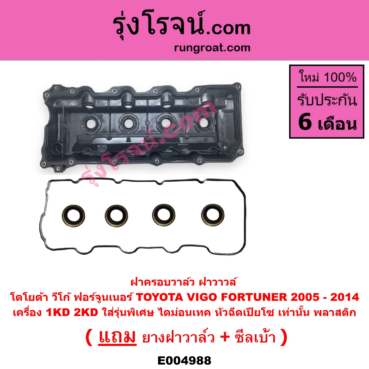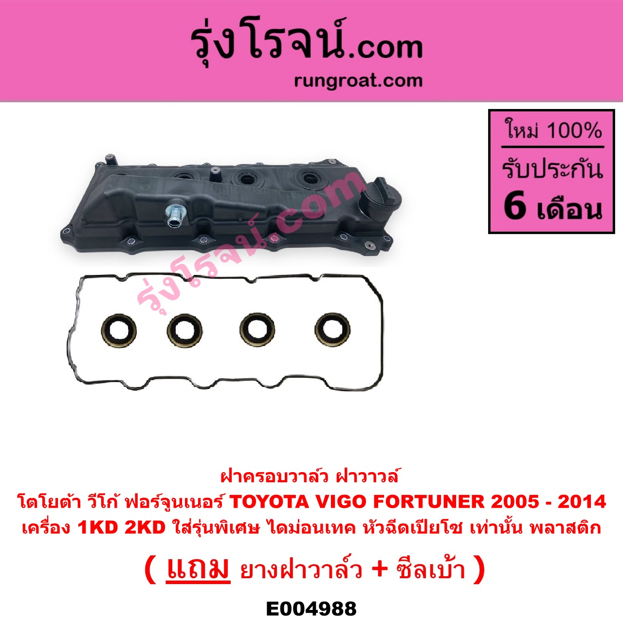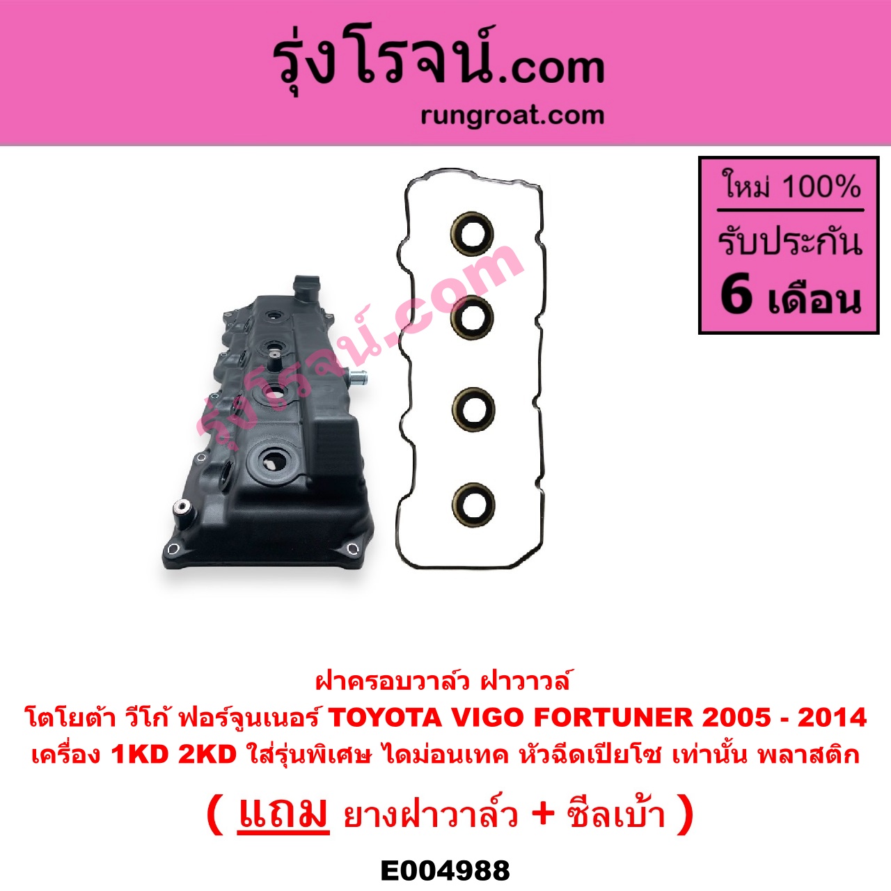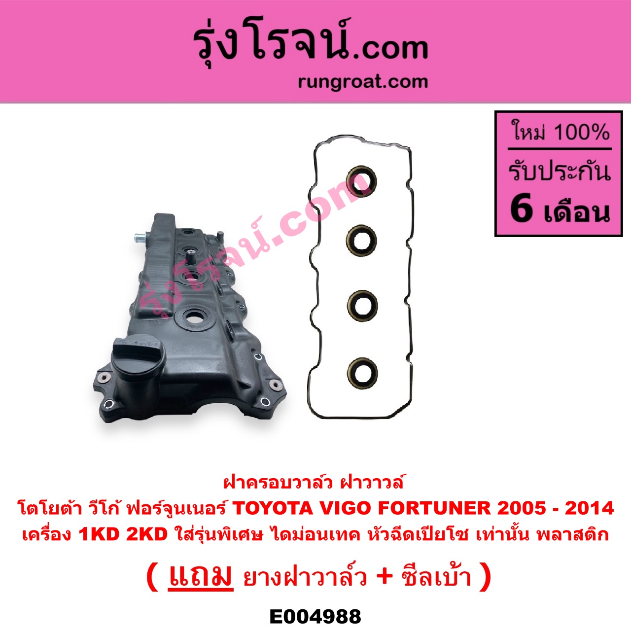 | E004988 | ฝาครอบวาล์ว (ฝาวาวล์) | TOYOTA (โตโยต้า) / FORTUNER (ฟอร์จูนเนอร์ 2005 – 2014) (รุ่นแรก) , TOYOTA (โตโยต้า) / VIGO (วีโก้ 2004 – 2015) |