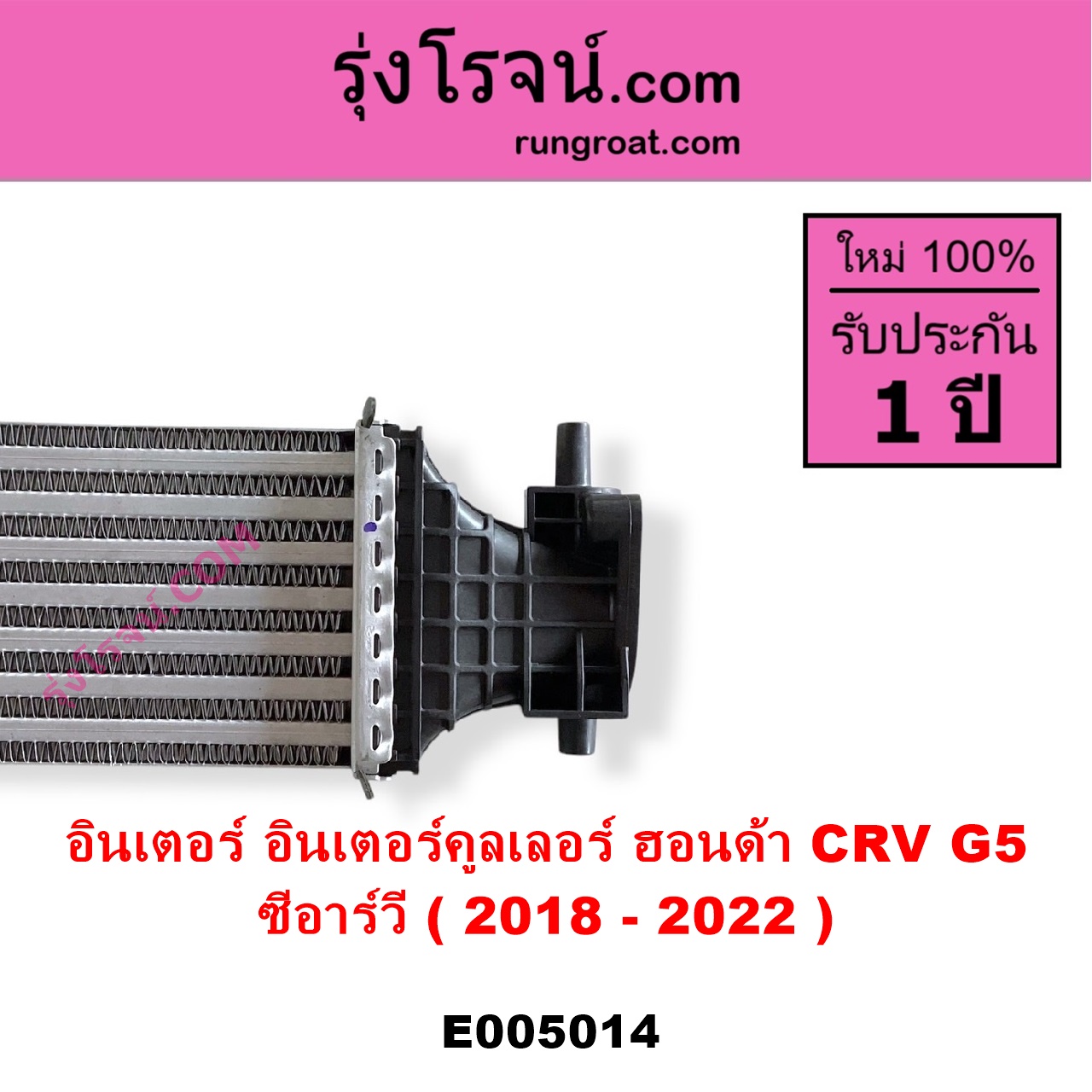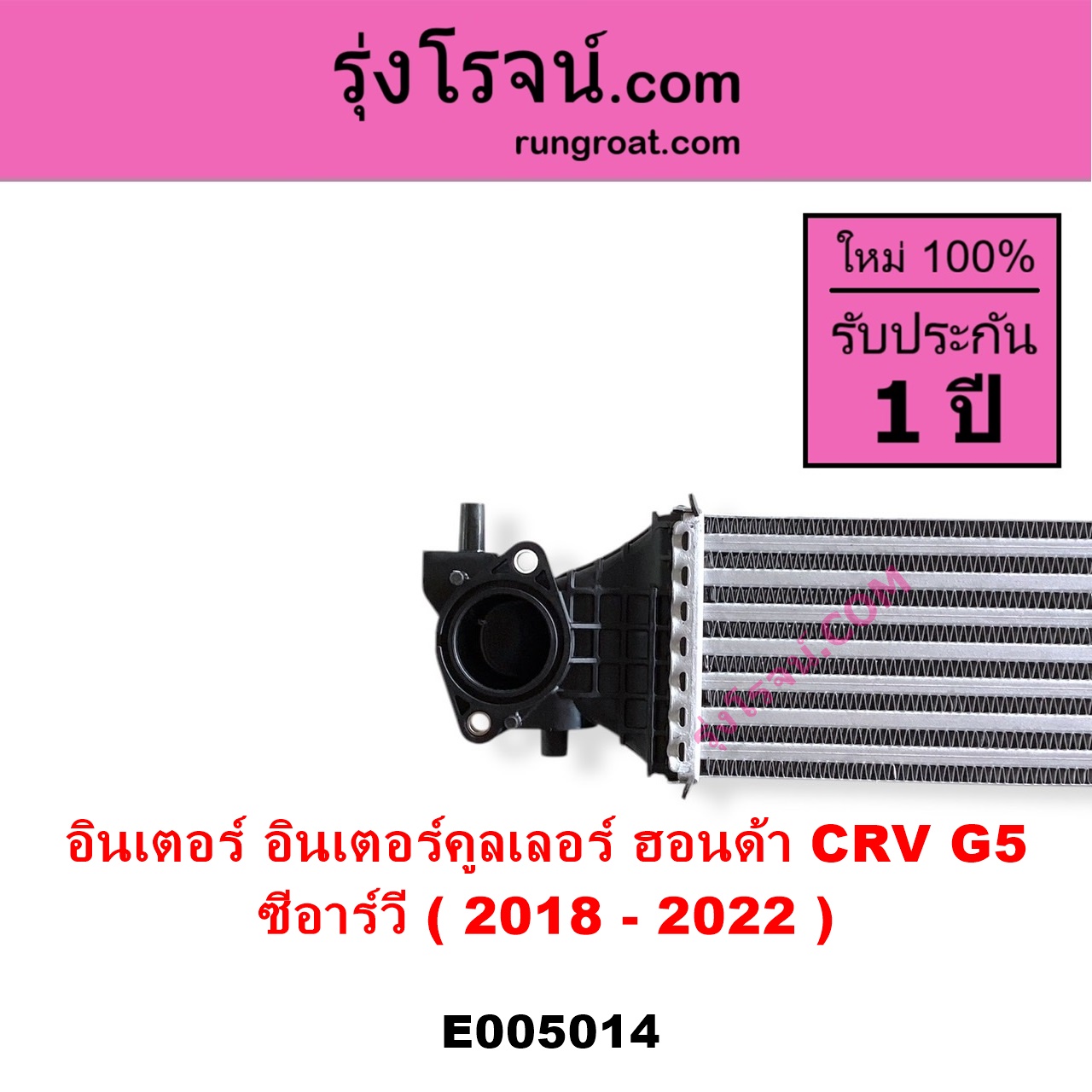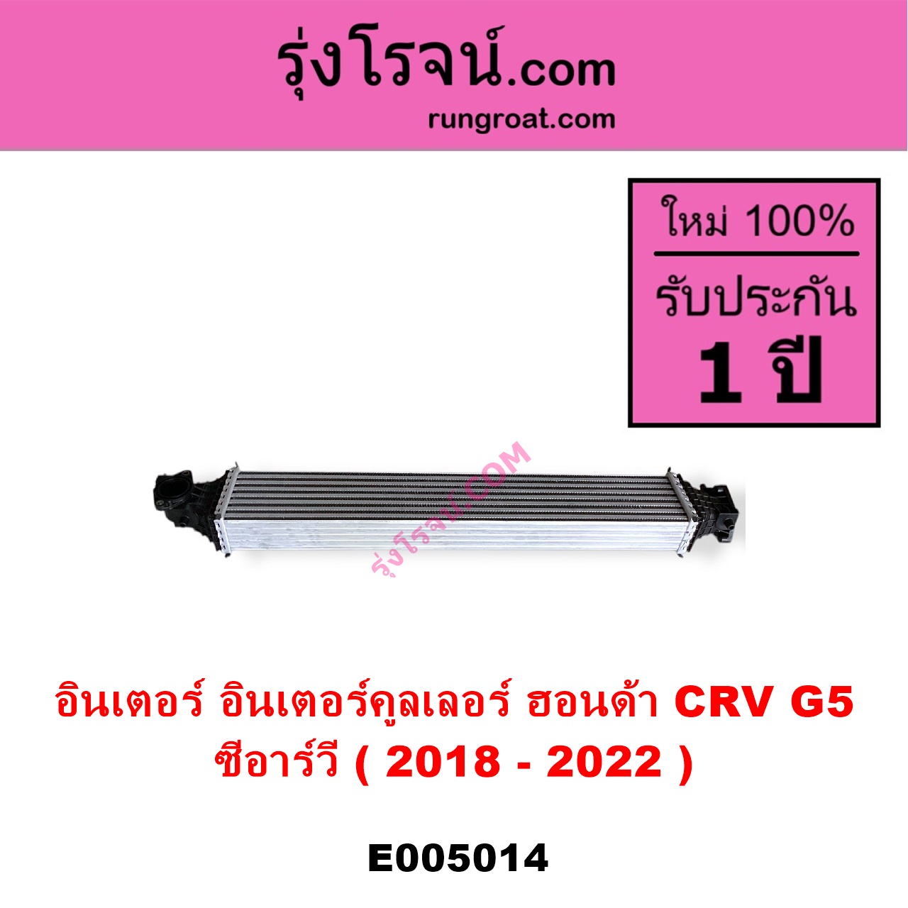 | E005014 | อินเตอร์คูลเลอร์ (INTER COOLER) | HONDA (ฮอนด้า) / CRV (ซีอาร์วี 2018 – 2022) (รุ่น 5 / G5) | – | ไต้หวัน (ใหม่) |