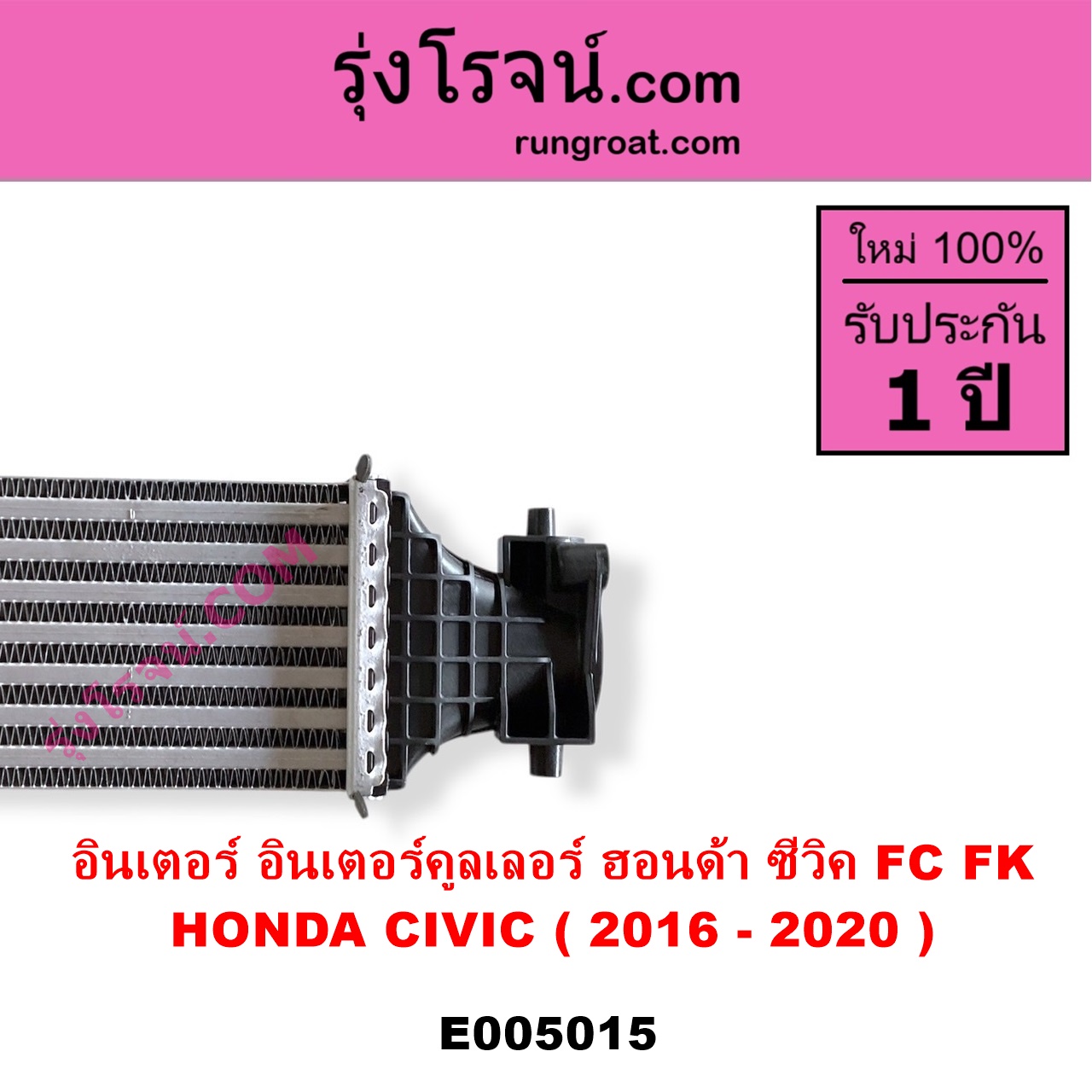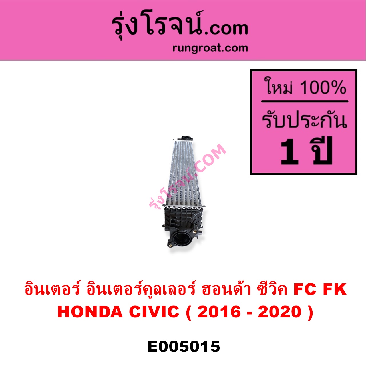 | E005015 | อินเตอร์คูลเลอร์ (INTER COOLER) | HONDA (ฮอนด้า) / CIVIC (ซีวิค 2016 – 2020) (FC / FK) | – | ไต้หวัน (ใหม่) |