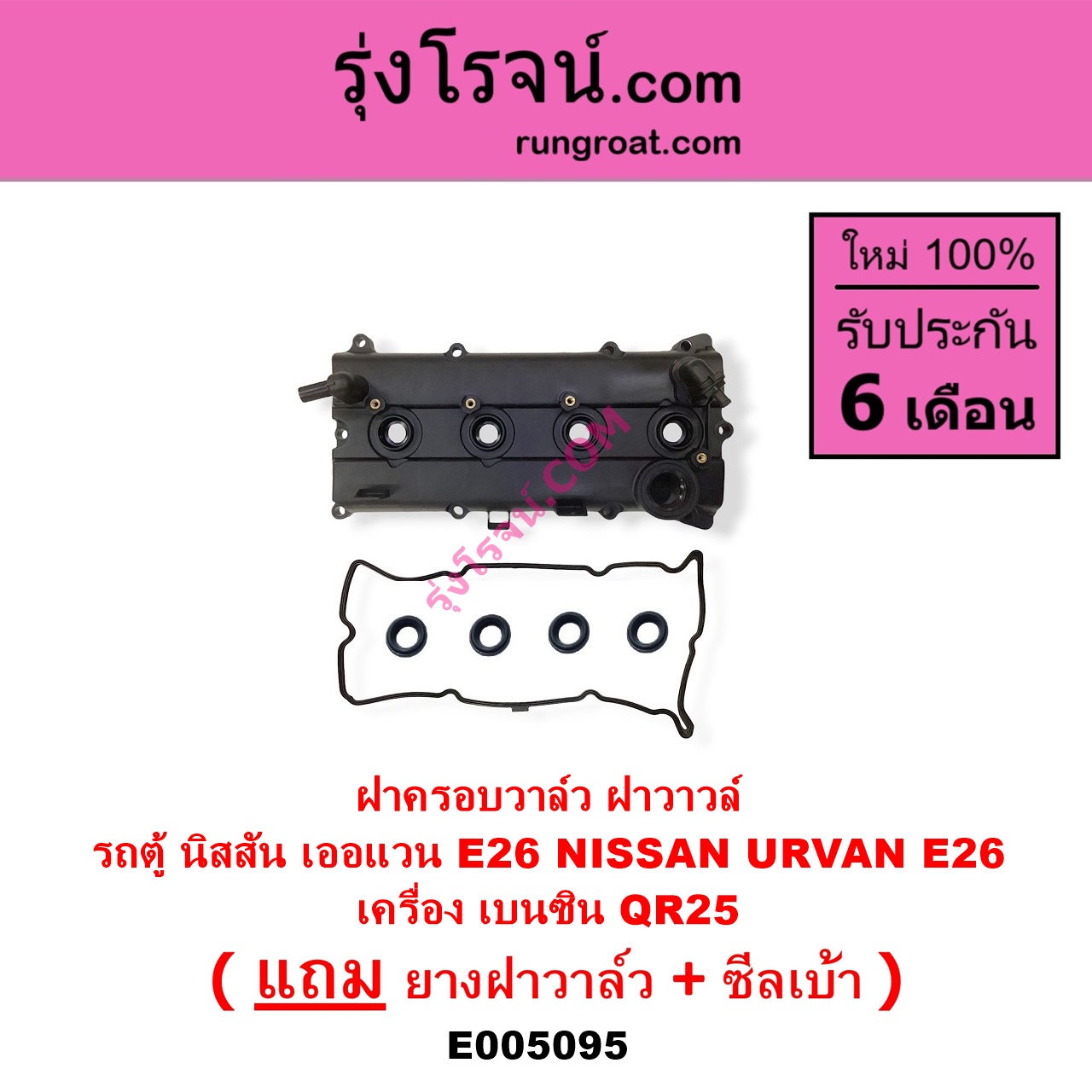 | E005095 | ฝาครอบวาล์ว (ฝาวาวล์) | NISSAN (นิสสัน) / URVAN (เออแวน E26 2012 – 2022) (NV350) | เครื่อง เบนซิน QR25 | ไต้หวัน (ใหม่) |