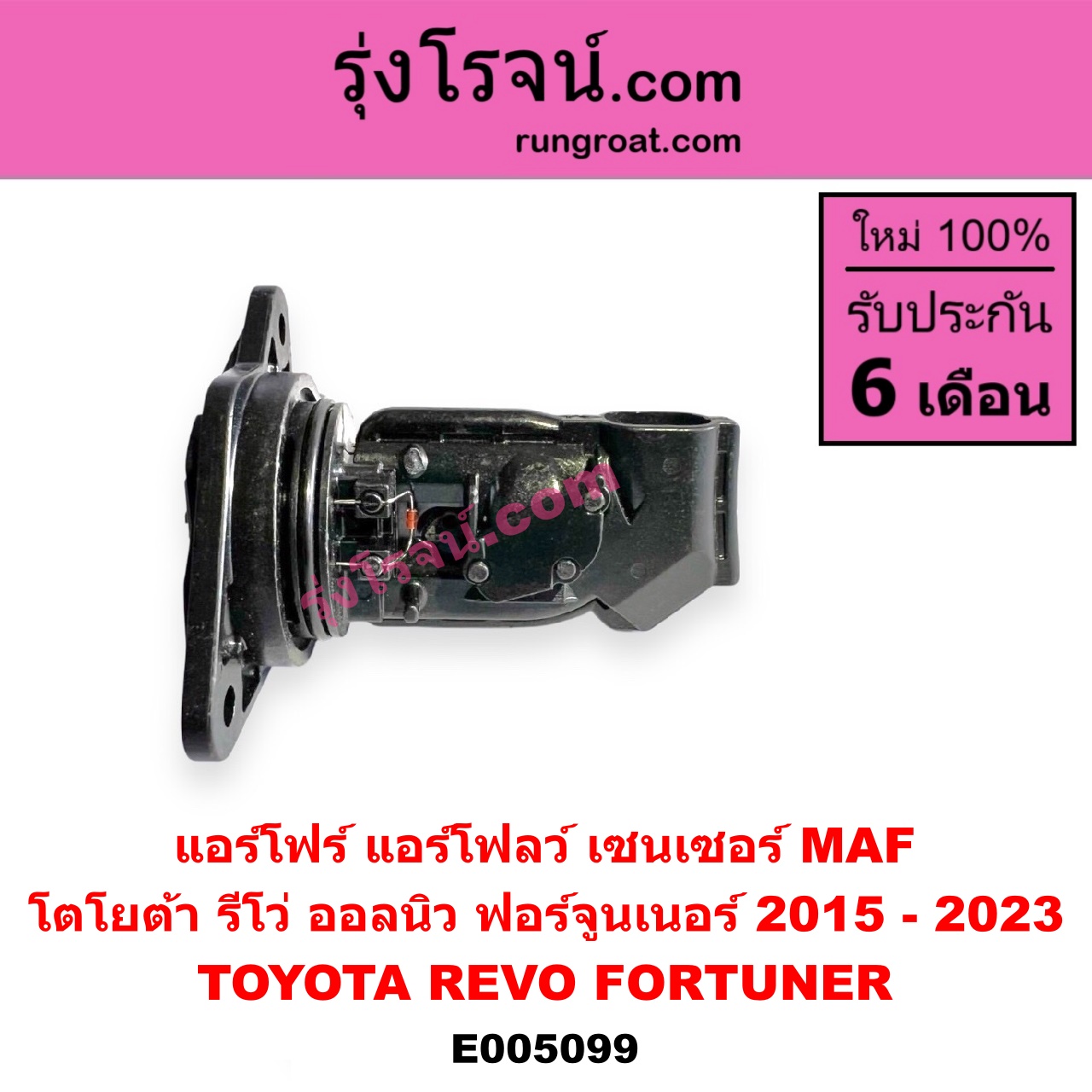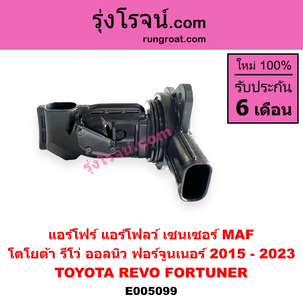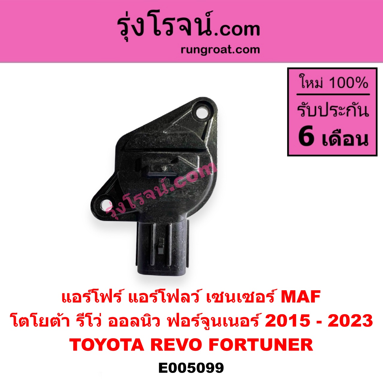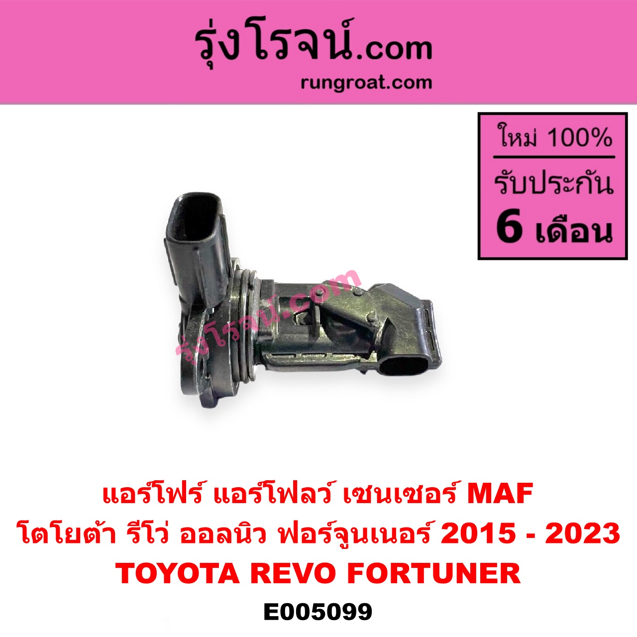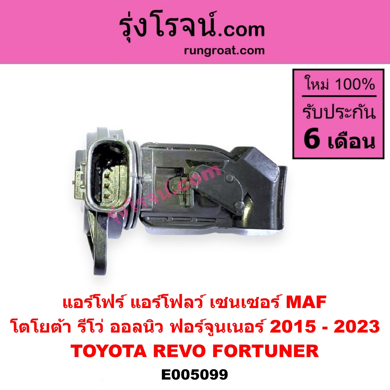 | E005099 | แอร์โฟร์ (แอร์โฟลว์, เซนเซอร์ MAF) | TOYOTA (โตโยต้า) / FORTUNER (ออลนิว ฟอร์จูนเนอร์ 2015 – 2023) (AN150 AN160 รุ่น 2) , TOYOTA (โตโยต้า) / REVO (รีโว รีโว่ 2015 – 2023) (โฉมแรก / ROCCO) |