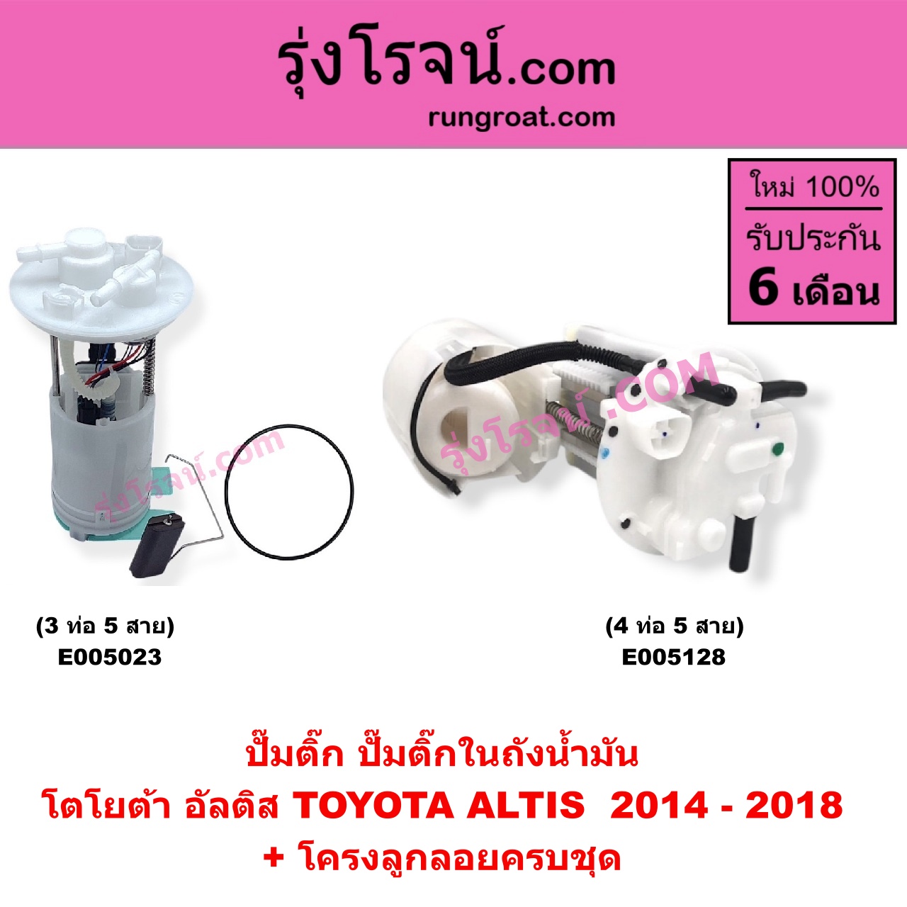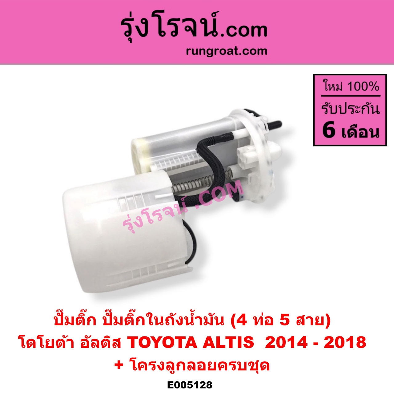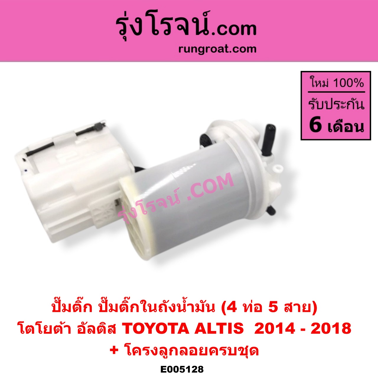 | E005128 | ปั๊มติ๊ก (ปั๊มติ๊กในถังน้ำมัน, ปั้มติ๊กนอกถัง) | TOYOTA (โตโยต้า) / ALTIS (อัลติส 2014 – 2018) (รุ่น 3) | + โครงลูกลอยครบชุด (4 ท่อ 5 สาย) | ไต้หวัน (ใหม่) |