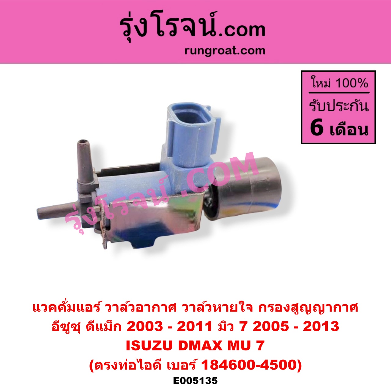 E005135 แวคคั่ม (วาล์วอากาศ, วาล์วหายใจ, กรองสูญญากาศ) ISUZU (อีซูซุ) / D-MAX (ดีแม็ก ดีแม็ค DMAX 2003 – 2011) (รุ่นแรก) , MU 7 (มิว 7 2005 – 2013) แวคคั่มแอร์ (ตรงท่อไอดี เบอร์ 184600-4500)