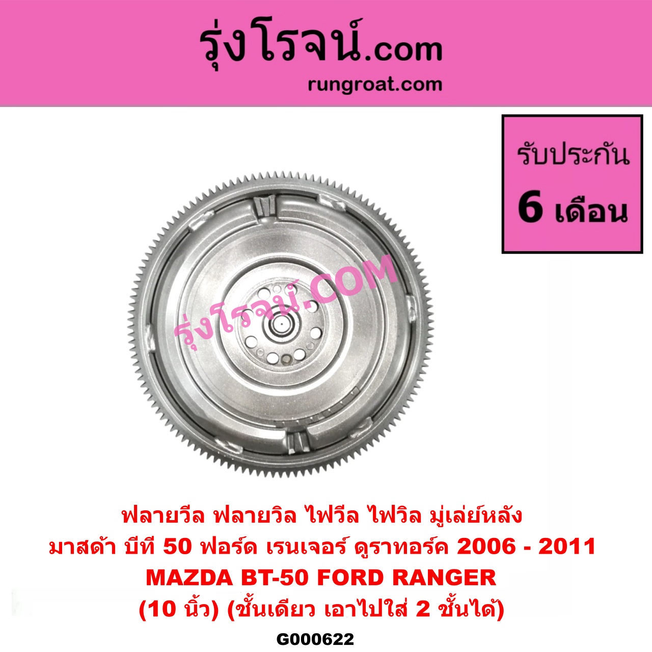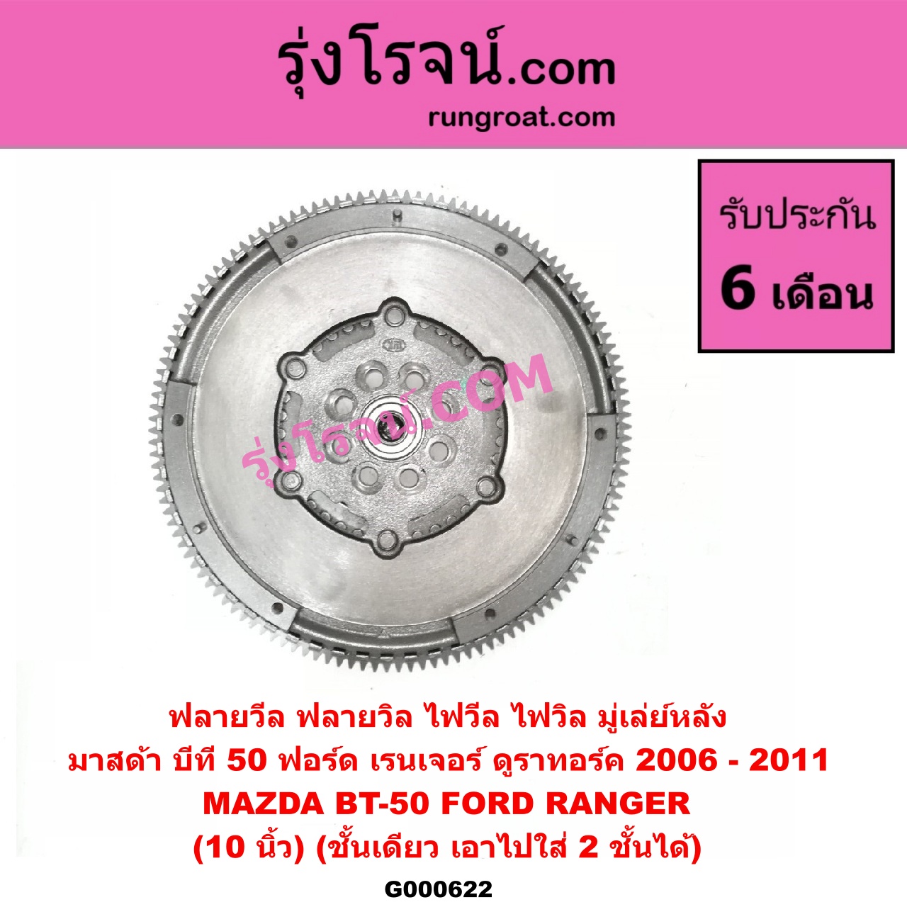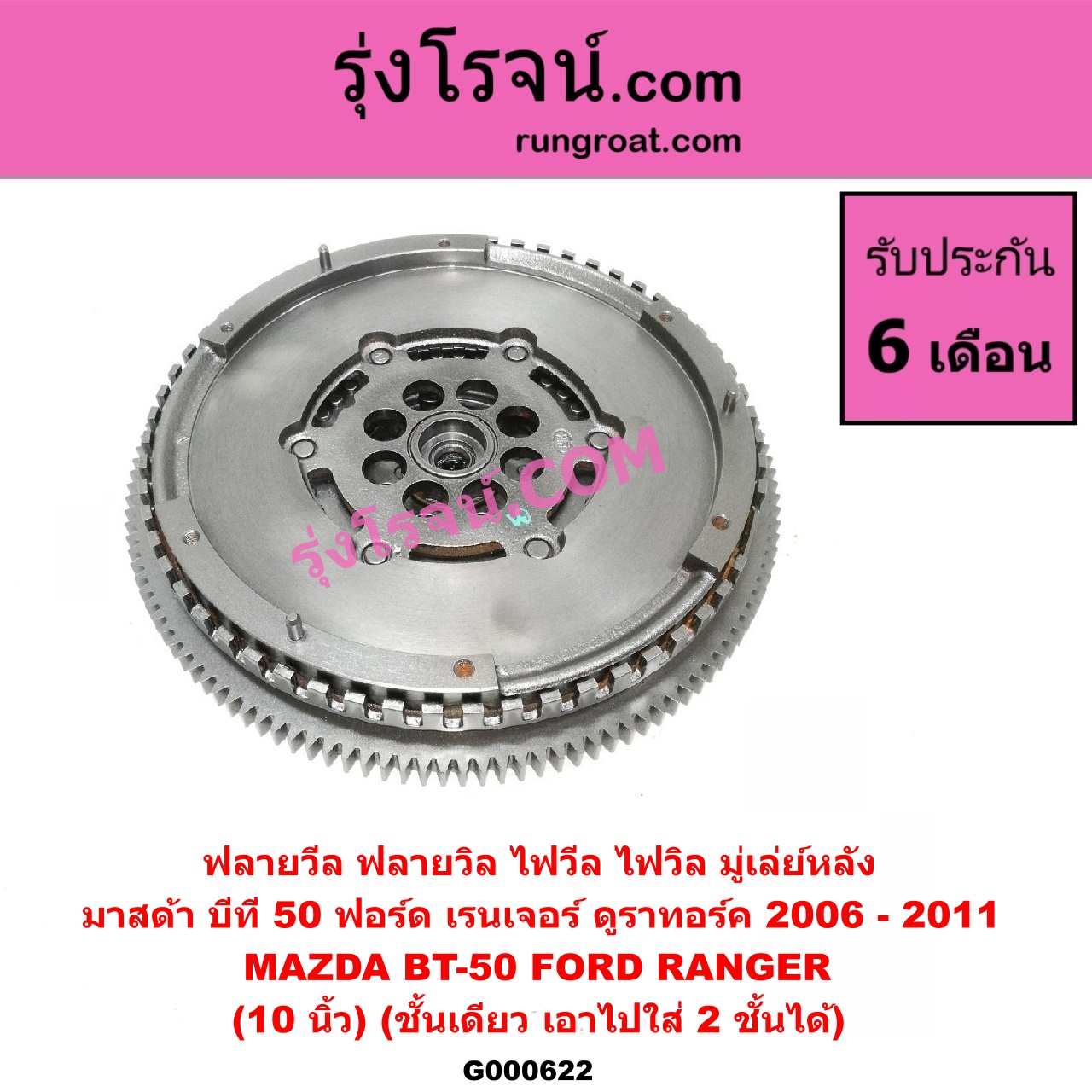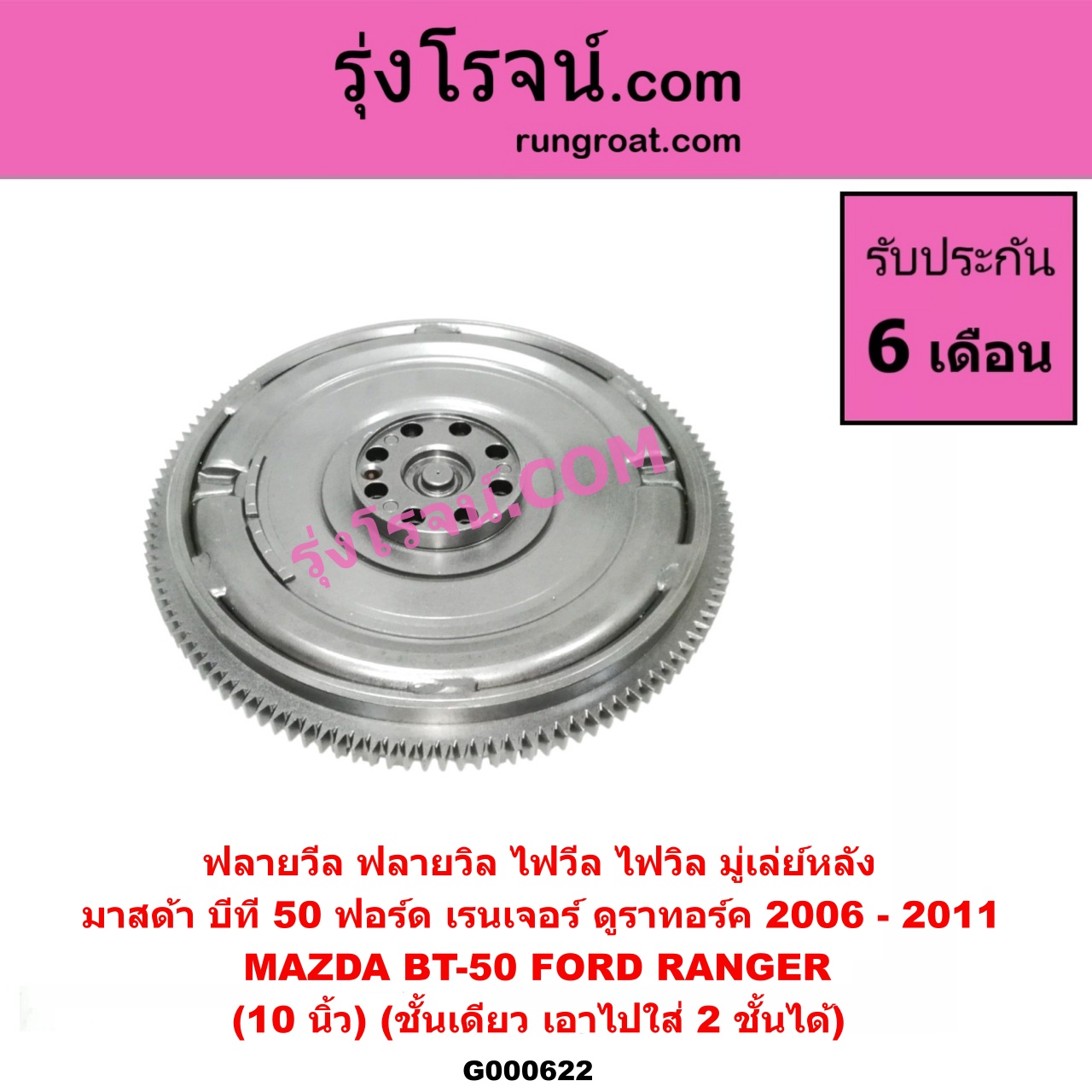 Home » สินค้า » G000622 ฟลายวีล (ฟลายวิล, ไฟวีล, ไฟวิล, มู่เล่ย์หลัง) FORD (ฟอร์ด) / RANGER (เรนเจอร์ ดูราทอร์ค 06/09) (รุ่น 2) , MAZDA (มาสด้า) / BT-50 (บีที 50 06/09) (10 นิ้ว) (ชั้นเดียว) (เอาไปใส่ 2 ชั้นได้) (LUK)