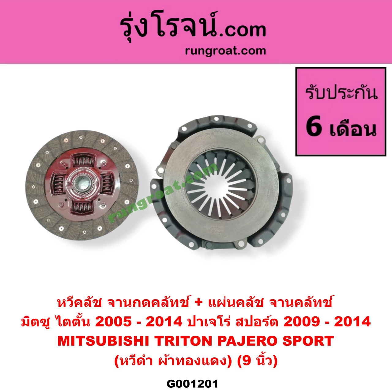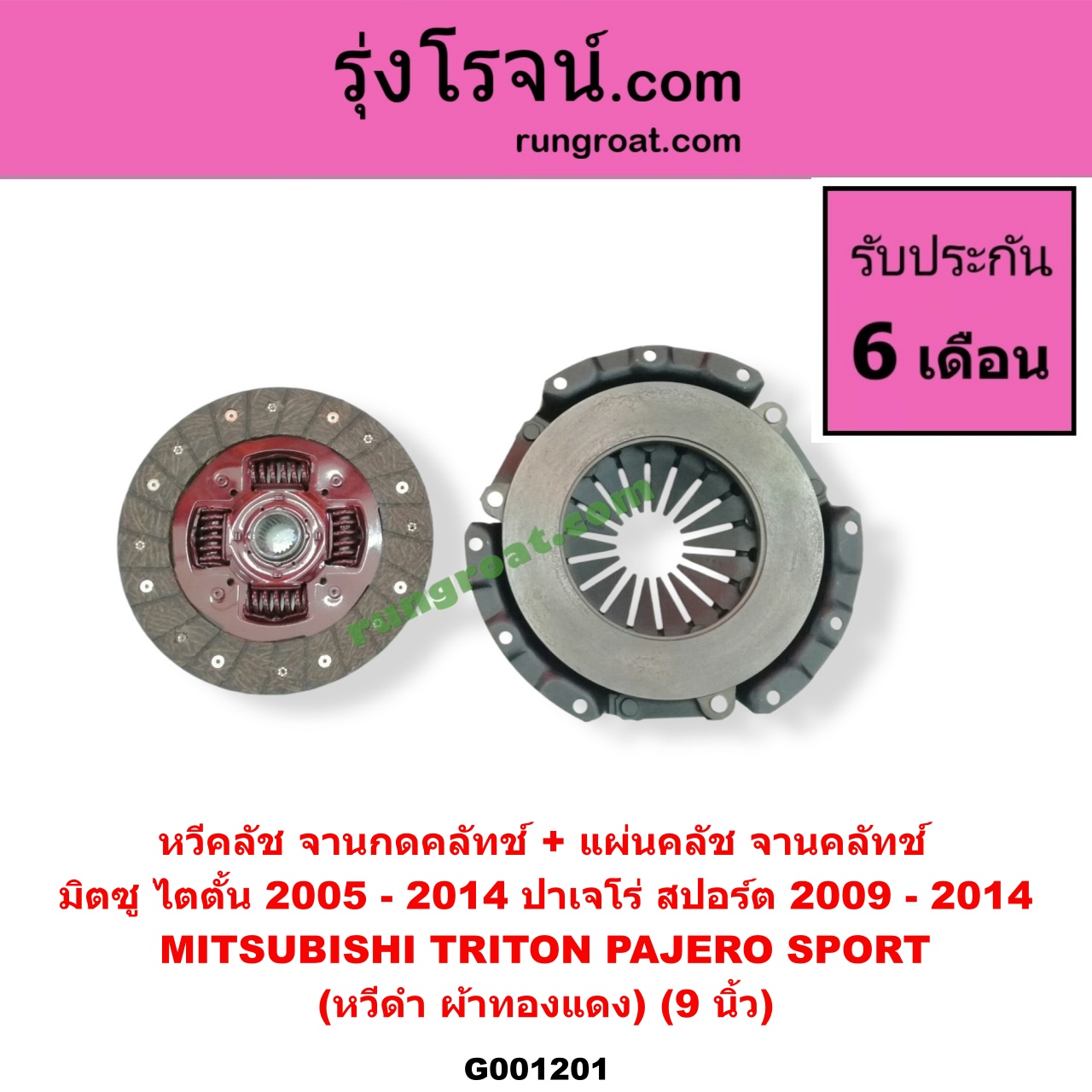 | G001201 | หวีครัช (จานกดคลัทช์) + แผ่นคลัช (จานคลัทช์) | MITSUBISHI (มิตซู) / PAJERO SPORT (ปาเจโร่ สปอร์ต 09/12) (รุ่นแรก) , MITSUBISHI (มิตซู) / TRITON (ไทรทัน ไตตั้น 2007 – 2014 PLUS) (รุ่นแรก) |