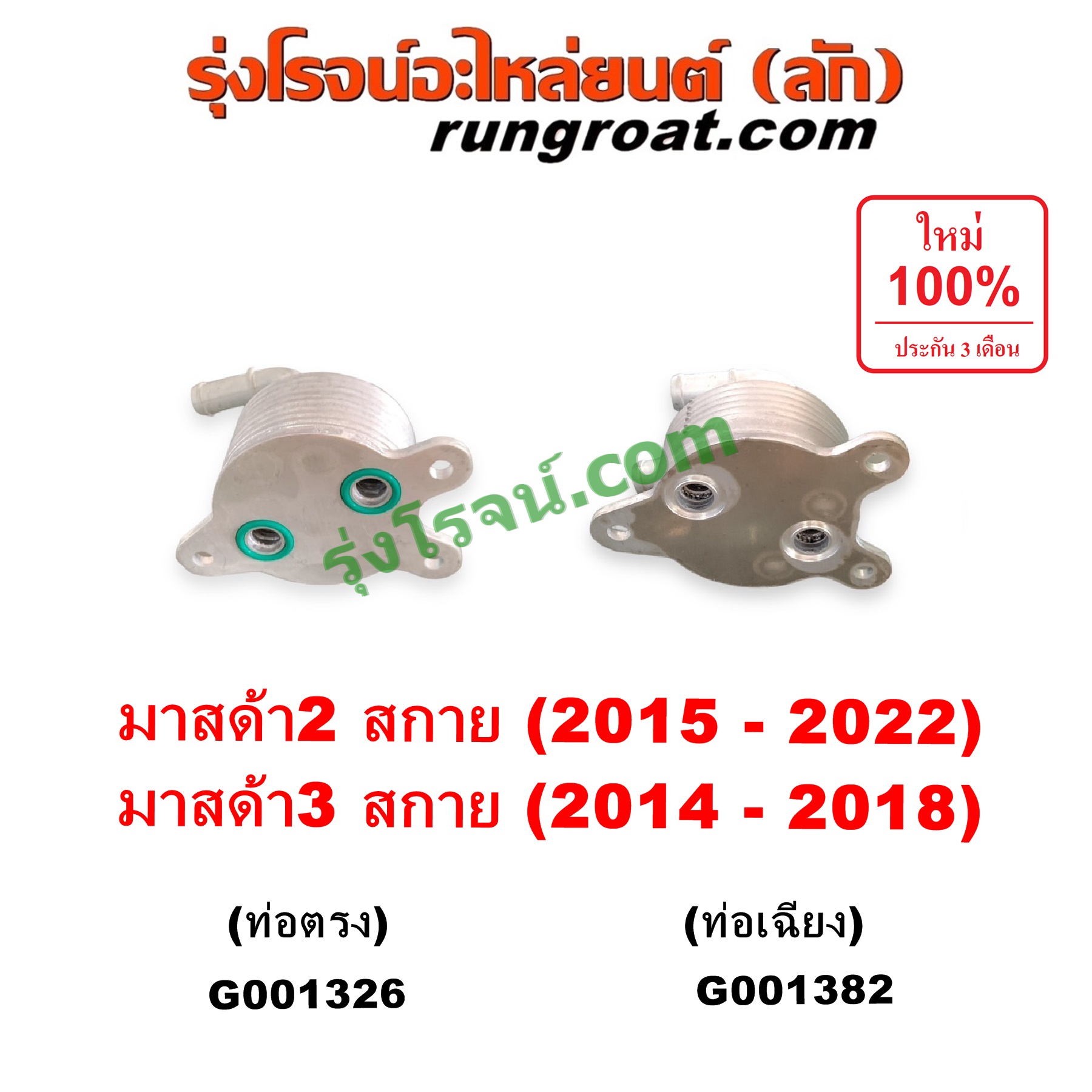 | G001326 | ออยเกียร์ (ออยคูลเลอร์ เกียร์ออโต้) | MAZDA (มาสด้า) / MAZDA 2 (มาสด้า 2 2015 – 2022) (DJ DL รุ่น 2, สกายแอคทีฟ SKYACTIV) , MAZDA (มาสด้า) / MAZDA 3 (มาสด้า 3 2014 – 2018) (BM BN รุ่น 3, สกายแอคทีฟ SKYACTIV) |