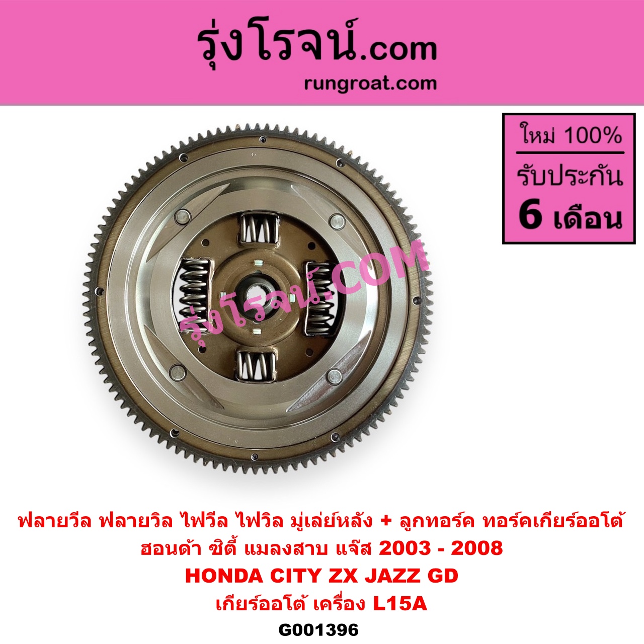 | G001396 | ฟลายวีล (ฟลายวิล, ไฟวีล, ไฟวิล) + ลูกทอร์ค (ทอร์คเกียร์ออโต้) | HONDA (ฮอนด้า) / CITY (ซิตี้ 2003 – 2008) (แมลงสาบ, ZX) , HONDA (ฮอนด้า) / JAZZ (แจ๊ส 2003 – 2008) (GD) |