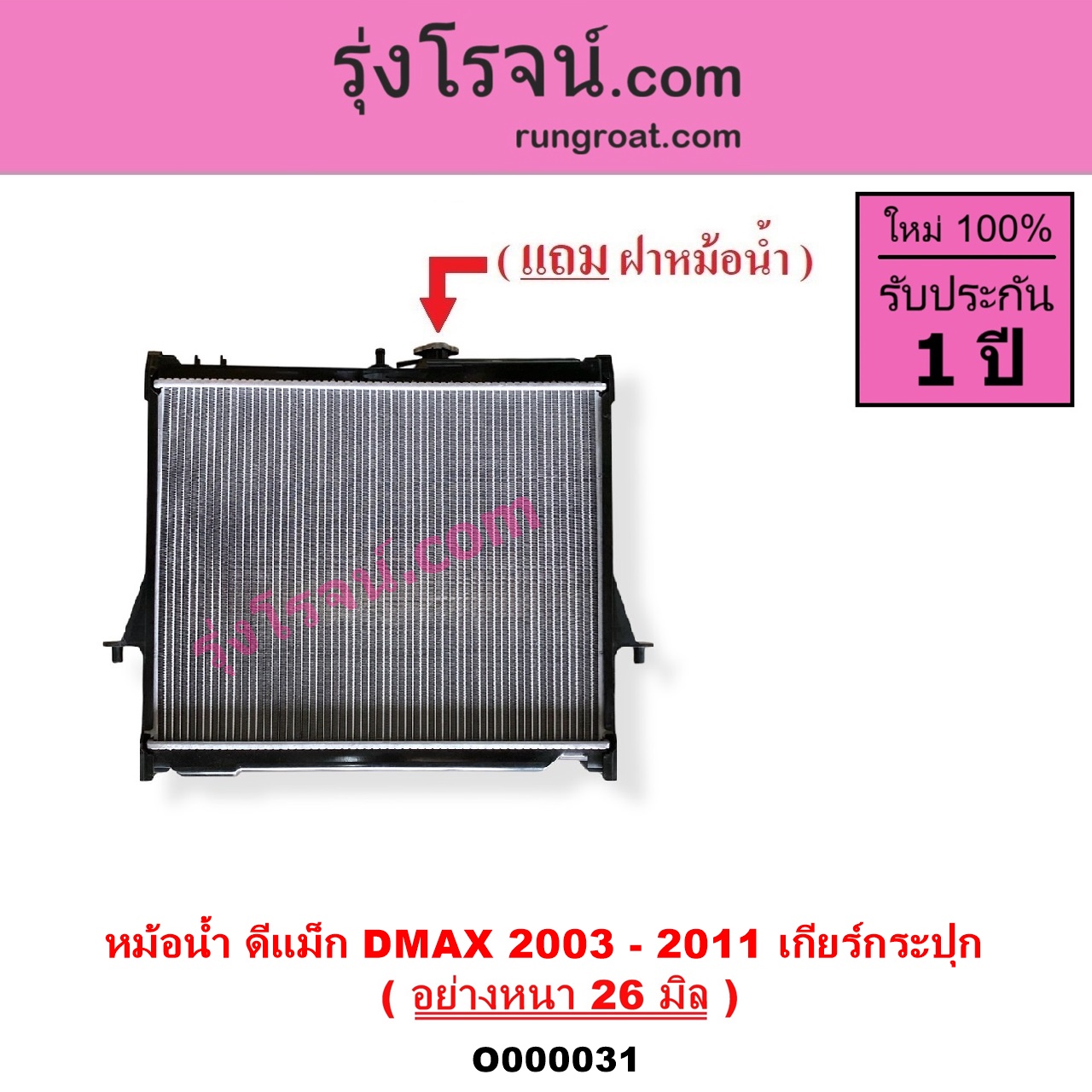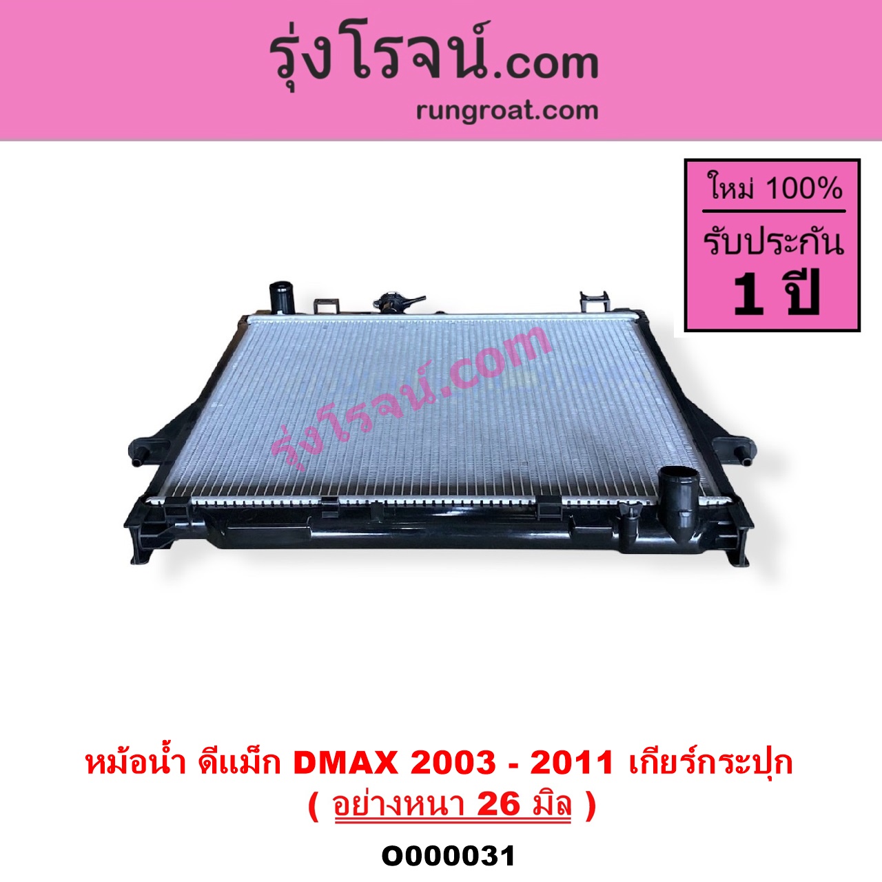 | O000031 | หม้อน้ำ (รังผึ้งหม้อน้ำ, แผงหม้อน้ำ) | CHEVROLET (เชฟโรเลต) / COLORADO (โคโลราโด 05/09) (ตา 2 ชั้น / ตาชั้นเดียว) , ISUZU (อีซูซุ) / D-MAX (ดีแม็ก ดีแม็ค DMAX 2003 2005 2007) (รุ่นแรก) , ISUZU (อีซูซุ) / MU 7 (มิว 7 05/09) |