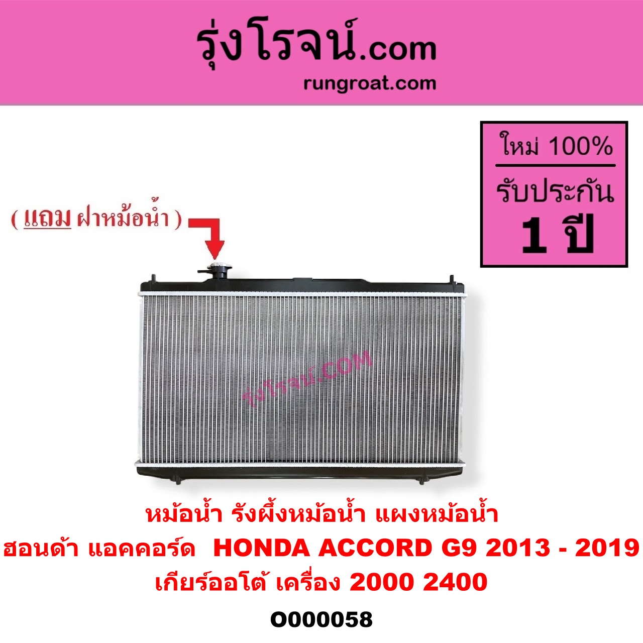 | O000058 | หม้อน้ำ (รังผึ้งหม้อน้ำ, แผงหม้อน้ำ) | HONDA (ฮอนด้า) / ACCORD (แอคคอร์ด 2013 – 2019 ไฮบริด) (G9) | เกียร์ออโต้ (เครื่อง 2000, 2400) | ไต้หวัน (ใหม่) |