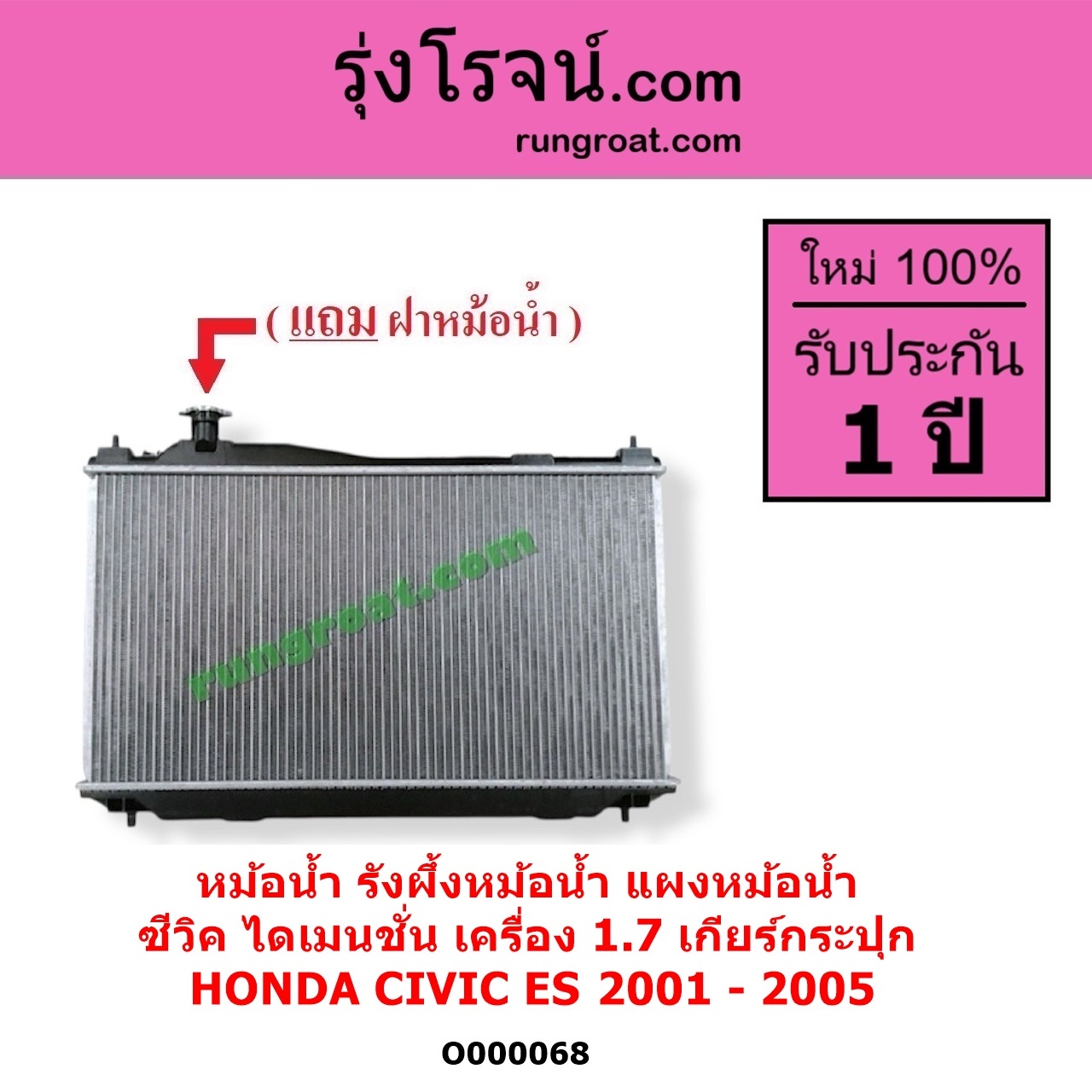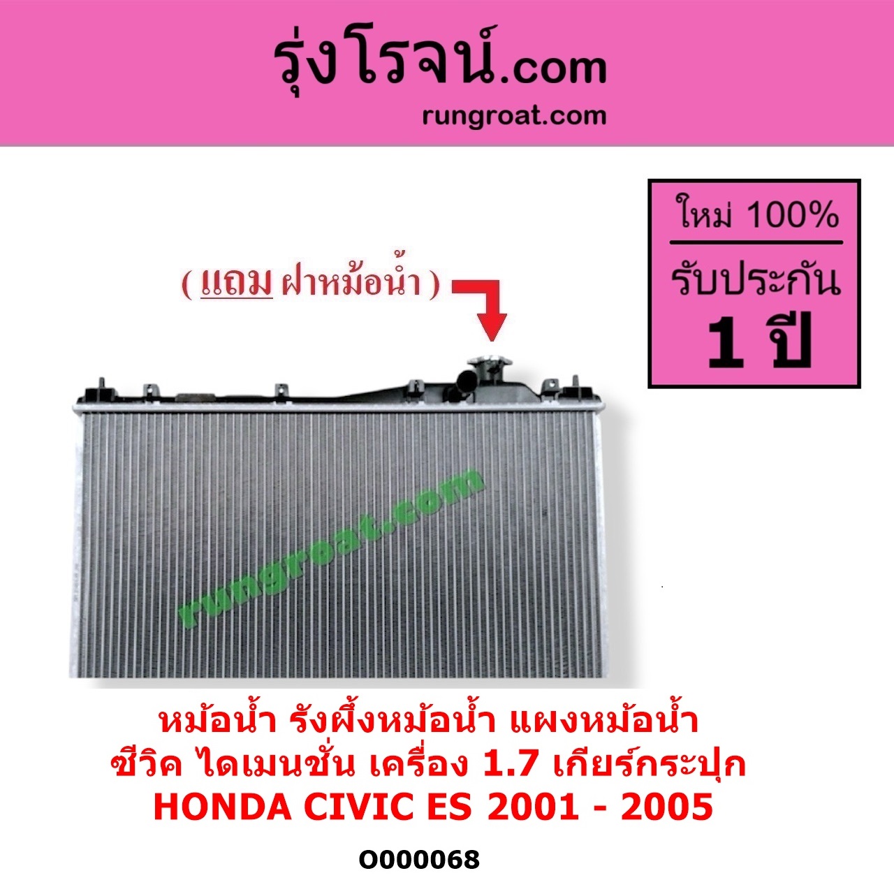 | O000068 | หม้อน้ำ (รังผึ้งหม้อน้ำ, แผงหม้อน้ำ) | HONDA (ฮอนด้า) / CIVIC (ซีวิค 2001 – 2005) (ไดเมนชั่น) (ES) | เฉพาะเกียร์กระปุก (เครื่อง 1700) | ไต้หวัน (ใหม่) |