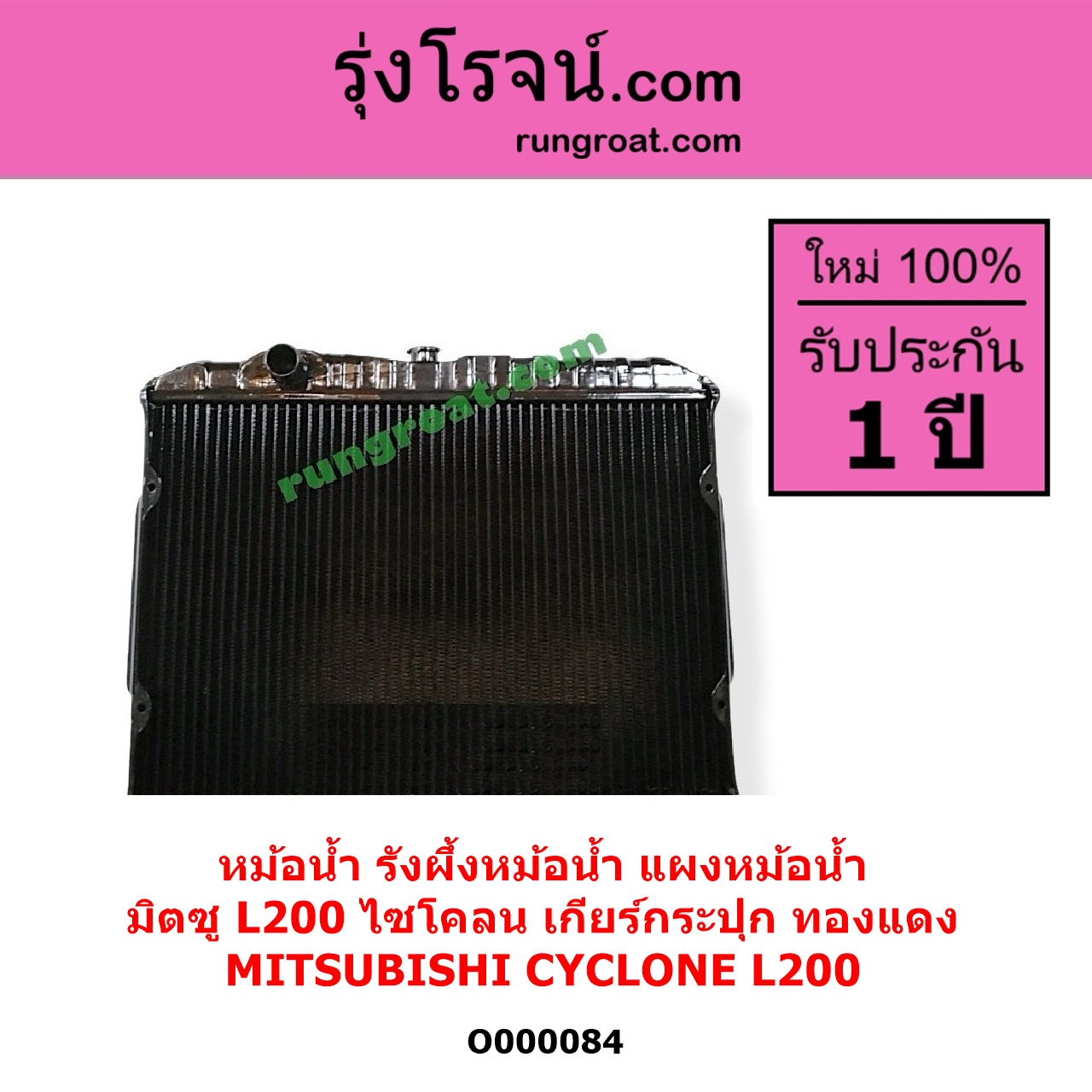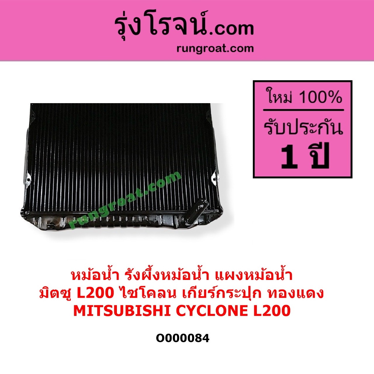 | O000084 | หม้อน้ำ (รังผึ้งหม้อน้ำ, แผงหม้อน้ำ) | MITSUBISHI (มิตซู) / CYCLONE (L200 ไซโคลน) | เฉพาะเกียร์กระปุก ทองแดง | ไต้หวัน (ใหม่) |