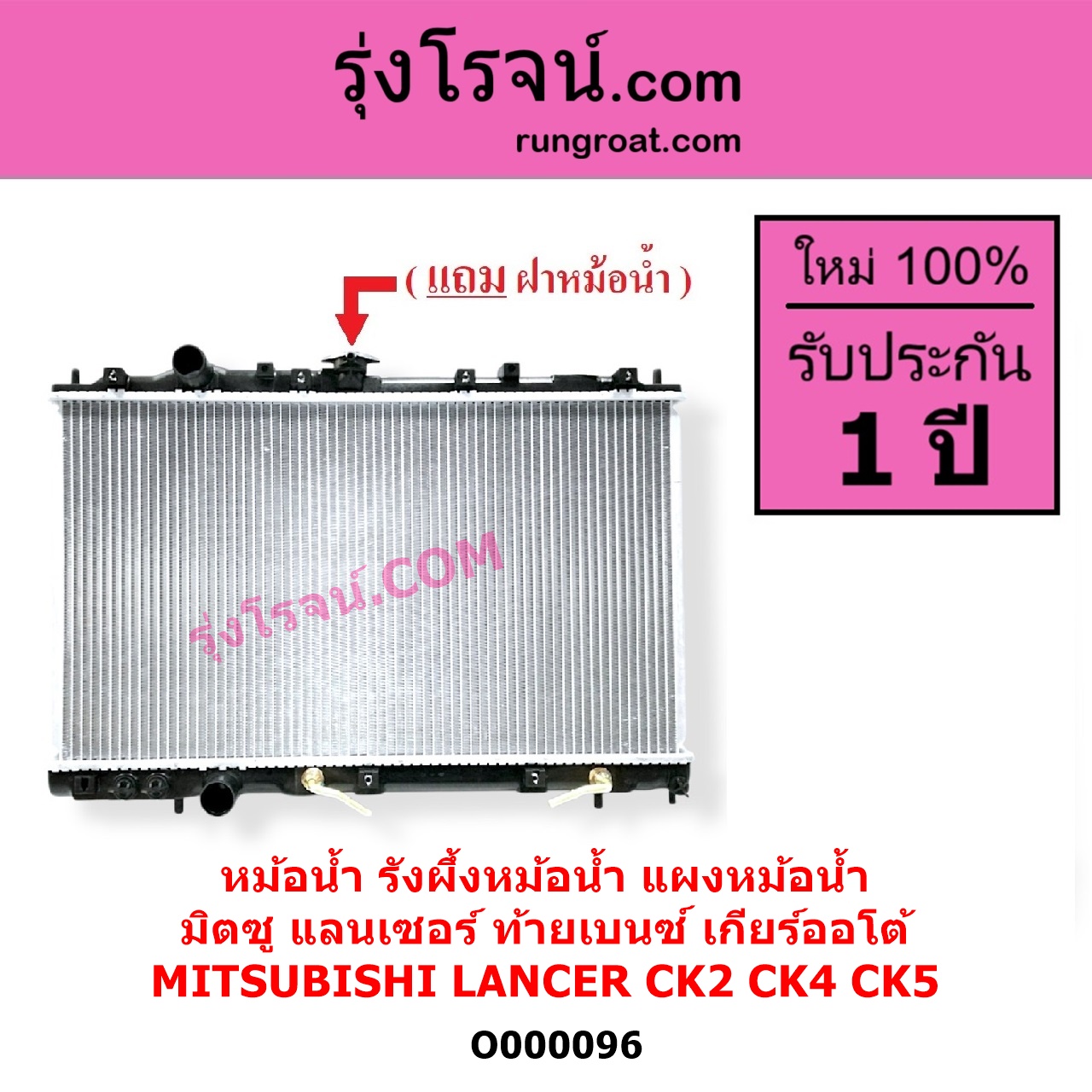 | O000096 | หม้อน้ำ (รังผึ้งหม้อน้ำ, แผงหม้อน้ำ) | MITSUBISHI (มิตซู) / LANCER CK2/CK4/CK5 (แลนเซอร์ ท้ายเบนซ์) | เกียร์ออโต้ (ใส่เกียร์กระปุกได้) | ไต้หวัน (ใหม่) |