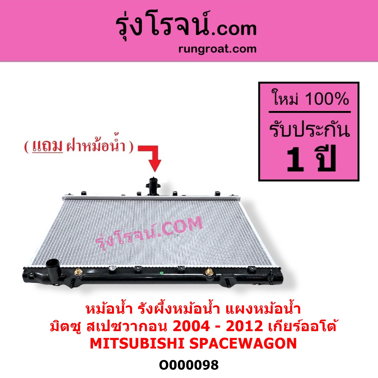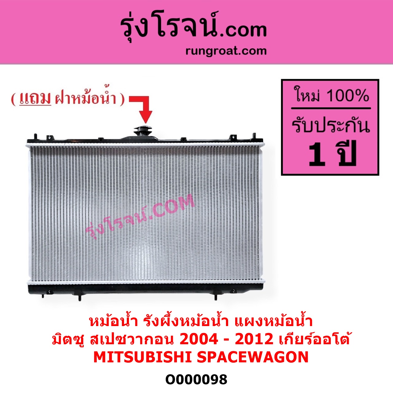 | O000098 | หม้อน้ำ (รังผึ้งหม้อน้ำ, แผงหม้อน้ำ) | MITSUBISHI (มิตซู) / SPACEWAGON (สเปซวากอน 2004 – 2012) (รุ่น 2) | เกียร์ออโต้ (ใส่เกียร์กระปุกได้) | ไต้หวัน (ใหม่) |