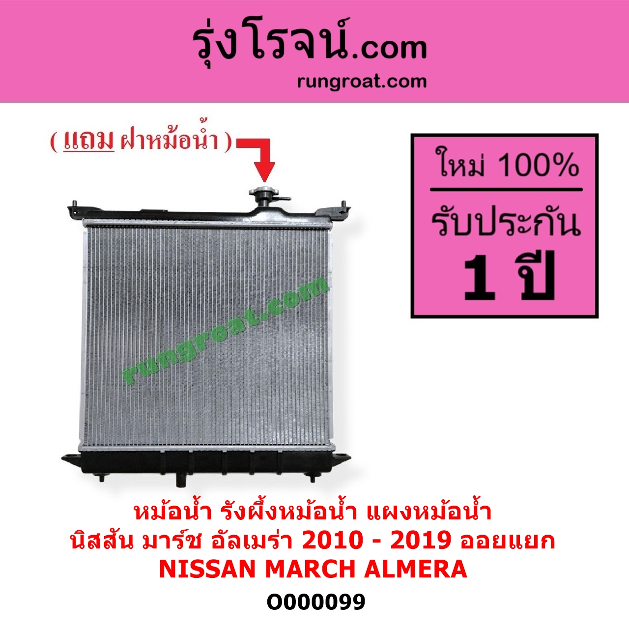 | O000099 | หม้อน้ำ (รังผึ้งหม้อน้ำ, แผงหม้อน้ำ) | NISSAN (นิสสัน) / ALMERA (อัลเมร่า 2010 – 2019) , NISSAN (นิสสัน) / MARCH (มาร์ช 2010 – 2021) |
