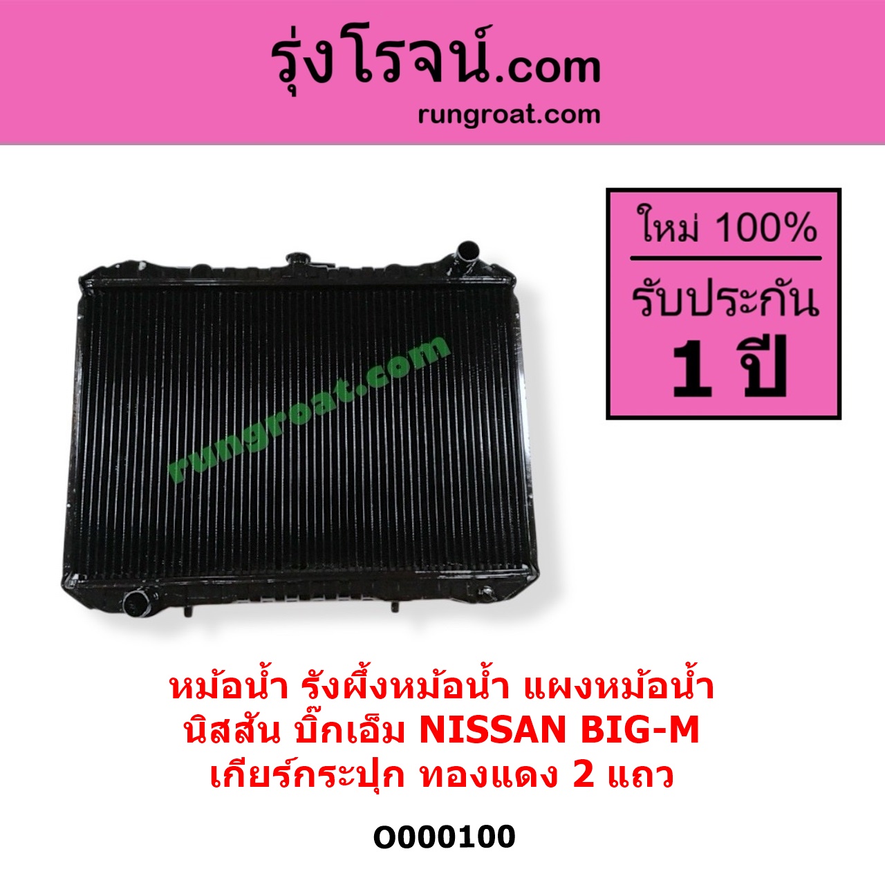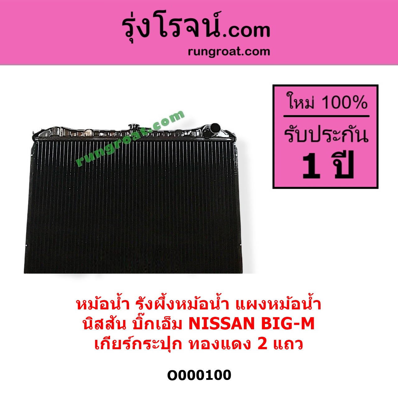 | O000100 | หม้อน้ำ (รังผึ้งหม้อน้ำ, แผงหม้อน้ำ) | NISSAN (นิสสัน) / BIG-M (บิ๊กเอ็ม TD, BDI / 925 / 993) | เฉพาะเกียร์กระปุก ทองแดง 2 แถว | ไต้หวัน (ใหม่) |