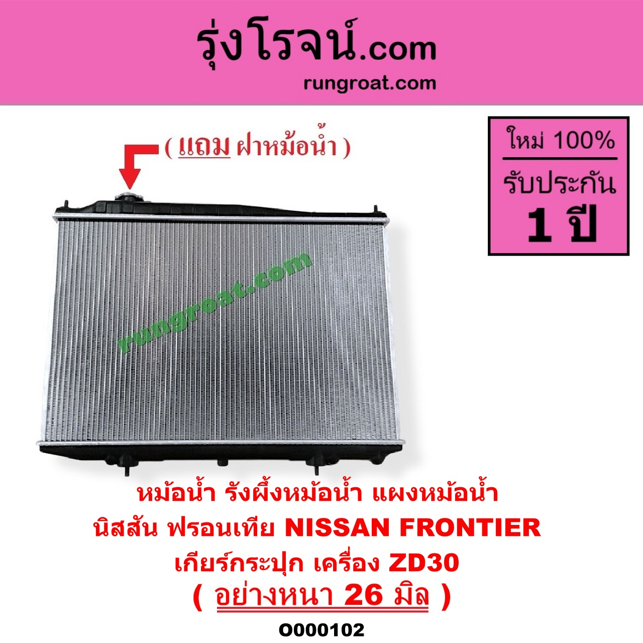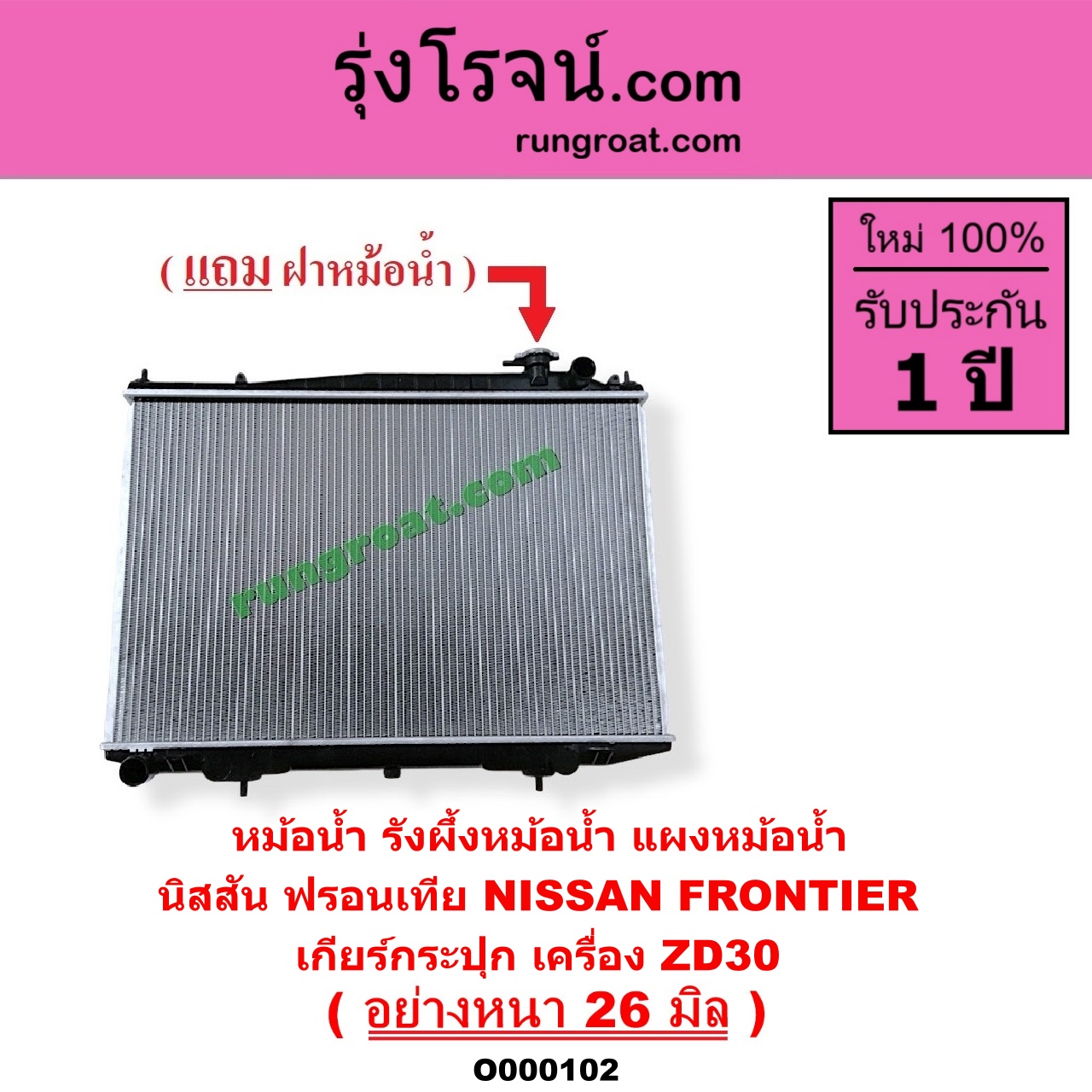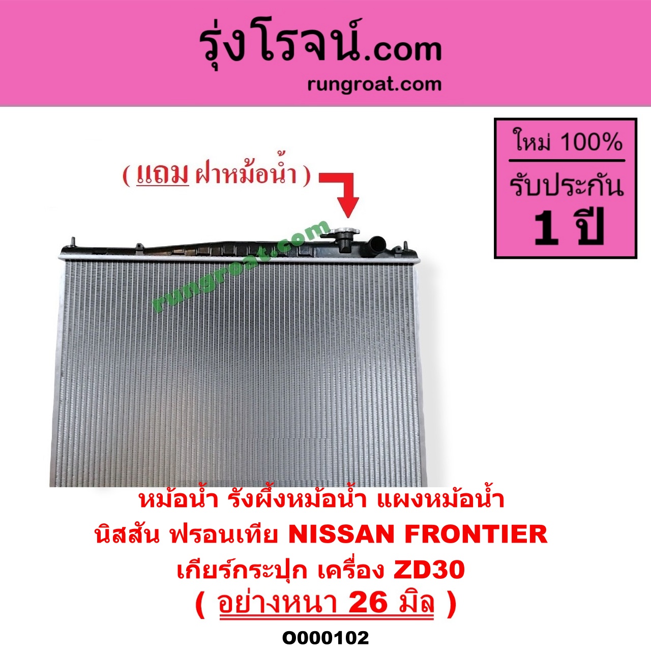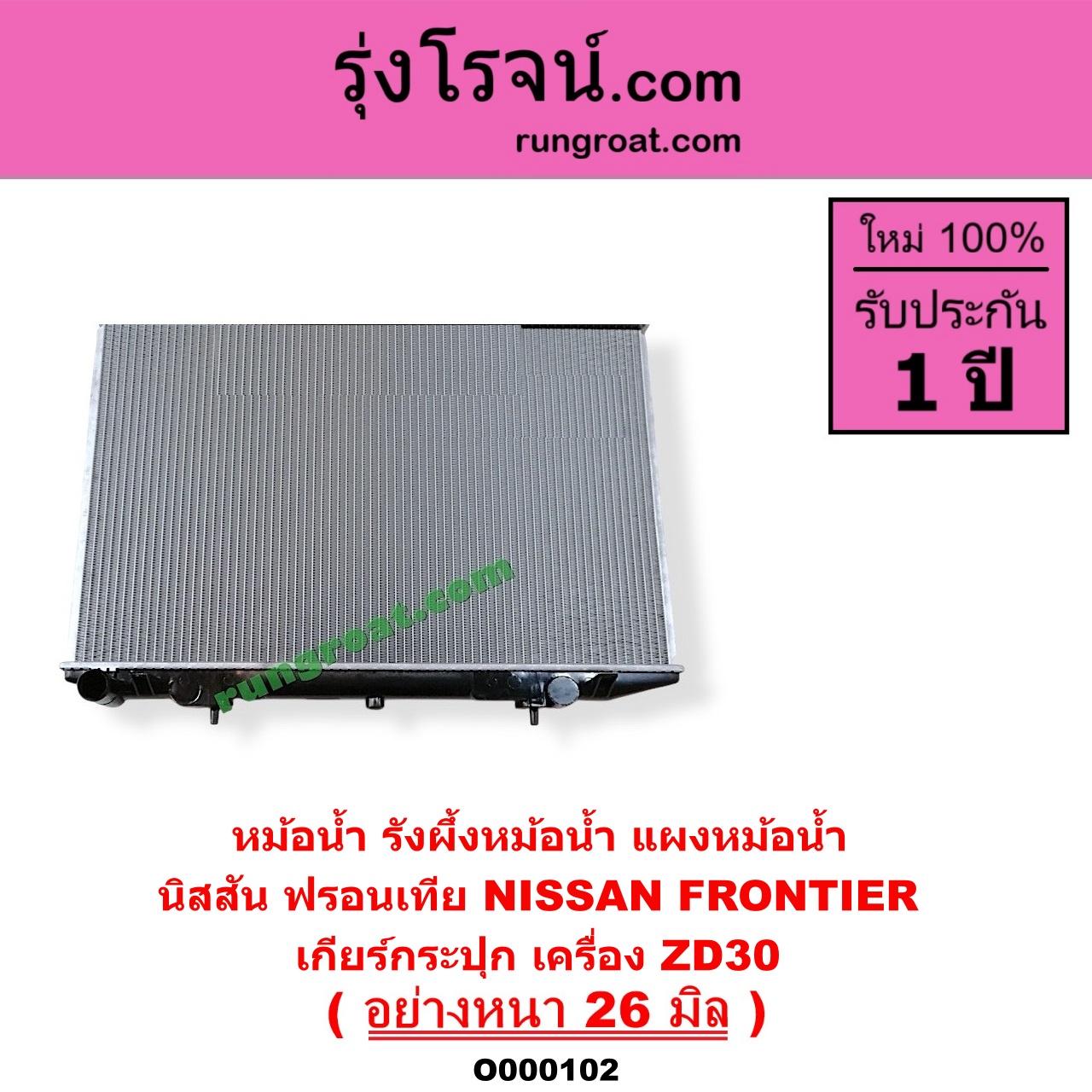 | O000102 | หม้อน้ำ (รังผึ้งหม้อน้ำ, แผงหม้อน้ำ) | NISSAN (นิสสัน) / FRONTIER (ฟรอนเทีย 1998 – 2006) | เฉพาะเกียร์กระปุก เครื่อง ZD30 (อย่างหนา 26 มิล) | ไต้หวัน (ใหม่) |