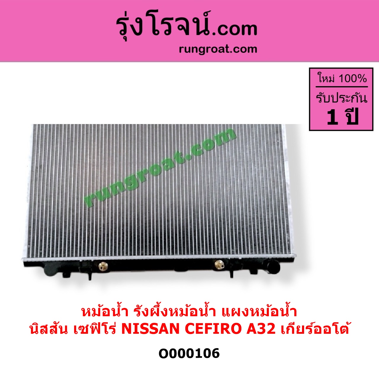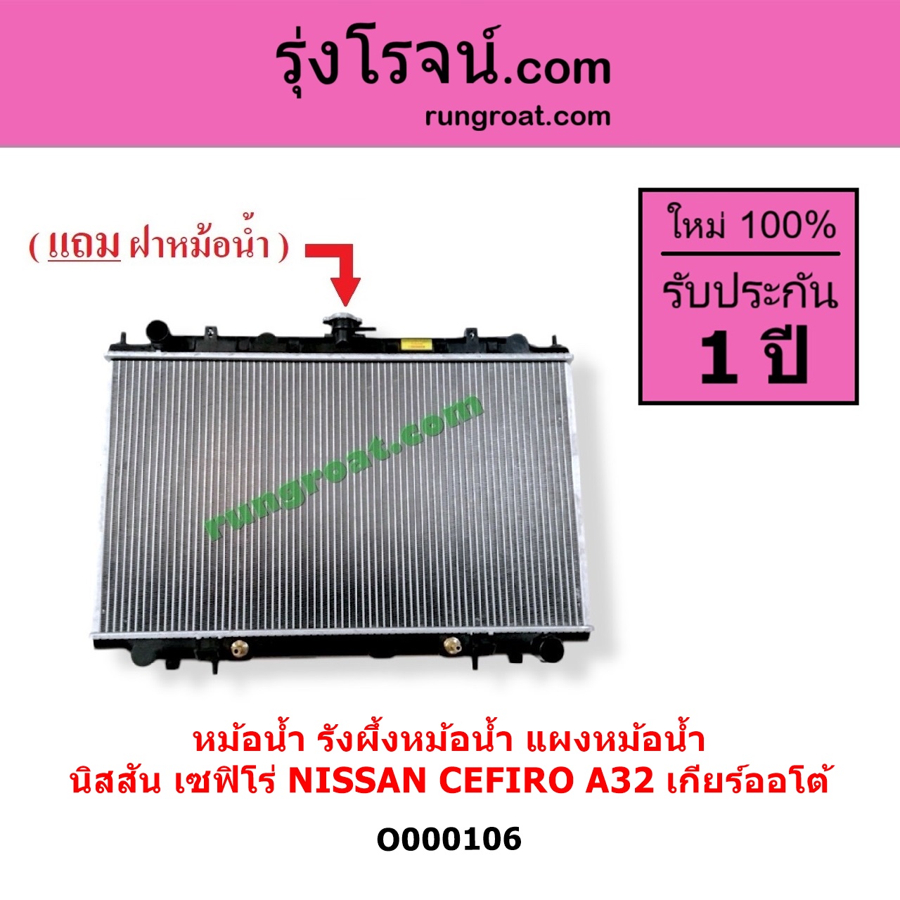 | O000106 | หม้อน้ำ (รังผึ้งหม้อน้ำ, แผงหม้อน้ำ) | NISSAN (นิสสัน) / CEFIRO (เซฟิโร่ A32) | เกียร์ออโต้ (ใส่เกียร์ธรรมดาได้) | ไต้หวัน (ใหม่) |