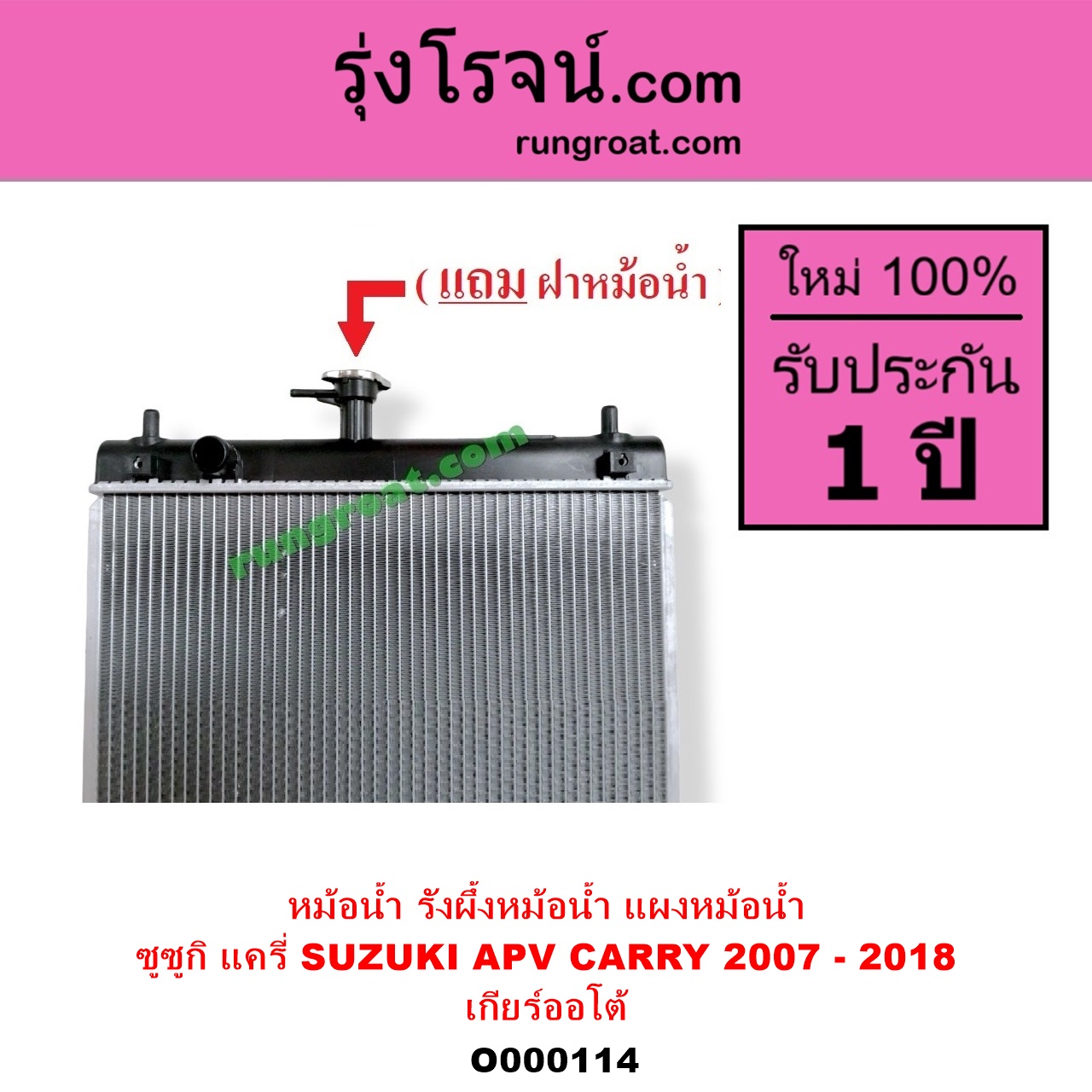 | O000114 | หม้อน้ำ (รังผึ้งหม้อน้ำ, แผงหม้อน้ำ) | SUZUKI (ซูซูกิ) / APV (เอพีวี 05) , SUZUKI (ซูซูกิ) / CARRY (แครี่) (2007 – 2018) |