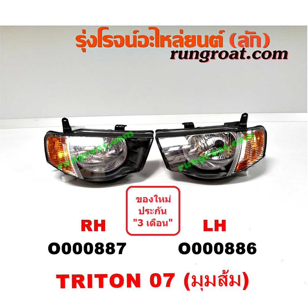 Home » สินค้า » O000886 ไฟหน้า MITSUBISHI (มิตซู) / TRITON (ไทรทัน 07/09 PLUS) (รุ่นแรก) โฉมแรก ปี 07 (มุมส้ม) LH