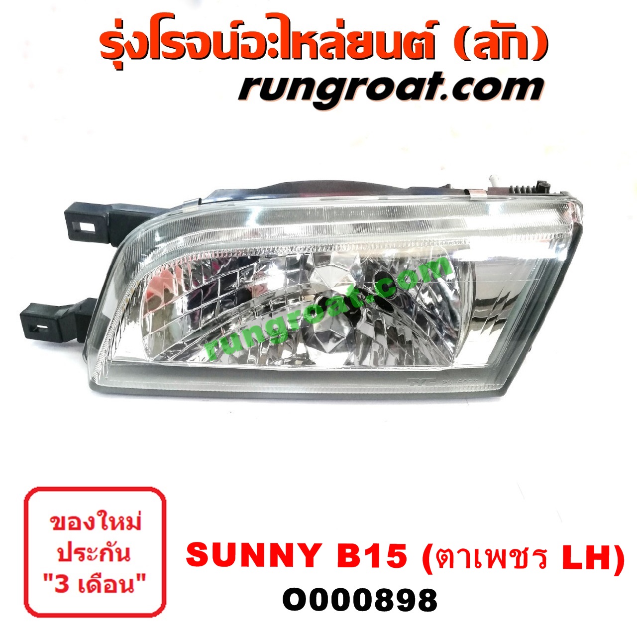 Home » สินค้า » O000898 ไฟหน้า (ทั้งดวง) NISSAN (นิสสัน) / SUNNY (ซันนี่ B14/B15) โฉม B15 ตาเพชร LH