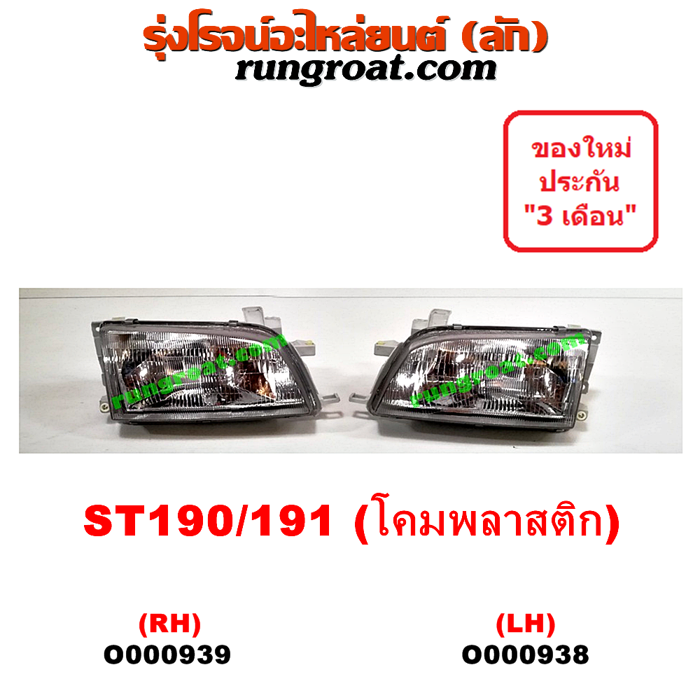 Home » สินค้า » O000938 ไฟหน้า (ทั้งดวง) TOYOTA (โตโยต้า) / CORONA (โคโรน่า ST190/191/EXSIOR) (ท้ายโด่ง) โฉม 191 / 191 โคมพลาสติก LH