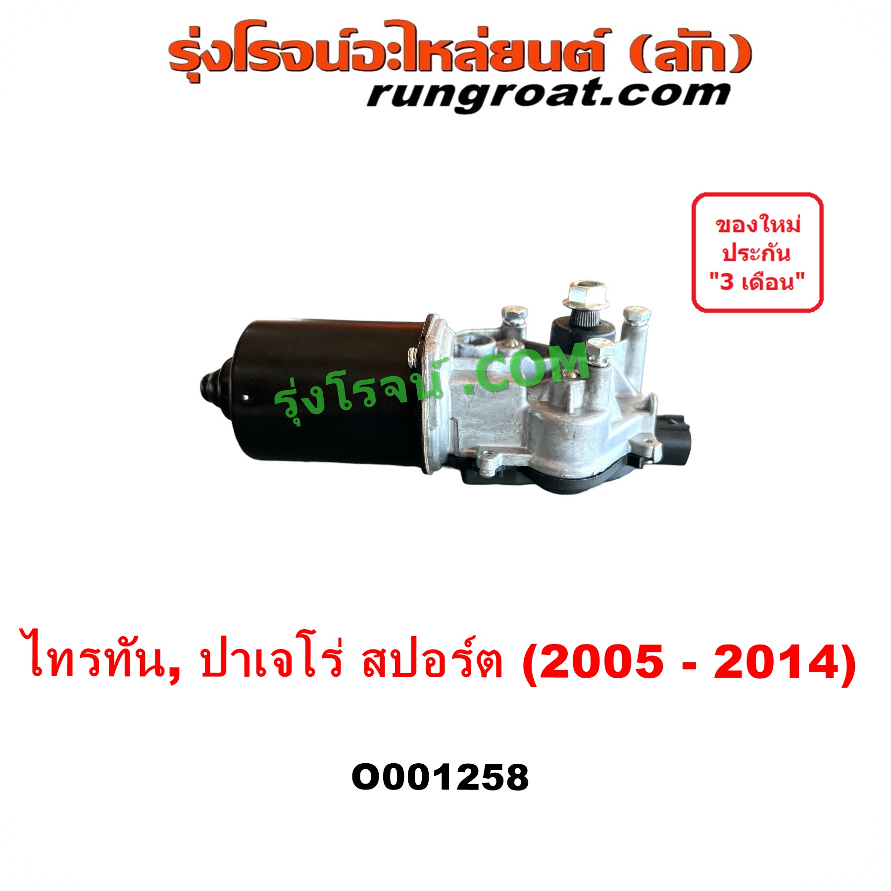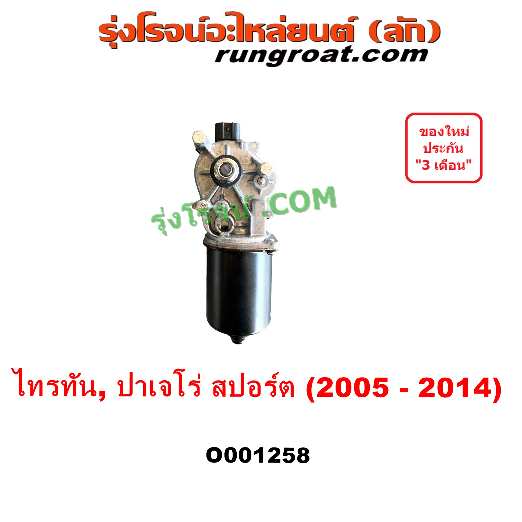 | O001258 | มอเตอร์ ปัดน้ำฝน | MITSUBISHI (มิตซู) / PAJERO SPORT (ปาเจโร่ สปอร์ต 2009 – 2014) (รุ่นแรก) , MITSUBISHI (มิตซู) / TRITON (ไทรทัน ไตตั้น 2005 – 2014 PLUS) (รุ่นแรก) |
