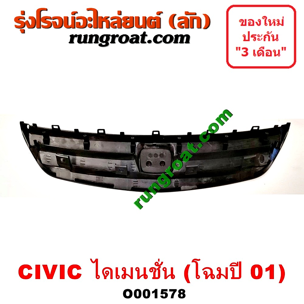 Home » สินค้า » O001578 กระจังหน้า (หน้ากระจัง) HONDA (ฮอนด้า) / CIVIC (ซีวิค 01/04) (ไดเมนชั่น) (ES) โฉมปี 01