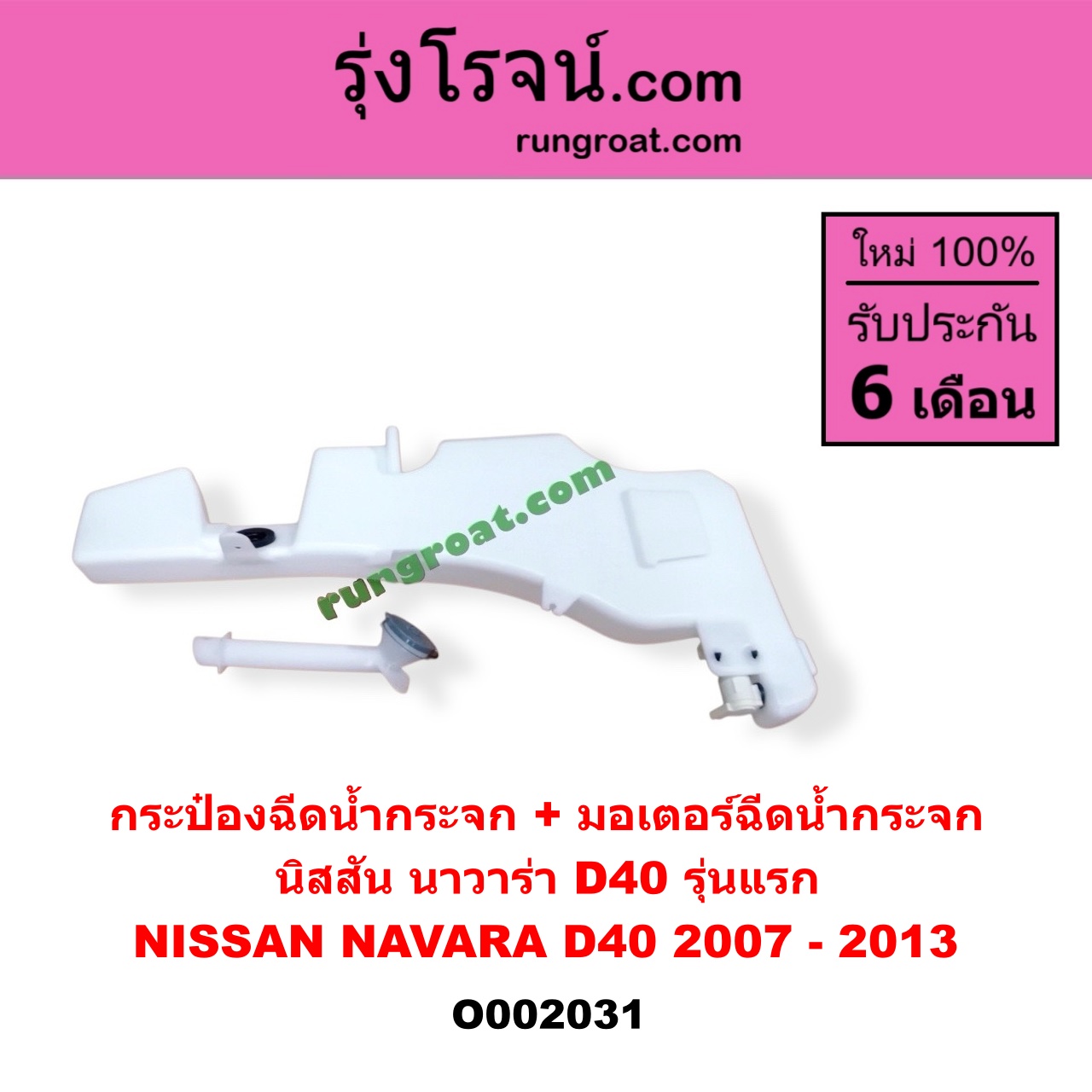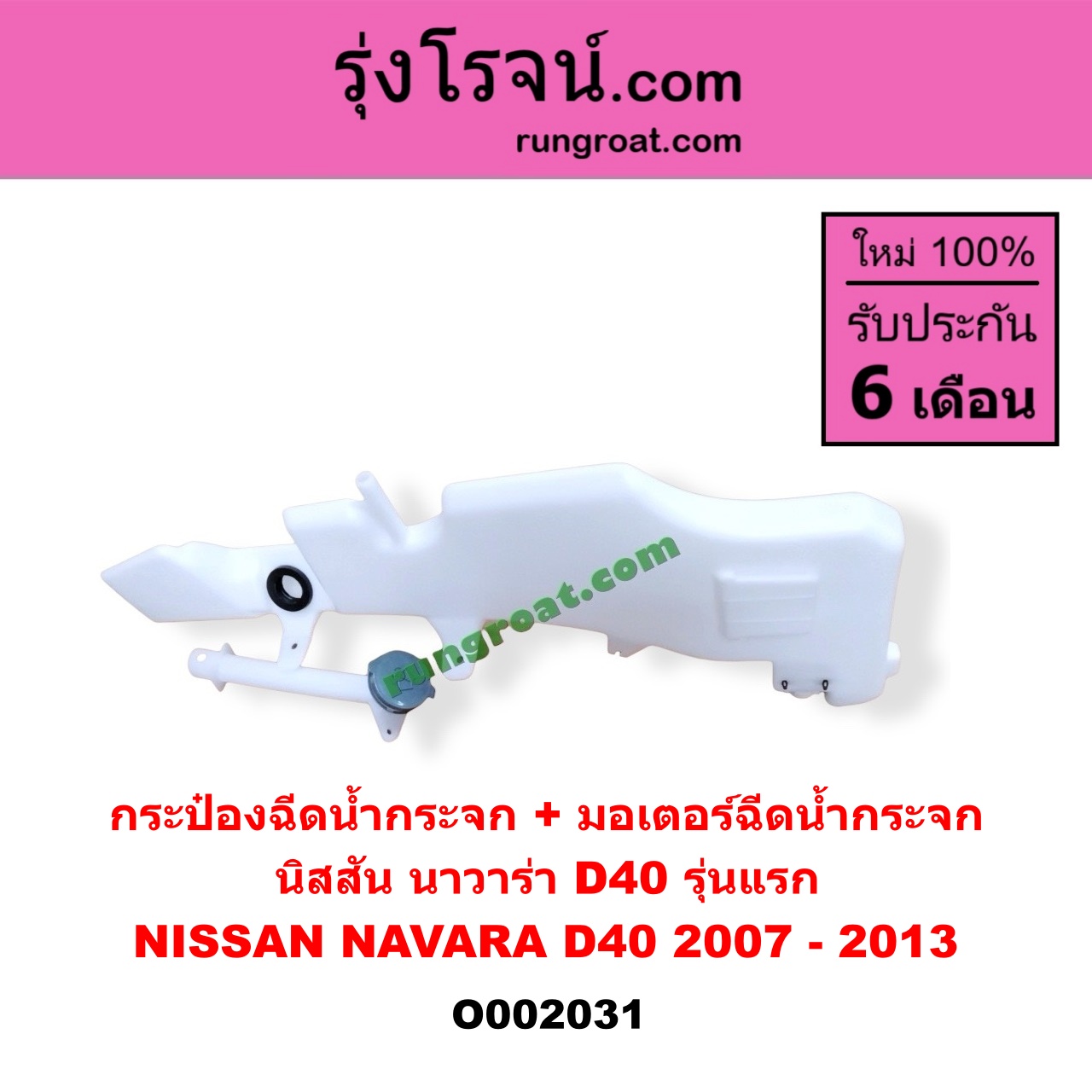 | O002031 | กระป๋องฉีดน้ำกระจก + มอเตอร์ฉีดน้ำกระจก | NISSAN (นิสสัน) / NAVARA (นาวาร่า D40 2007 – 2013) (รุ่นแรก D40) | – | ไต้หวัน (ใหม่) |