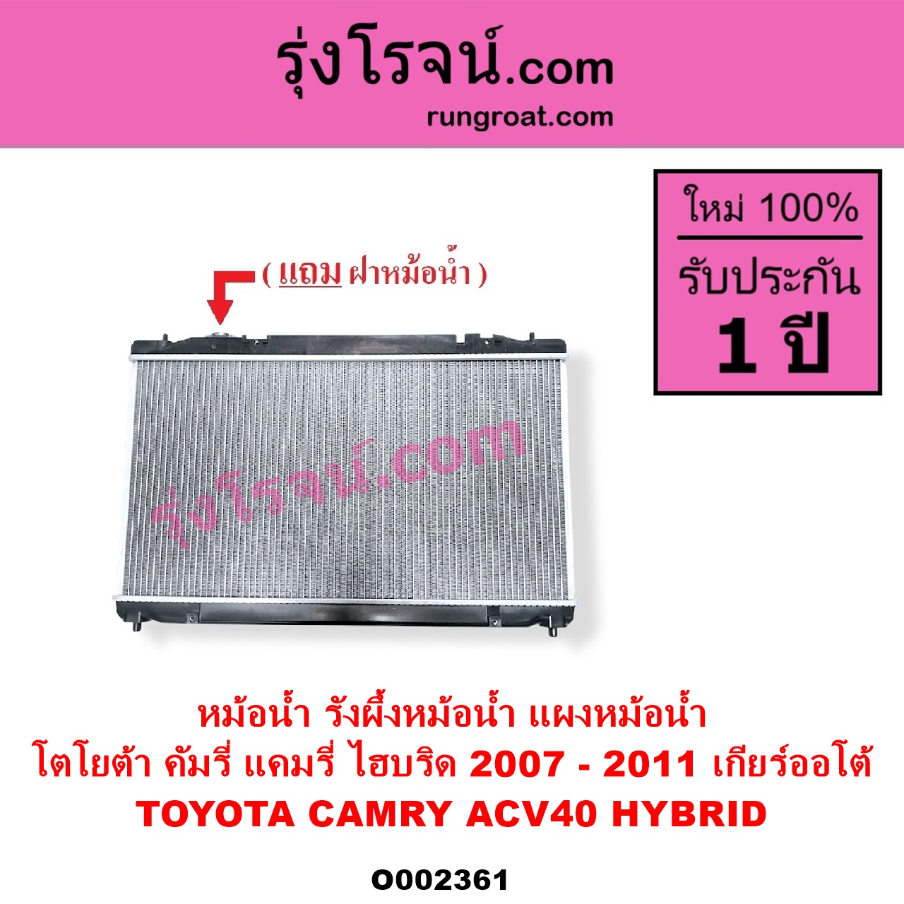 | O002361 | หม้อน้ำ (รังผึ้งหม้อน้ำ, แผงหม้อน้ำ) | TOYOTA (โตโยต้า) / CAMRY (คัมรี่ แคมรี่ 2007 – 2011 ไฮบริด) (ACV40) | (ไฮบริด HYBRID) เกียร์ออโต้ | ไต้หวัน (ใหม่) |