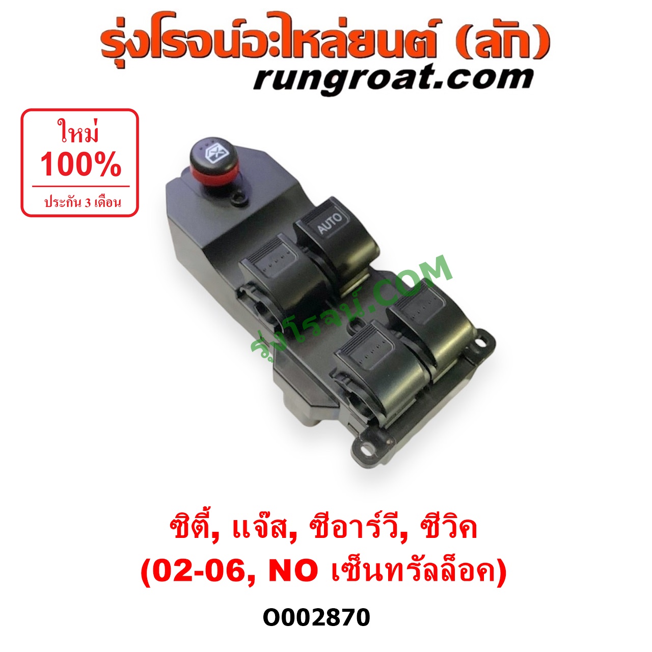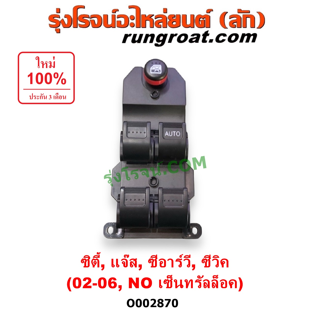 | O002870 | สวิทซ์กระจกไฟฟ้า (สวิทช์กระจกไฟฟ้า) | HONDA (ฮอนด้า) / CITY (ซิตี้ 03/06) (แมลงสาบ, ZX) , HONDA (ฮอนด้า) / CIVIC (ซีวิค 01/04) (ไดเมนชั่น) , HONDA (ฮอนด้า) / CRV (ซีอาร์วี 02/05) (รุ่น 2 ไฟท้ายยาว) , HONDA (ฮอนด้า) / JAZZ (แจ๊ส 03/06) |