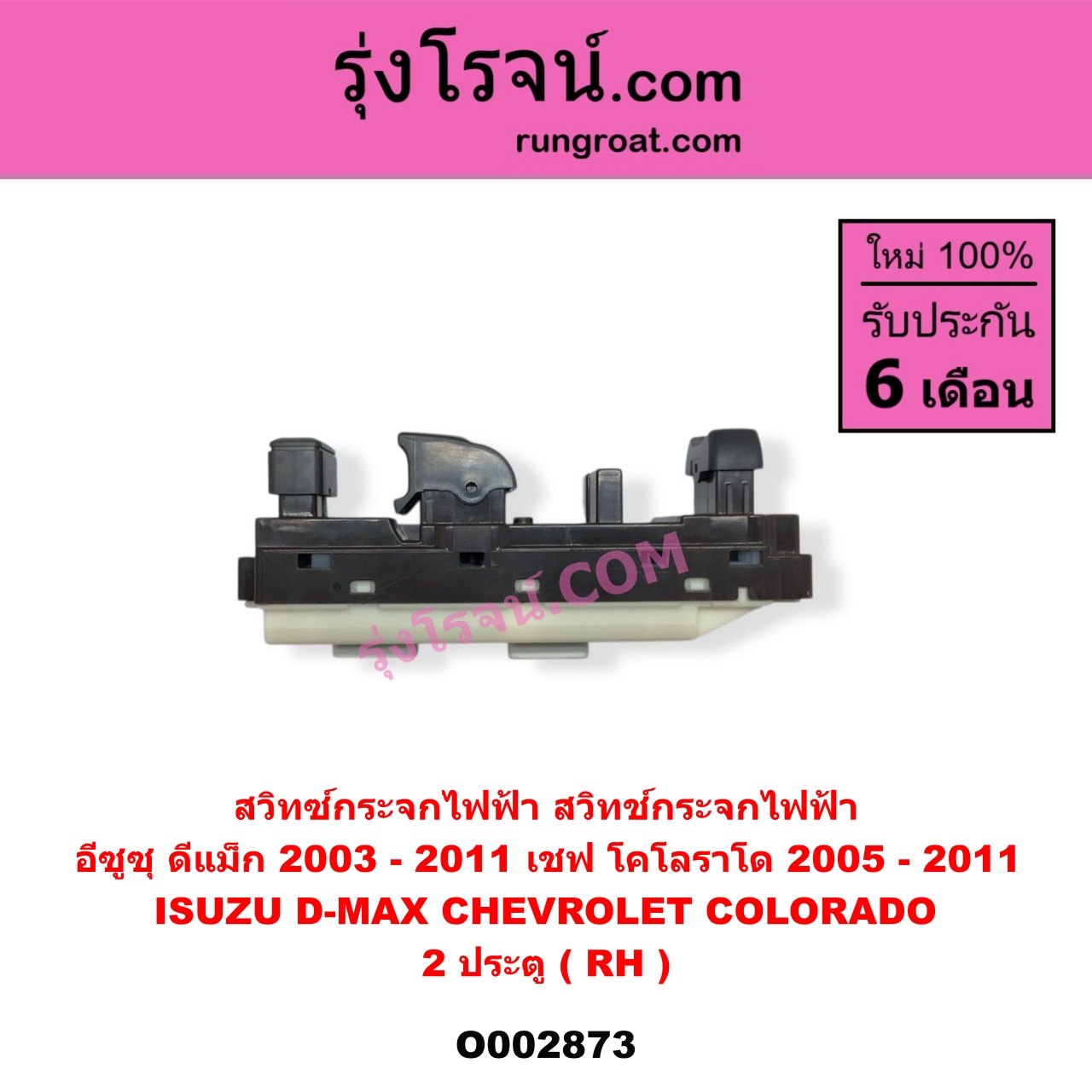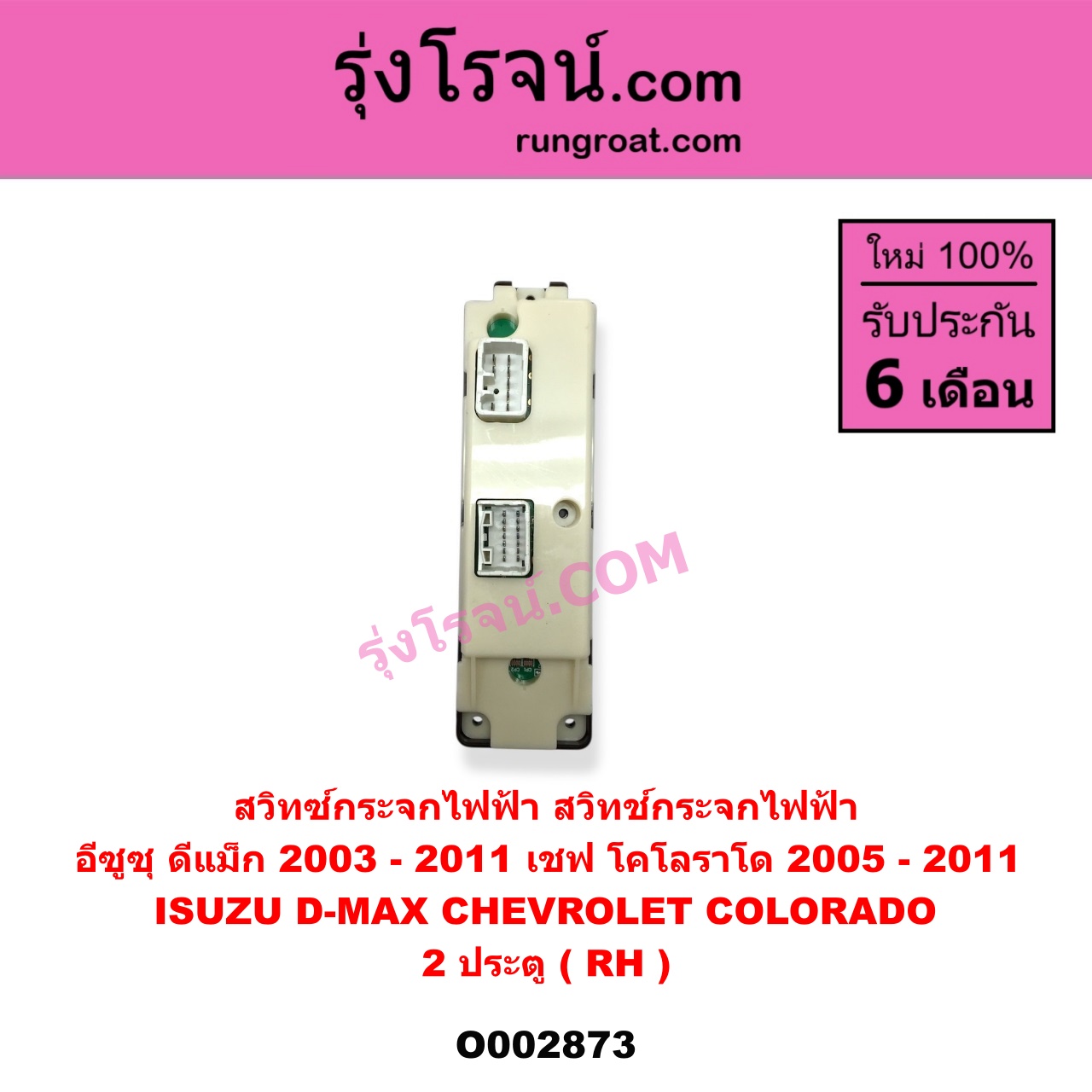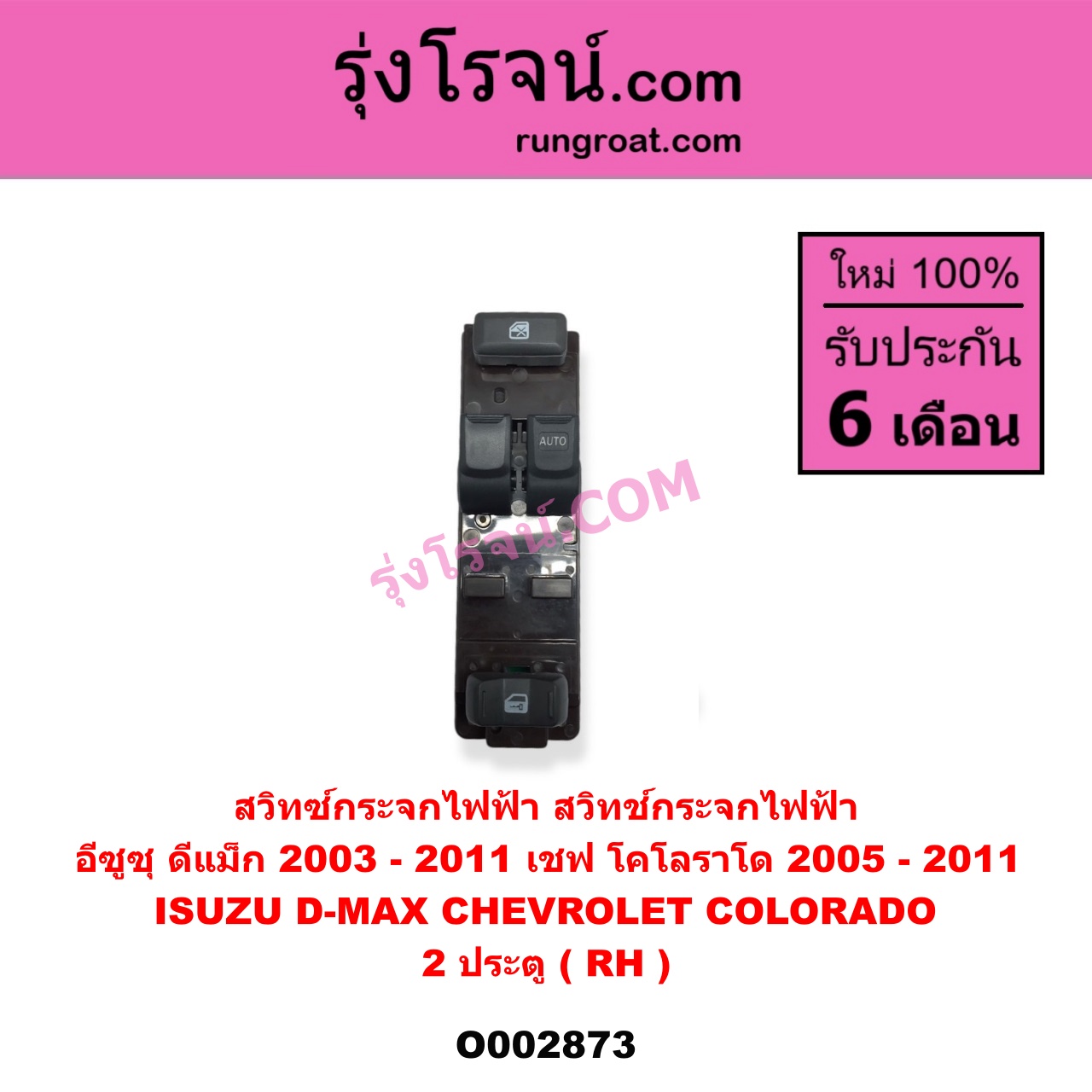 | O002873 | สวิทซ์กระจกไฟฟ้า (สวิทช์กระจกไฟฟ้า) | CHEVROLET (เชฟโรเลต) / COLORADO (โคโลราโด 2005 – 2011) (ตา 2 ชั้น / ตาชั้นเดียว) , ISUZU (อีซูซุ) / D-MAX (ดีแม็ก ดีแม็ค DMAX 2003 – 2011) (รุ่นแรก) |