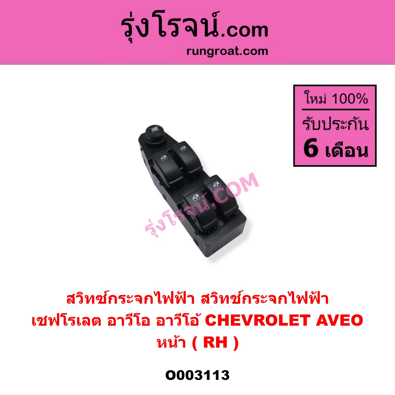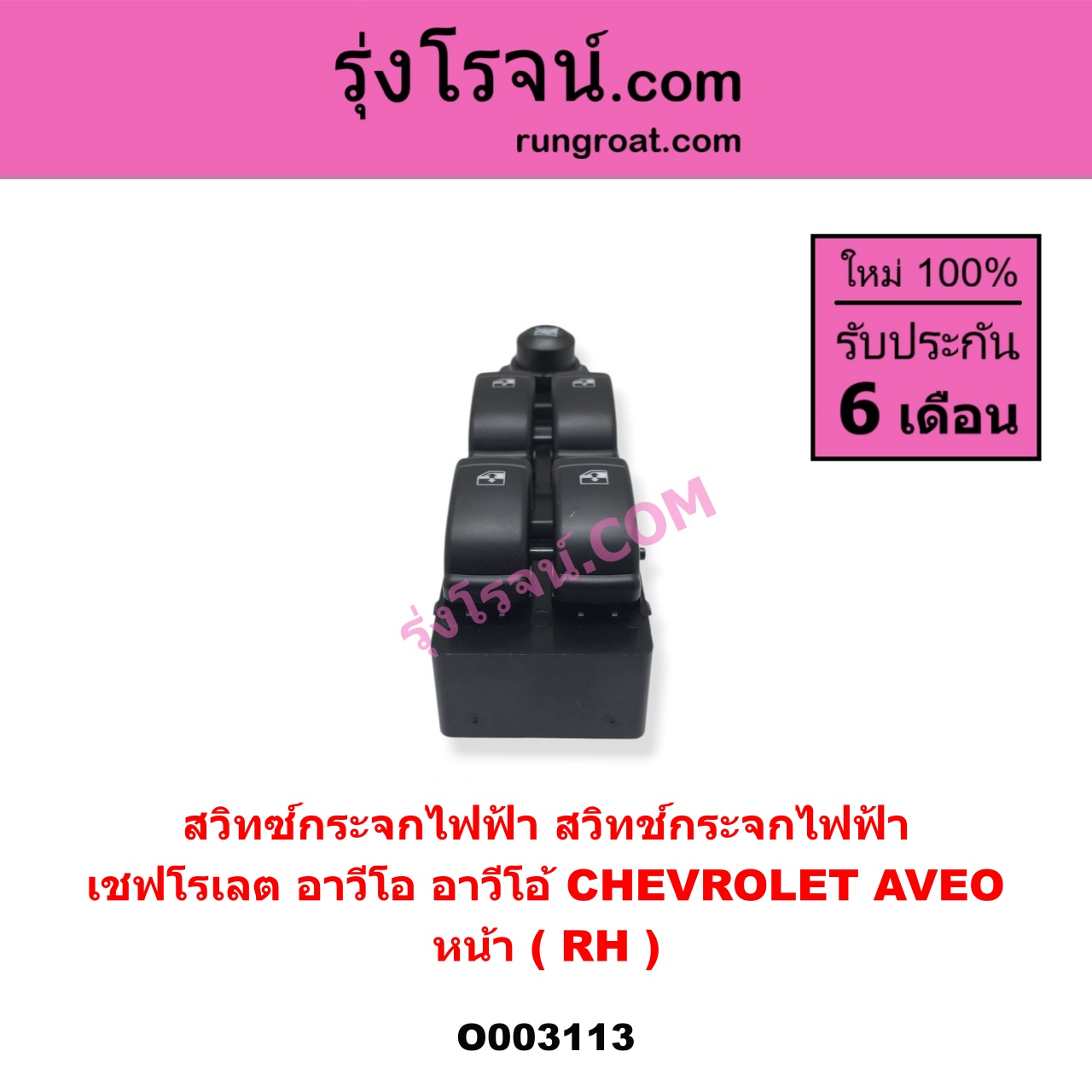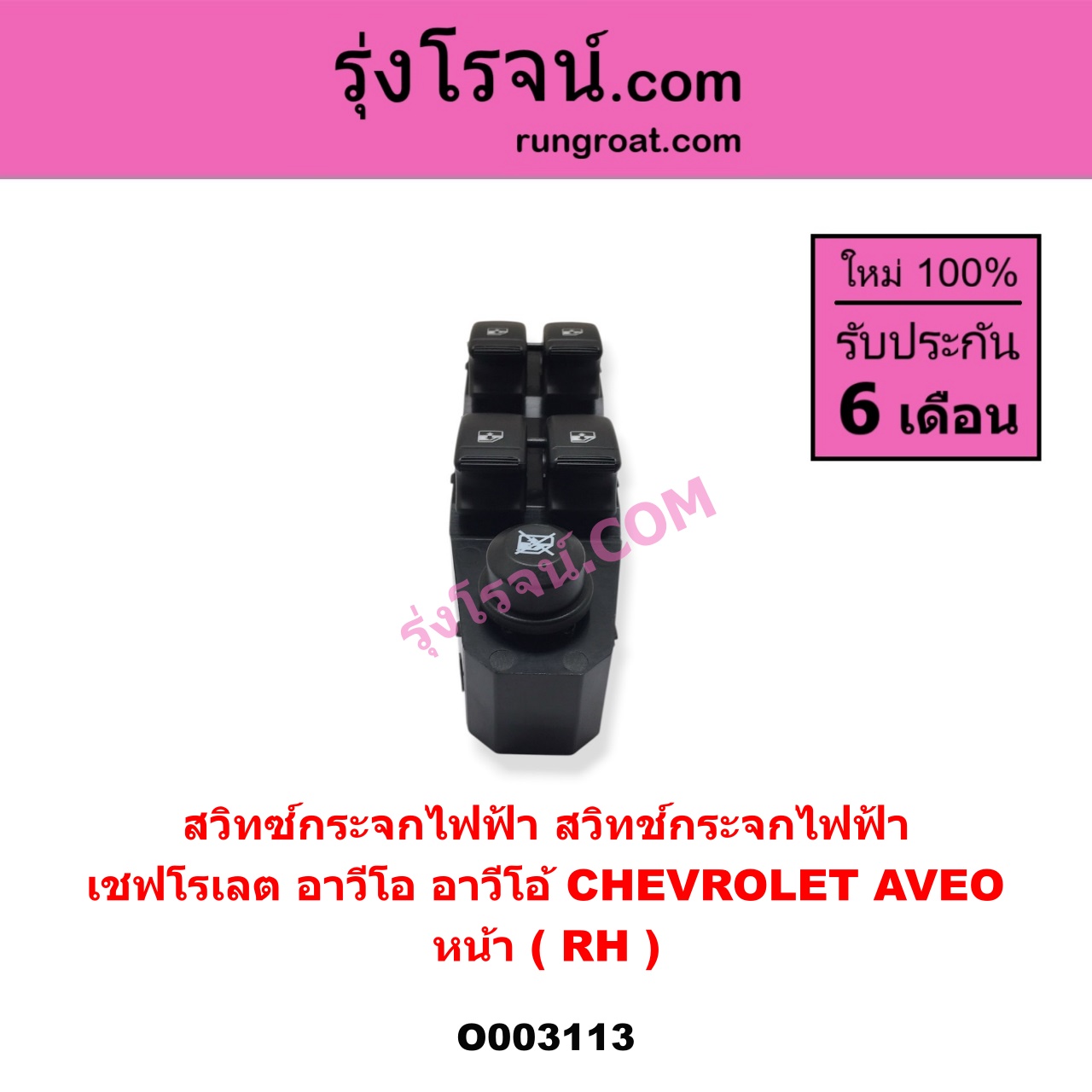 | O003113 | สวิทซ์กระจกไฟฟ้า (สวิทช์กระจกไฟฟ้า) | CHEVROLET (เชฟโรเลต) / AVEO (อาวีโอ อาวีโอ้ 2002) | หน้า (RH) | ไต้หวัน (ใหม่) |