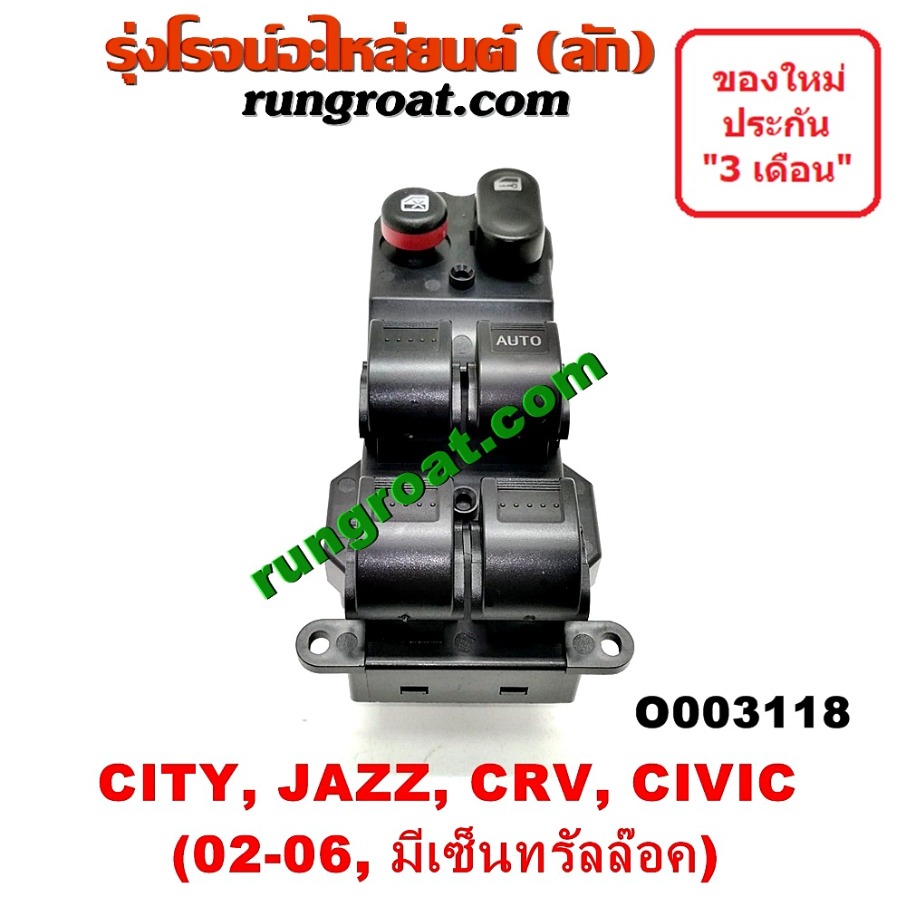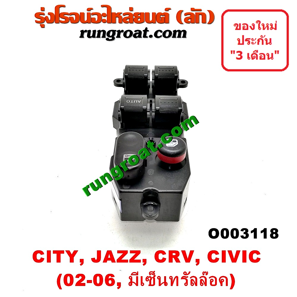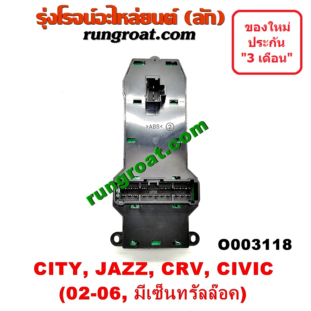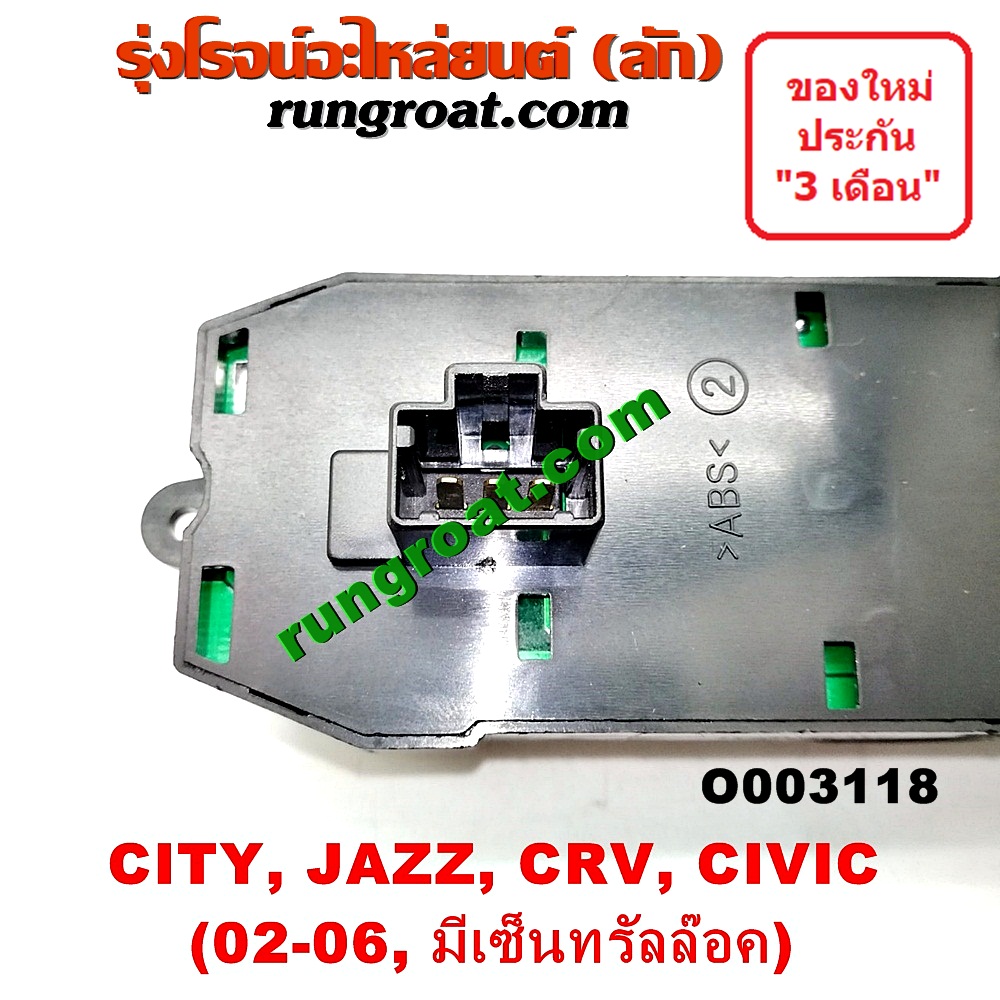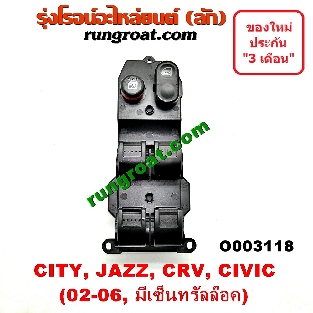 O003118 สวิทซ์กระจกไฟฟ้า (สวิทช์กระจกไฟฟ้า) HONDA (ฮอนด้า) / CITY (ซิตี้ 03/06) (แมลงสาบ, ZX) , CIVIC (ซีวิค 01/04) (ไดเมนชั่น) , CRV (ซีอาร์วี 02/05) (รุ่น 2 ไฟท้ายยาว) , JAZZ (แจ๊ส 03/06) (รุ่นมีเซ็นทรัลล๊อค) หน้า (RH)