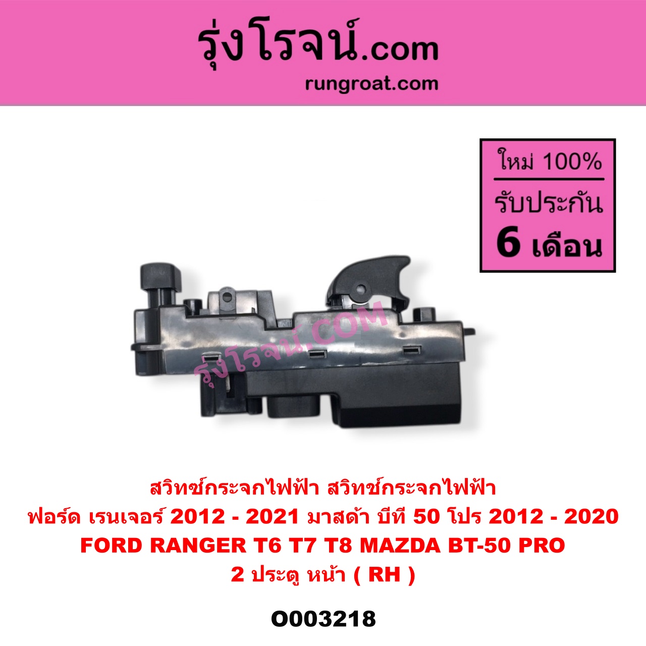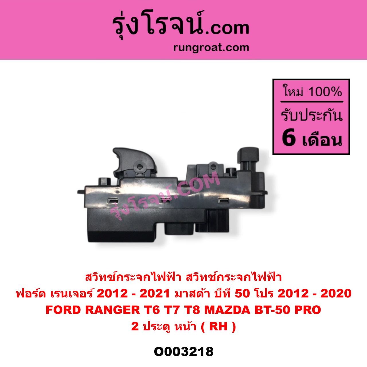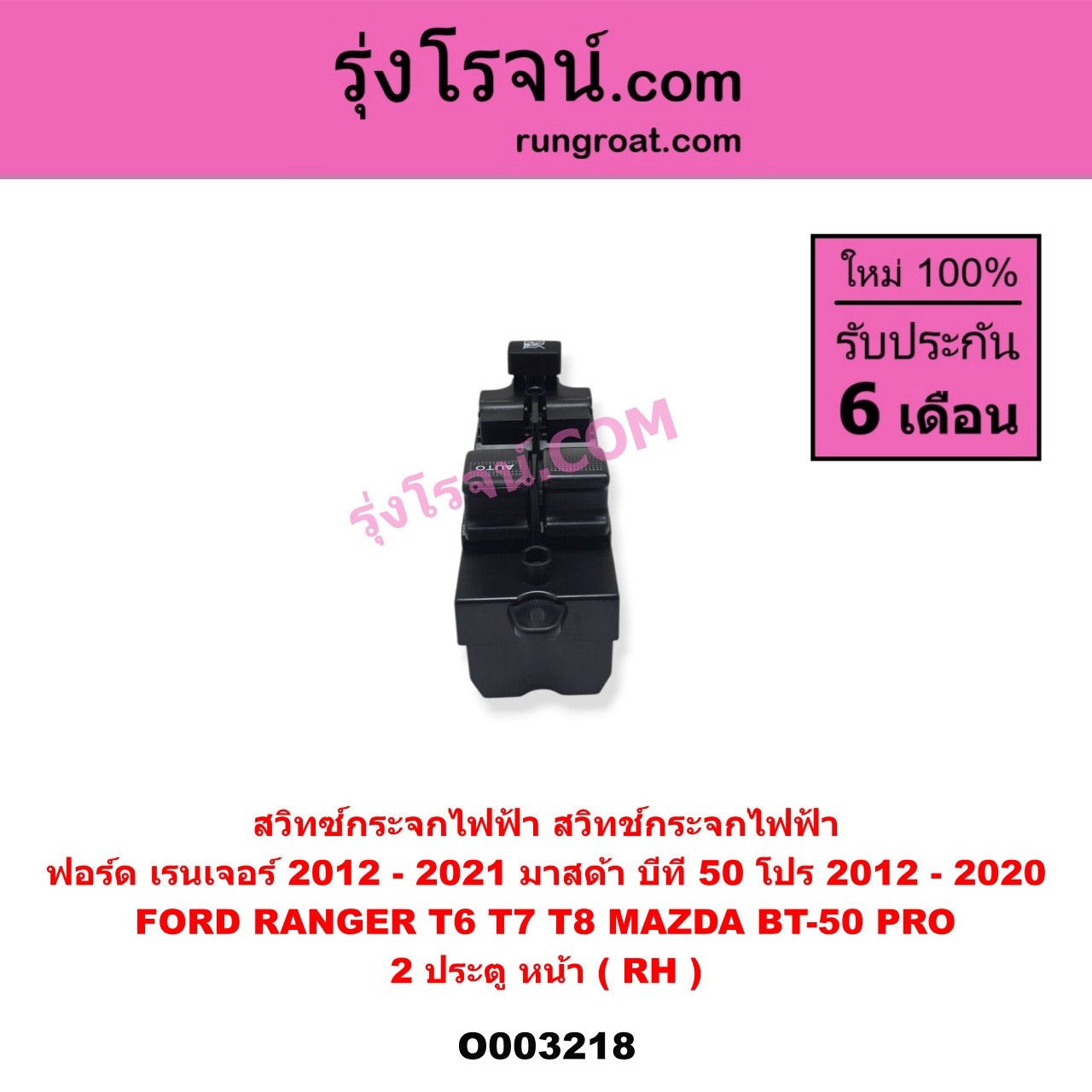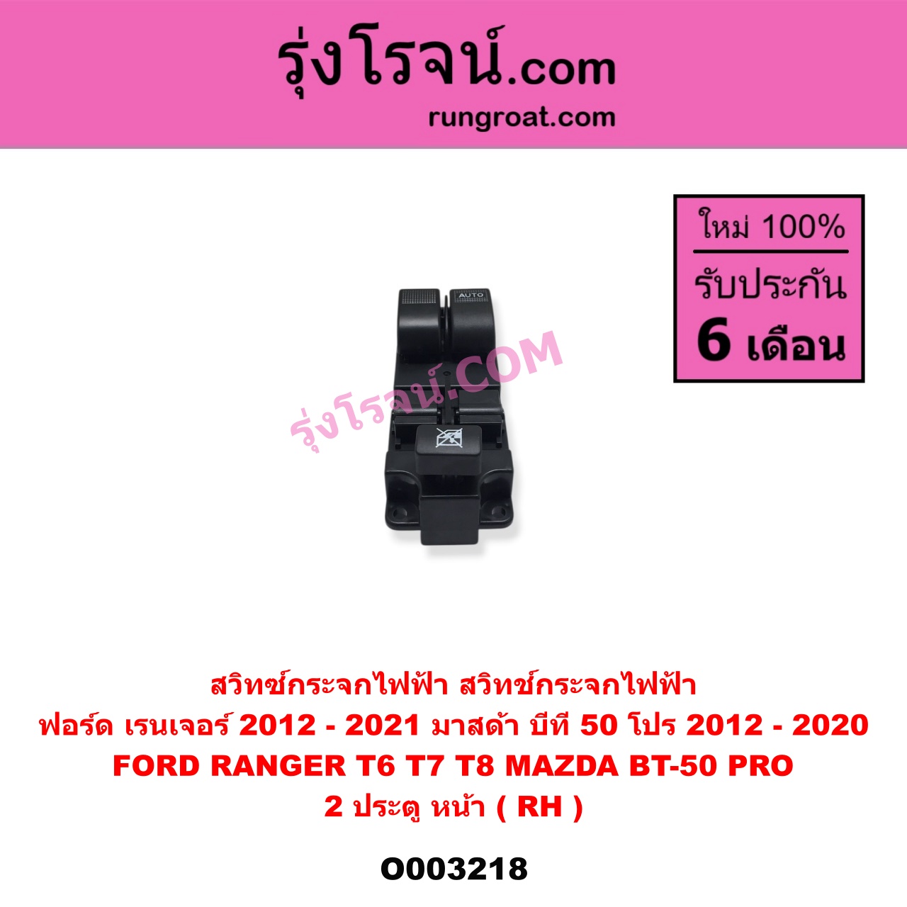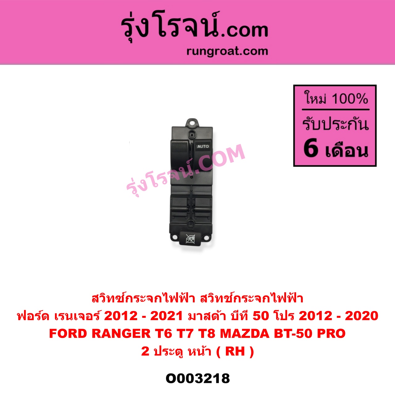 | O003218 | สวิทซ์กระจกไฟฟ้า (สวิทช์กระจกไฟฟ้า) | FORD (ฟอร์ด) / RANGER (เรนเจอร์ T6 T7 T8 2012 – 2021) (ไวล์ดแทรค แร็ปเตอร์ WILD TRAK RAPTOR) , MAZDA (มาสด้า) / BT-50 PRO (บีที 50 โปร 2012 – 2020) |