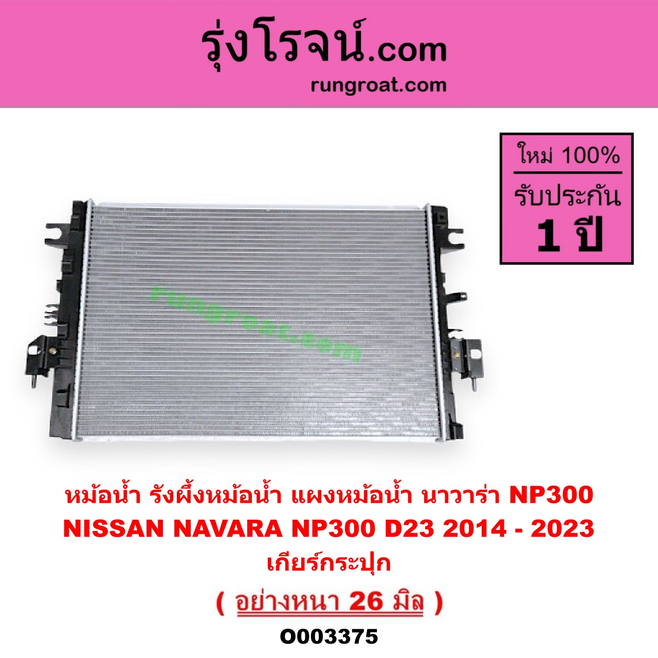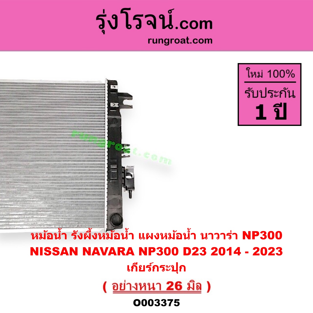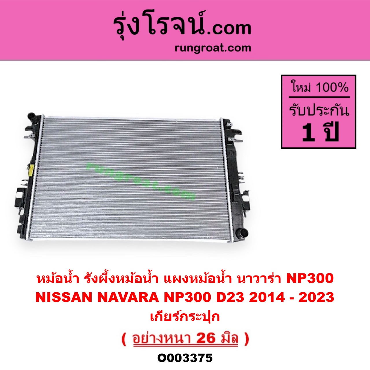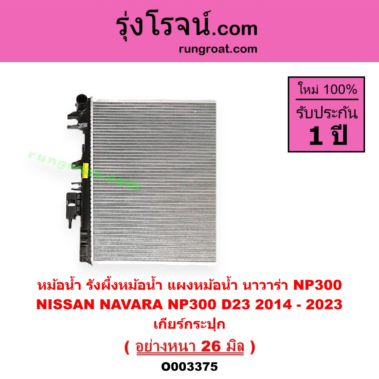 | O003375 | หม้อน้ำ (รังผึ้งหม้อน้ำ, แผงหม้อน้ำ) | NISSAN (นิสสัน) / NAVARA (นาวาร่า NP300 D23 2014 – 2023) (รุ่น 2 D23) | เฉพาะเกียร์กระปุก (หนา 26 มิล) | ไต้หวัน (ใหม่) |