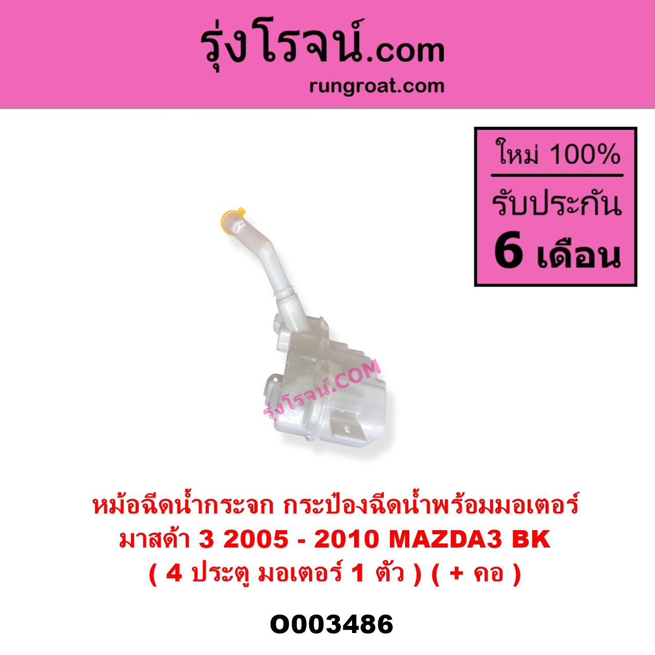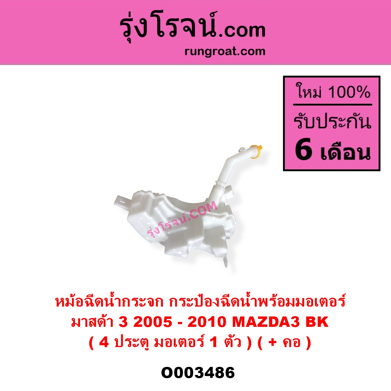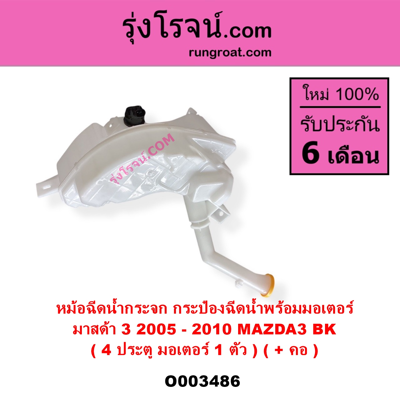 | O003486 | กระป๋องฉีดน้ำกระจก + มอเตอร์ฉีดน้ำกระจก | MAZDA (มาสด้า) / MAZDA 3 (มาสด้า 3 2005 – 2010) (BK รุ่นแรก) | (4 ประตู มอเตอร์ 1 ตัว) (+ คอ) | ไต้หวัน (ใหม่) |