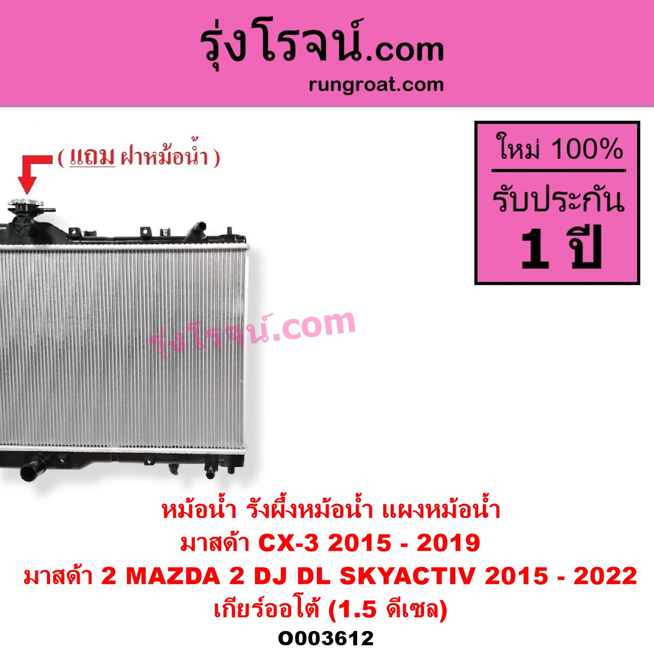 O003612 หม้อน้ำ รังผึ้งหม้อน้ำ แผงหม้อน้ำ MAZDA มาสด้า CX-3 ซีเอ็กซ์ 3 CX3 2015 - 2019 MAZDA 2 มาสด้า 2 2015 - 2022 DJ DL รุ่น 2 สกายแอคทีฟ SKYACTIV เกียร์ออโต้ 1.5 ดีเซล O003612 หม้อน้ำ รังผึ้งหม้อน้ำ แผงหม้อน้ำ MAZDA มาสด้า CX-3 ซีเอ็กซ์ 3 CX3 2015 - 2019 MAZDA 2 มาสด้า 2 2015 - 2022 DJ DL รุ่น 2 สกายแอคทีฟ SKYACTIV เกียร์ออโต้ 1.5 ดีเซล O003612 หม้อน้ำ รังผึ้งหม้อน้ำ แผงหม้อน้ำ MAZDA มาสด้า CX-3 ซีเอ็กซ์ 3 CX3 2015 - 2019 MAZDA 2 มาสด้า 2 2015 - 2022 DJ DL รุ่น 2 สกายแอคทีฟ SKYACTIV เกียร์ออโต้ 1.5 ดีเซล O003612 หม้อน้ำ รังผึ้งหม้อน้ำ แผงหม้อน้ำ MAZDA มาสด้า CX-3 ซีเอ็กซ์ 3 CX3 2015 - 2019 MAZDA 2 มาสด้า 2 2015 - 2022 DJ DL รุ่น 2 สกายแอคทีฟ SKYACTIV เกียร์ออโต้ 1.5 ดีเซล