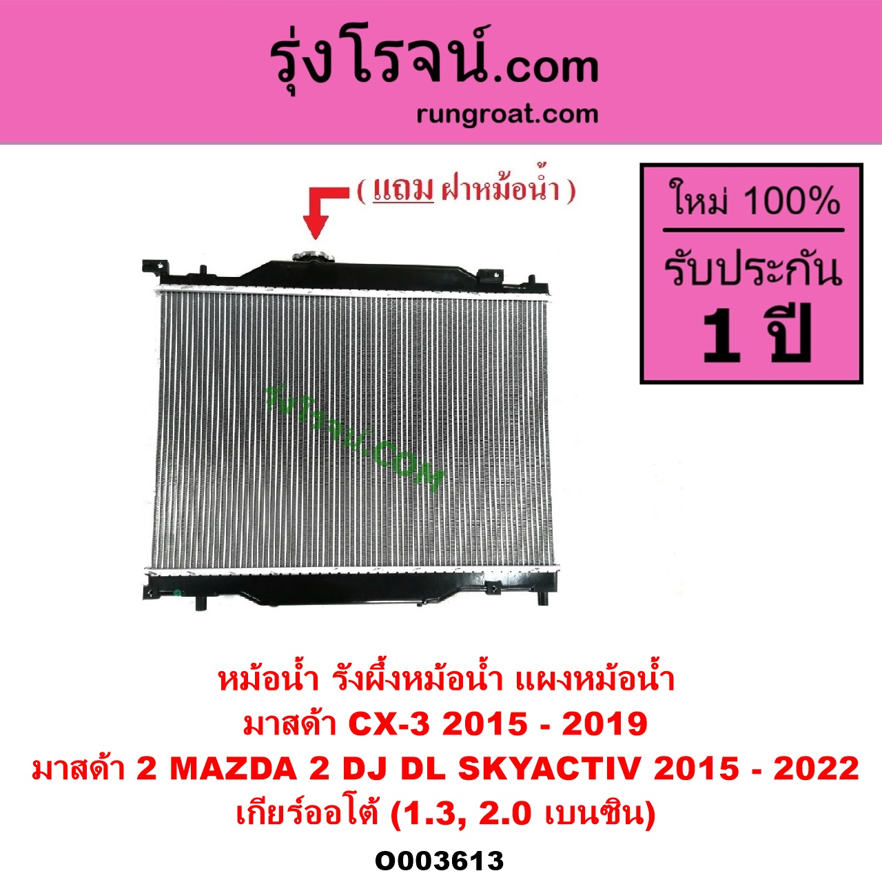 O003613 หม้อน้ำ รังผึ้งหม้อน้ำ แผงหม้อน้ำ MAZDA มาสด้า CX-3 ซีเอ็กซ์ 3 CX3 2015 – 2019 MAZDA 2 มาสด้า 2 2015 – 2022 DJ DL รุ่น 2 สกายแอคทีฟ SKYACTIV เกียร์ออโต้ 1.3 2.0 เบนซิน