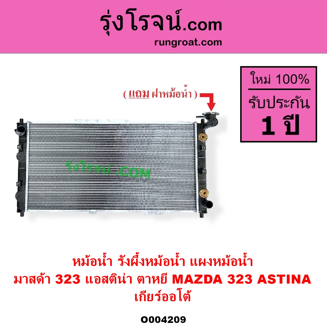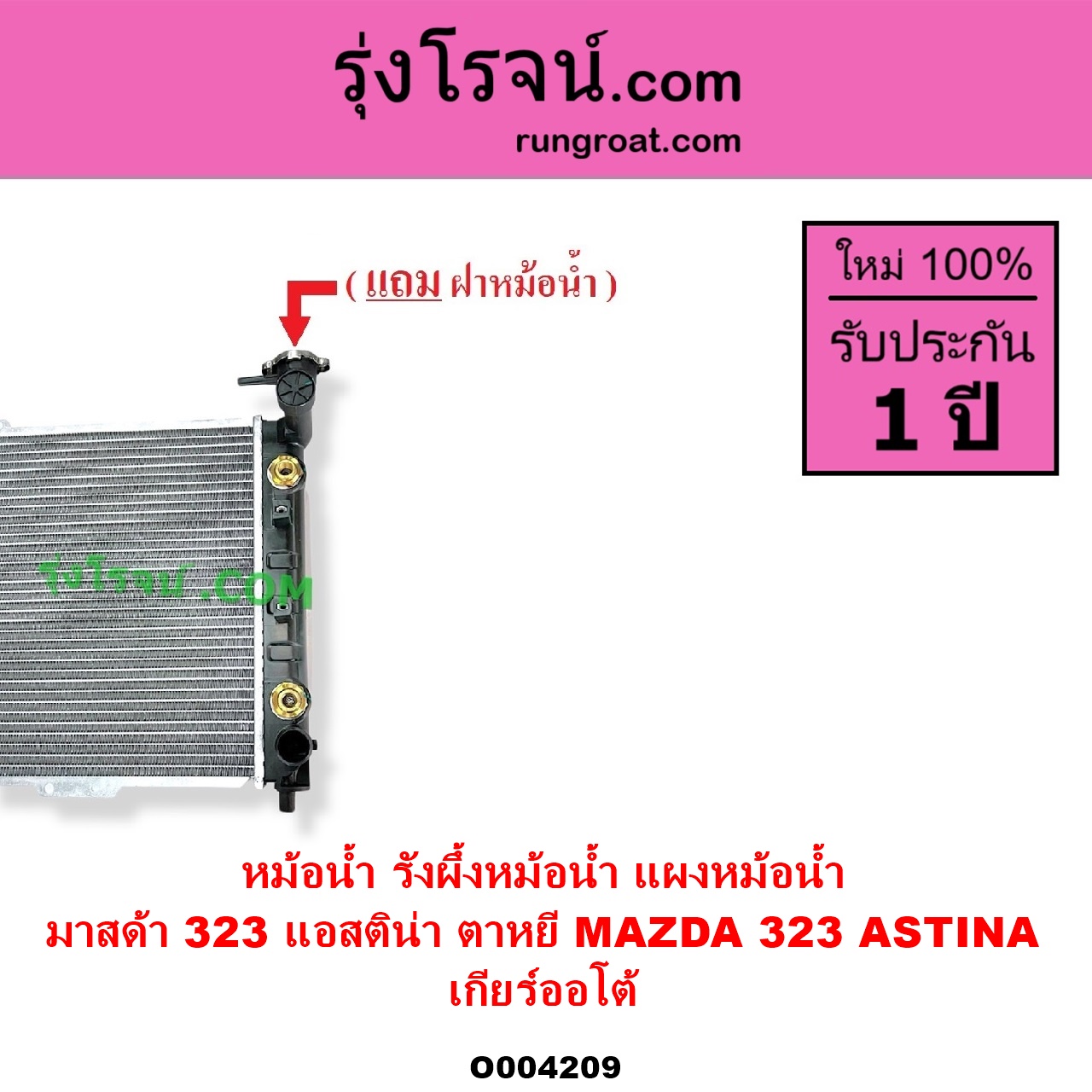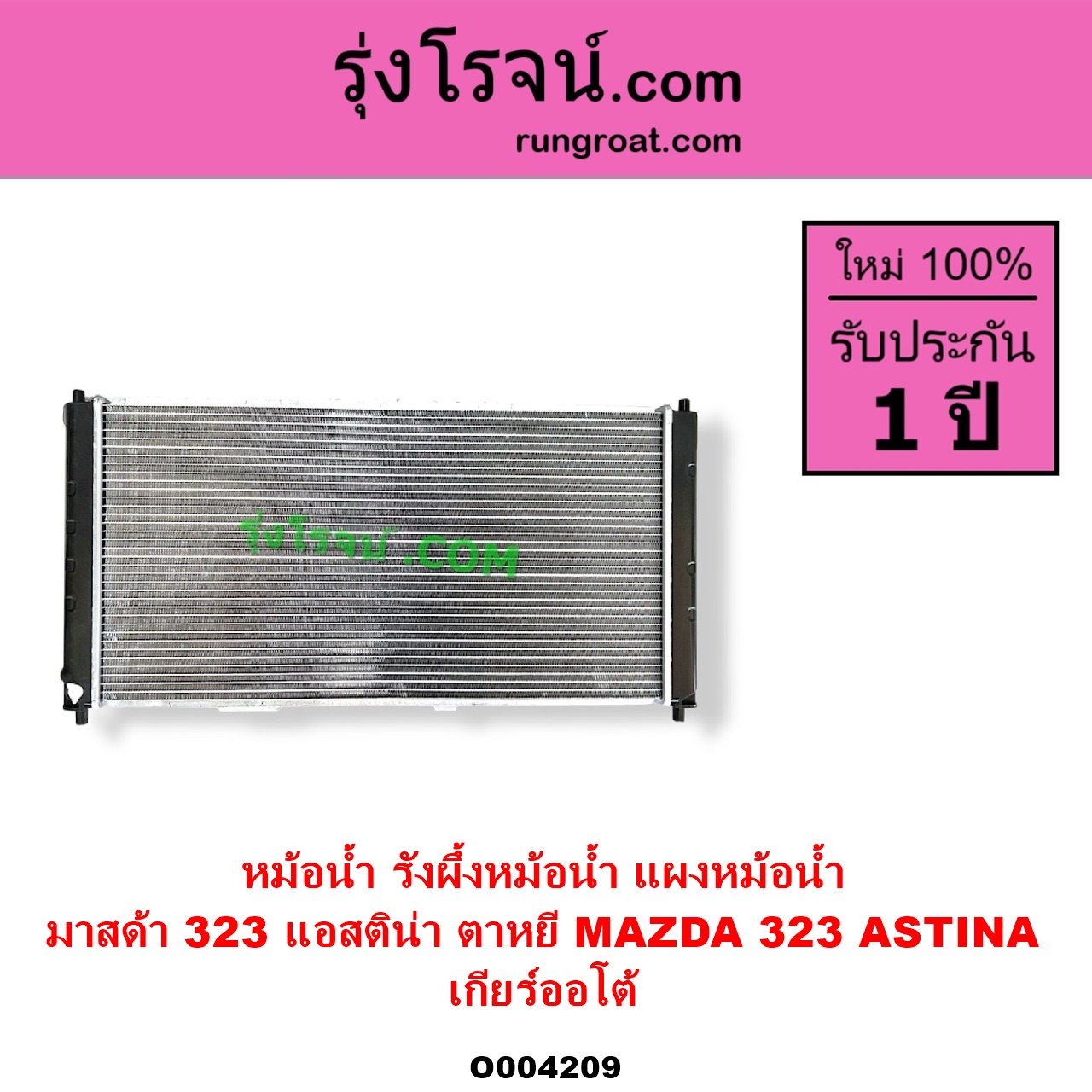 | O004209 | หม้อน้ำ (รังผึ้งหม้อน้ำ, แผงหม้อน้ำ) | MAZDA (มาสด้า) / 323 ASTINA (แอสติน่า 95) (ตาหยี) | เกียร์ออโต้ (ใส่เกียร์ธรรมดาได้) | ไต้หวัน (ใหม่) |