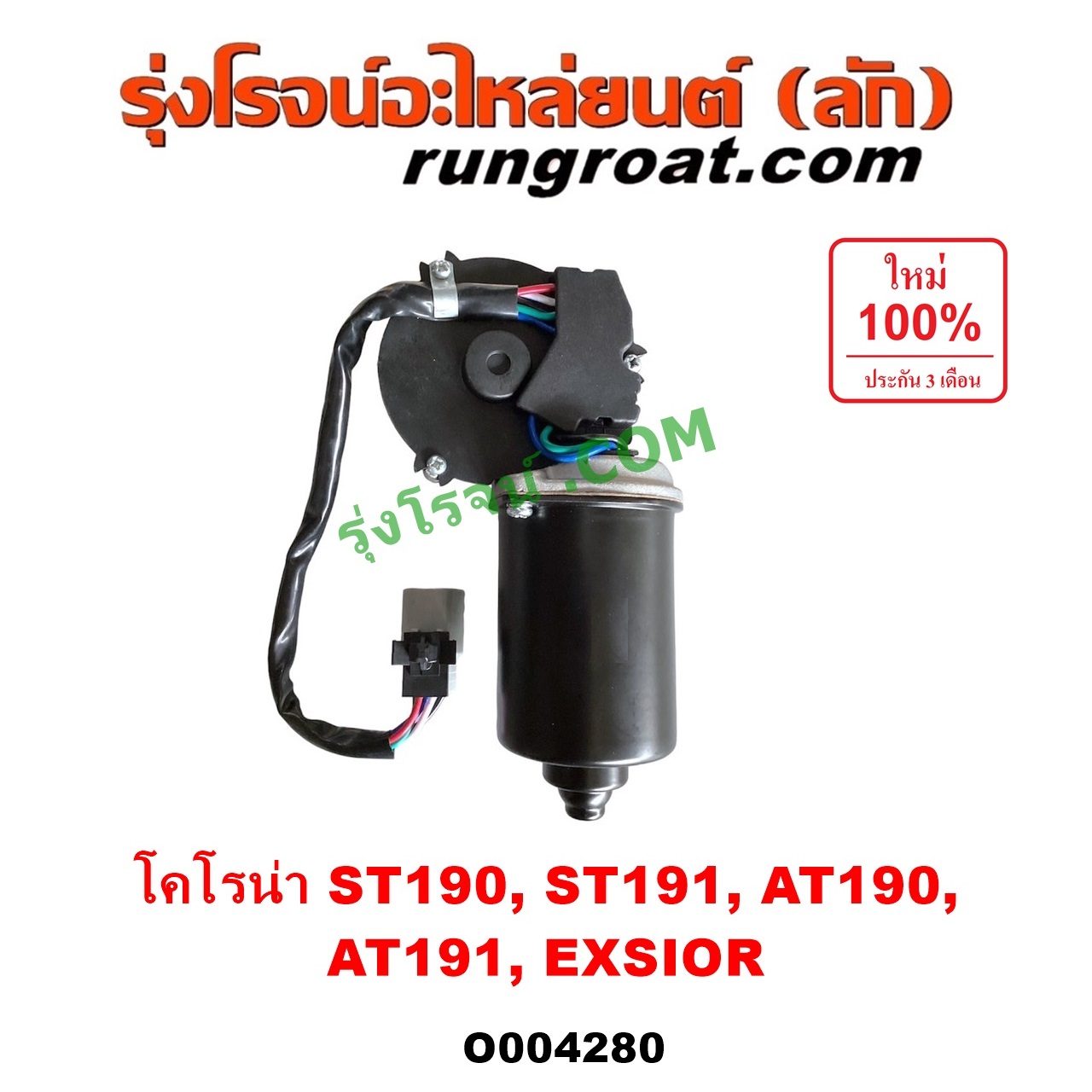 | O004280 | มอเตอร์ ปัดน้ำฝน | TOYOTA (โตโยต้า) / CORONA (โคโรน่า ST190 / ST191 / EXSIOR) (ท้ายโด่ง) | – | ไต้หวัน (ใหม่) |