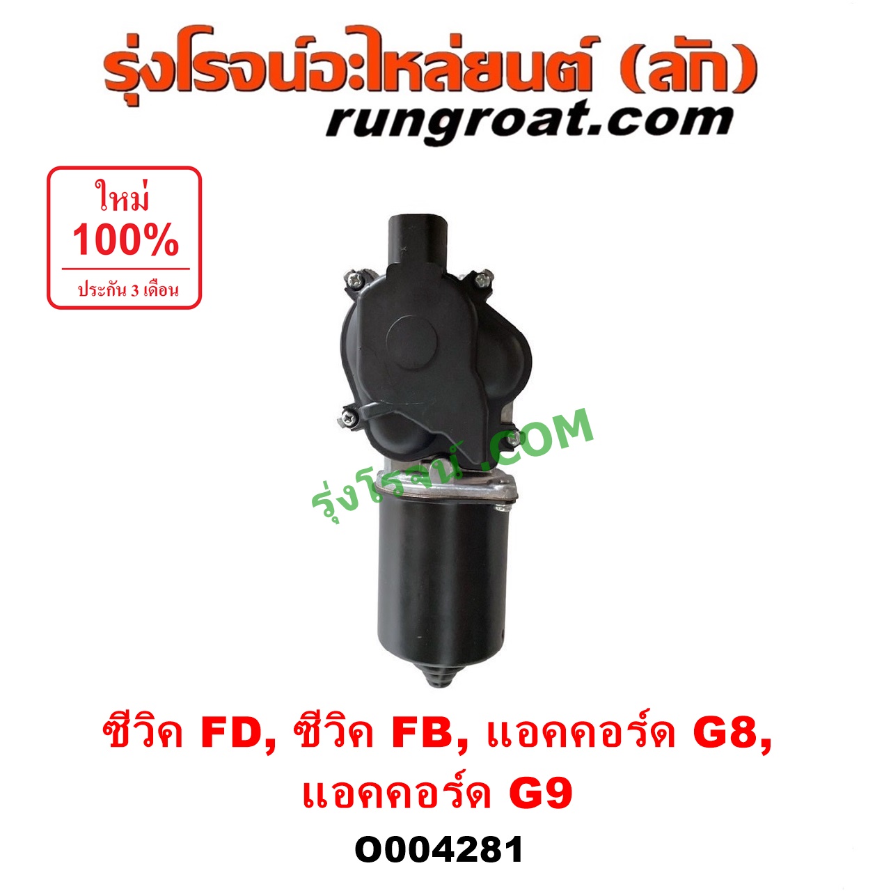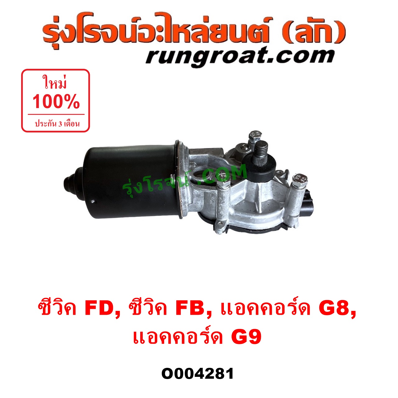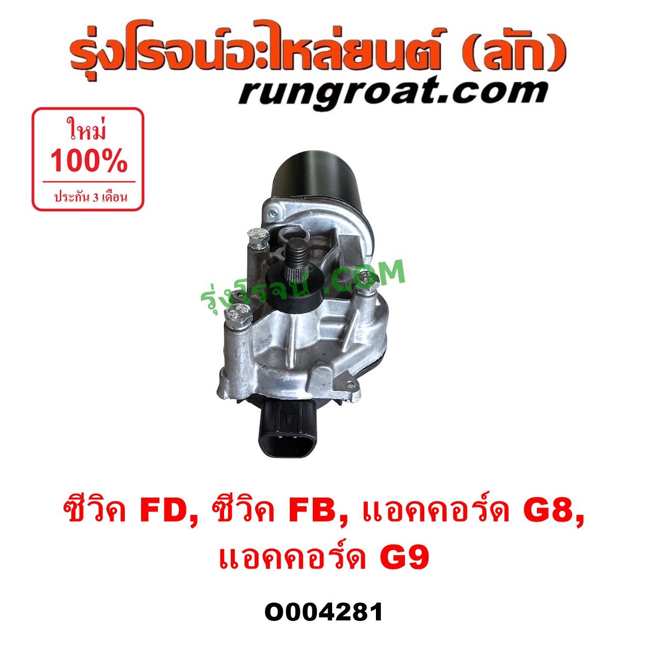 O004281 มอเตอร์ ปัดน้ำฝน HONDA (ฮอนด้า) / ACCORD (แอคคอร์ด 2008 – 2012) (G8) , ACCORD (แอคคอร์ด 2013 – 2019 ไฮบริด) (G9) , CIVIC (ซีวิค 2006 – 2011) (FD / นางฟ้า) , CIVIC (ซีวิค 2012 – 2015 ไฮบริด) (FB)