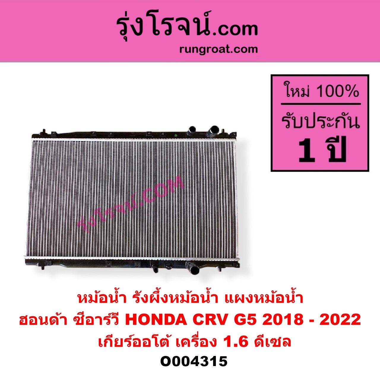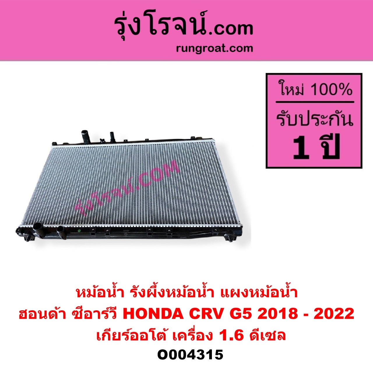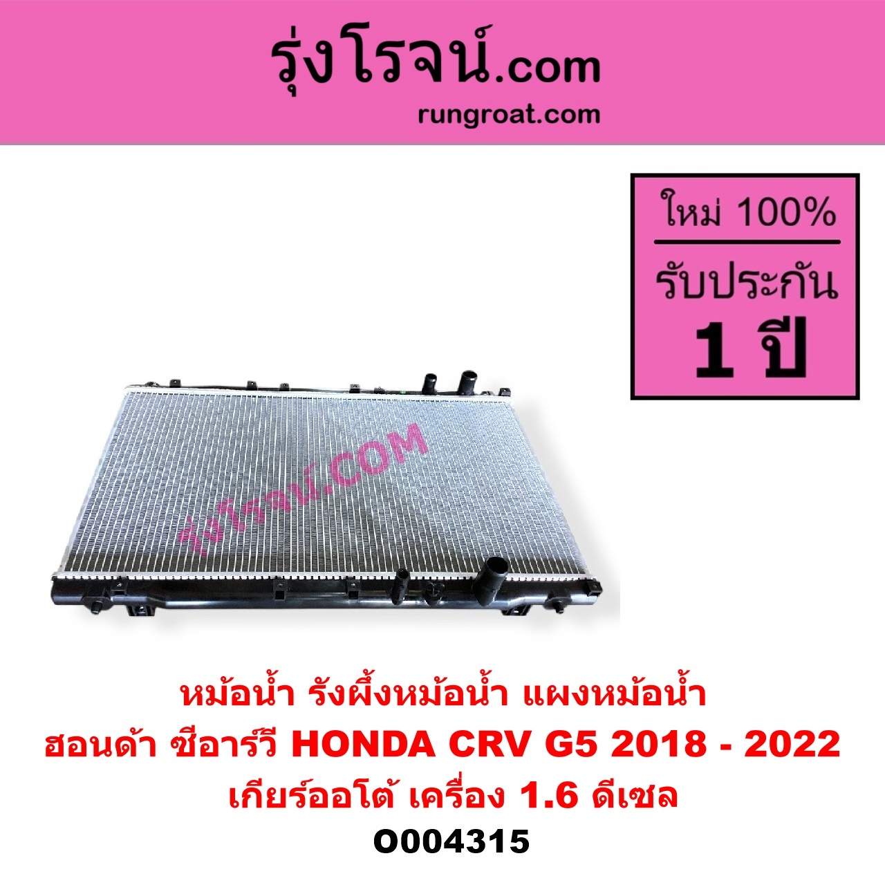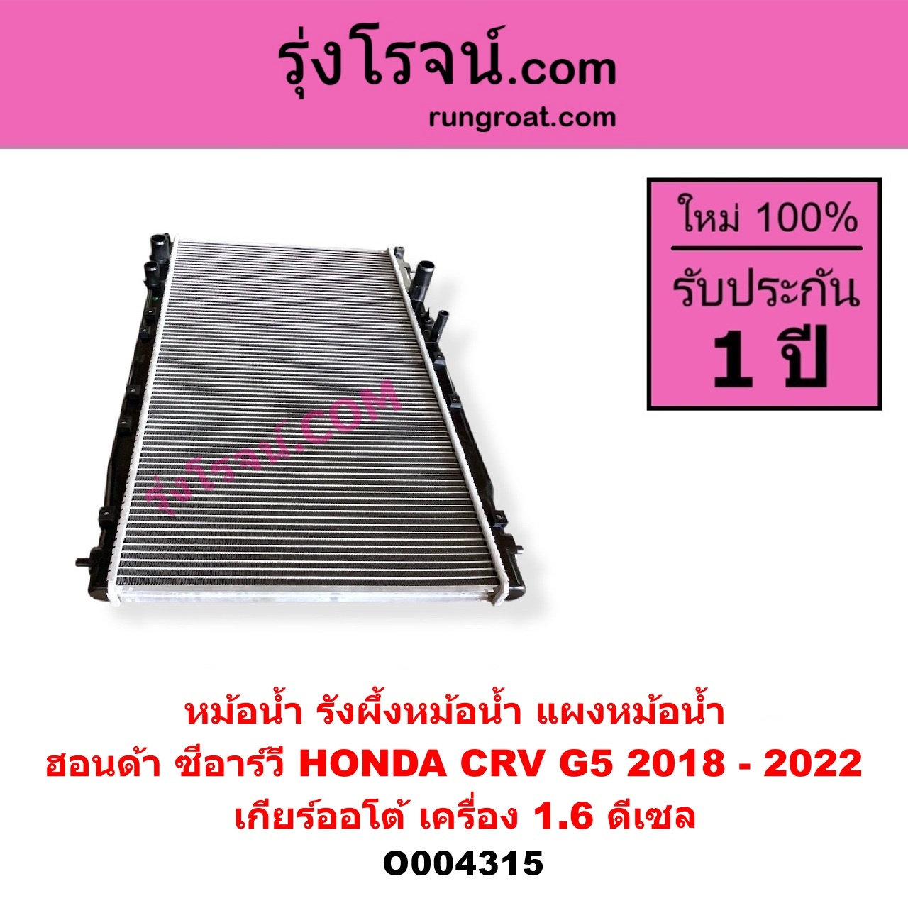 | O004315 | หม้อน้ำ (รังผึ้งหม้อน้ำ, แผงหม้อน้ำ) | HONDA (ฮอนด้า) / CRV (ซีอาร์วี 2018 – 2022) (รุ่น 5 / G5) | เกียร์ออโต้ (เครื่อง 1.6 ดีเซล) | ไต้หวัน (ใหม่) |
